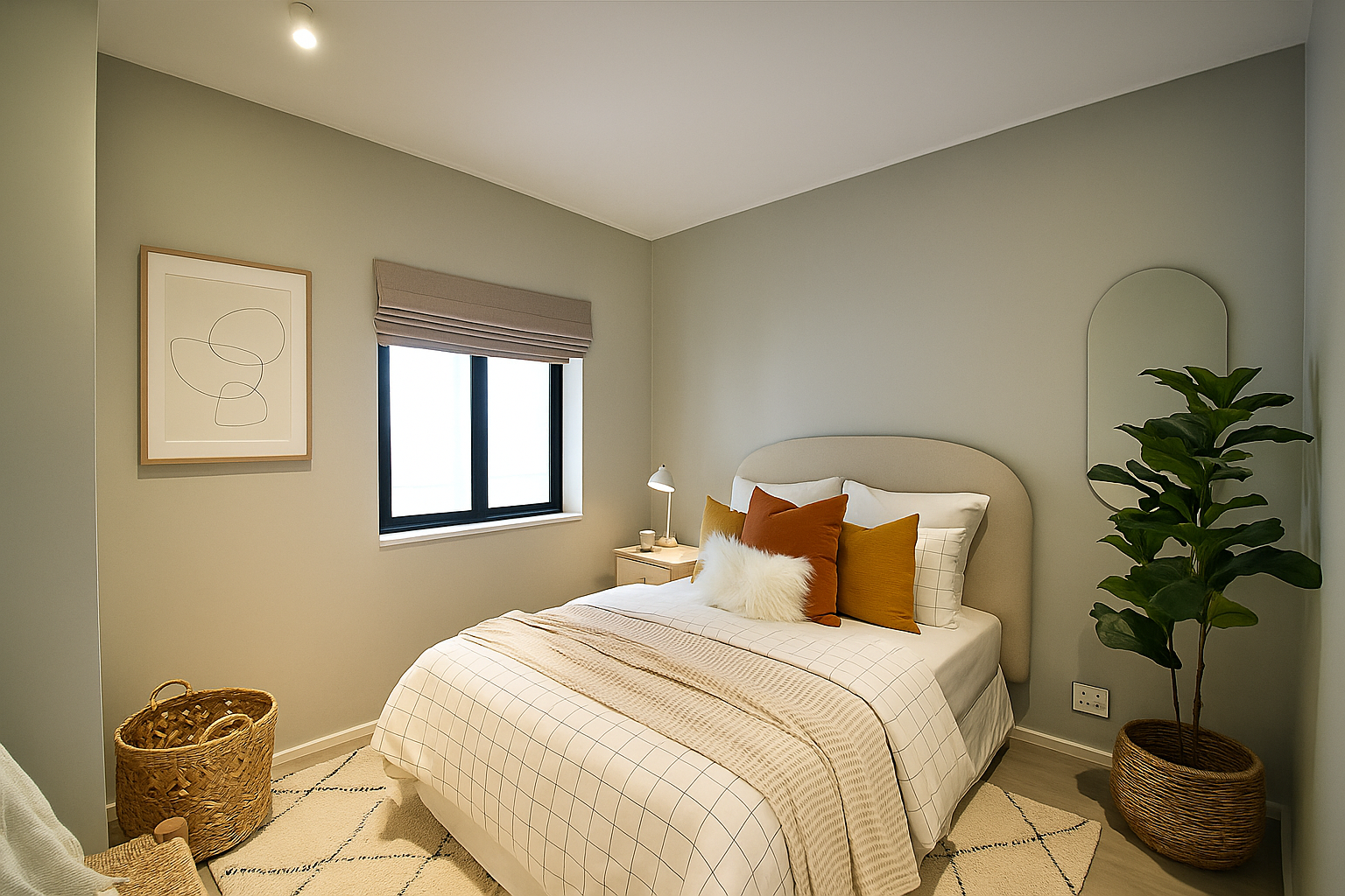 Enjoy a sleek, open-plan living space with high-end finishes and plenty of natural light. Well-sized bedroom with built-in wardrobes, providing ample storage space.