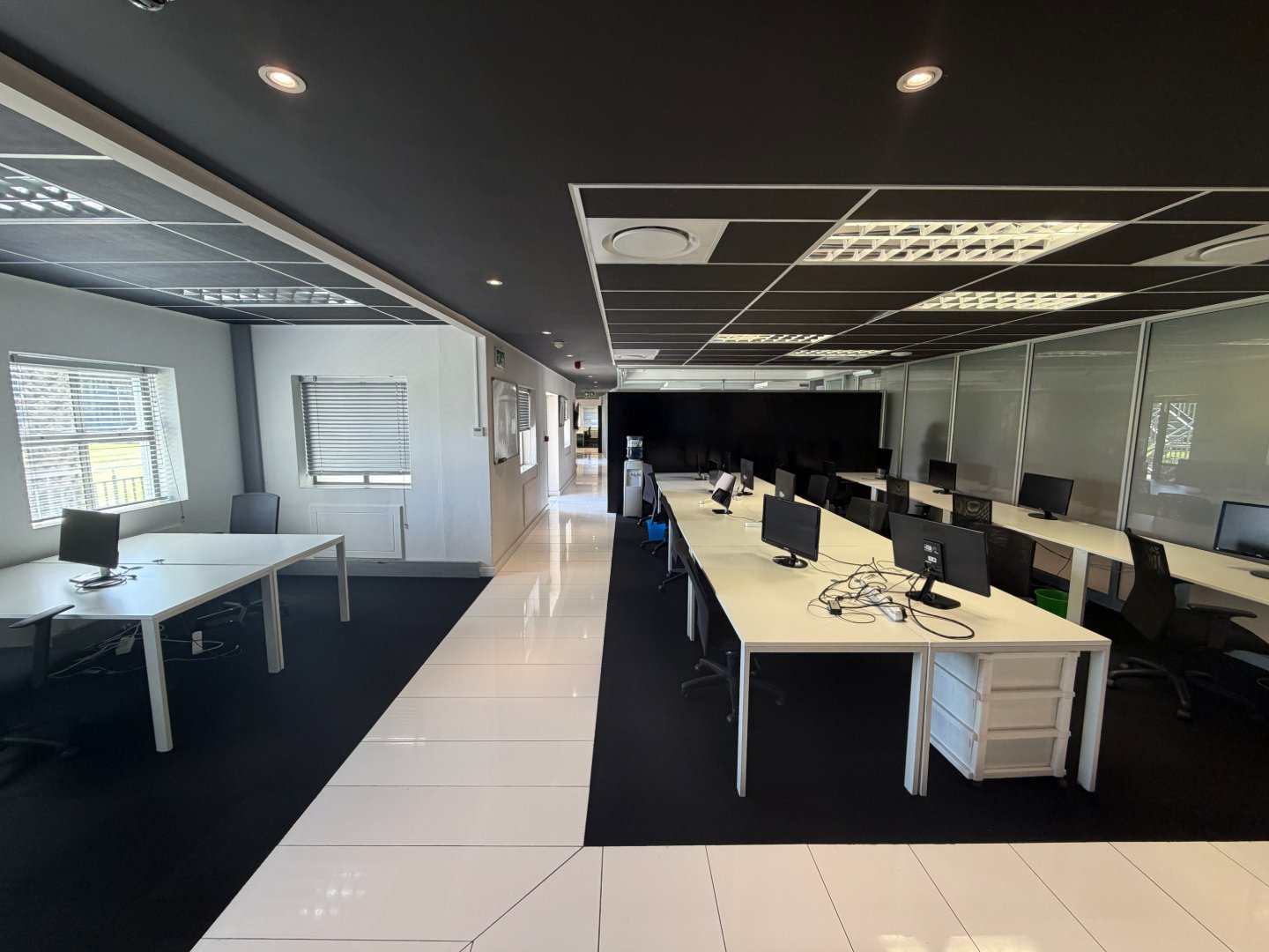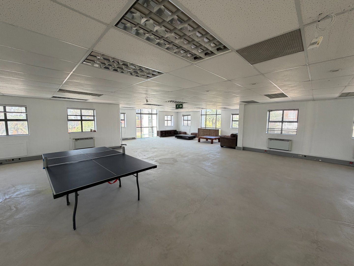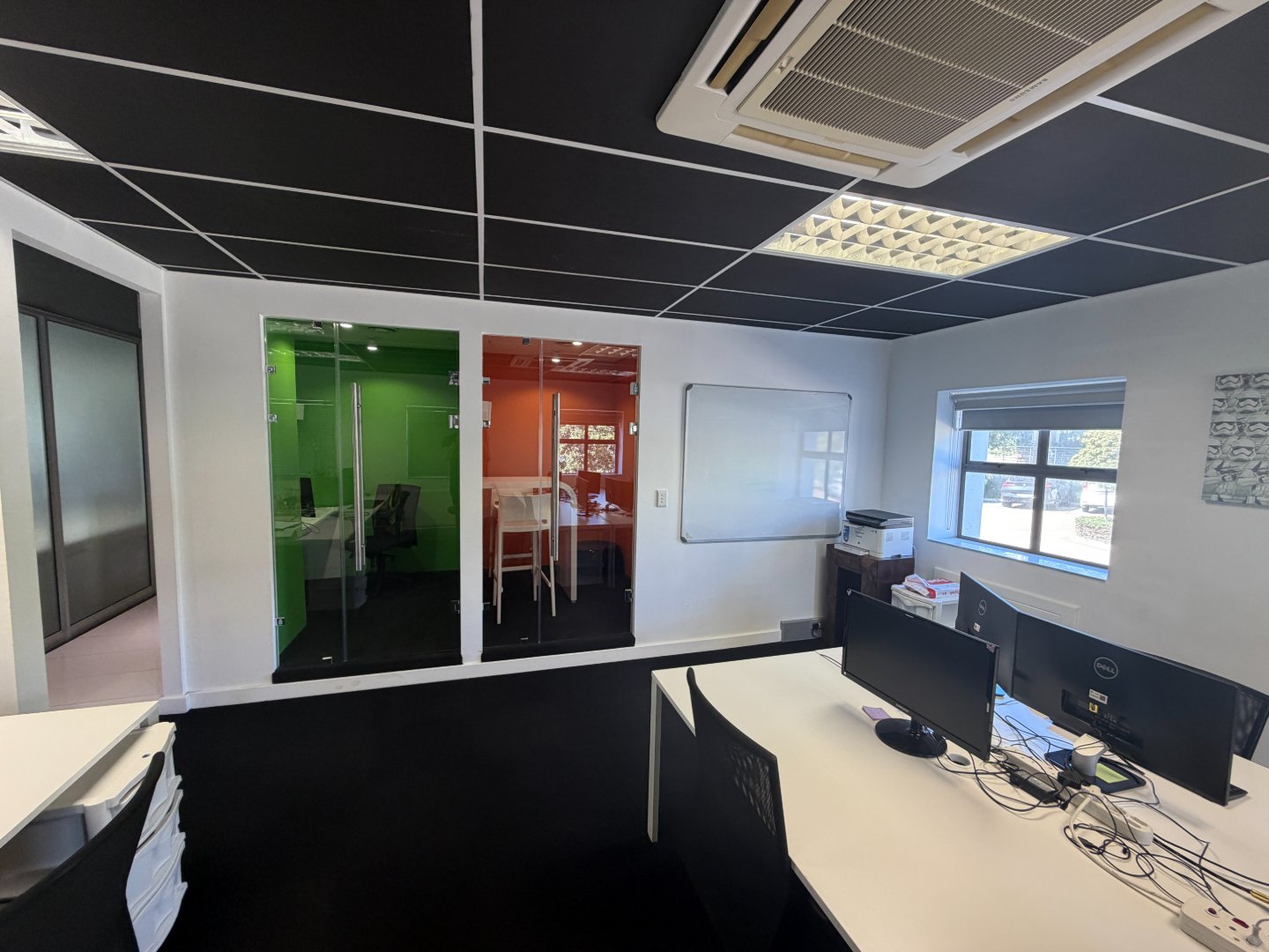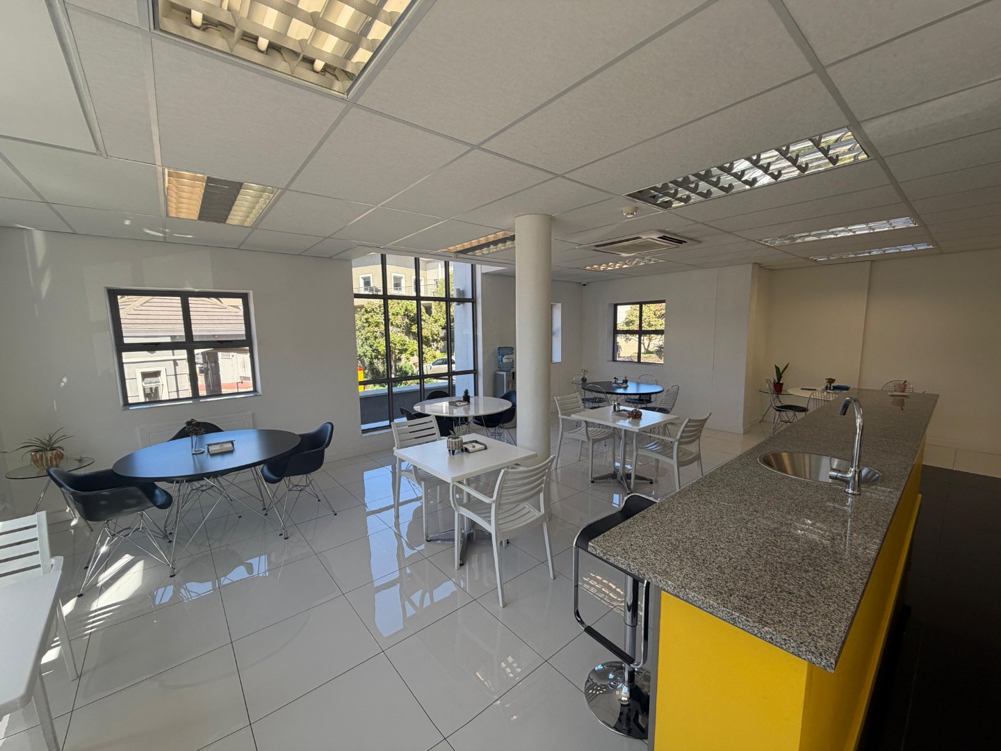The ground floor features a spacious open-plan office area, complemented by two well-sized boardrooms that can easily double as private offices. Multiple meeting pods support collaborative working, while a large canteen area provides an excellent staff amenity. The floor is further serviced by private ablutions, an on-site shower, and a balcony with direct access overlooking the landscaped park area, creating a pleasant and functional working environment.