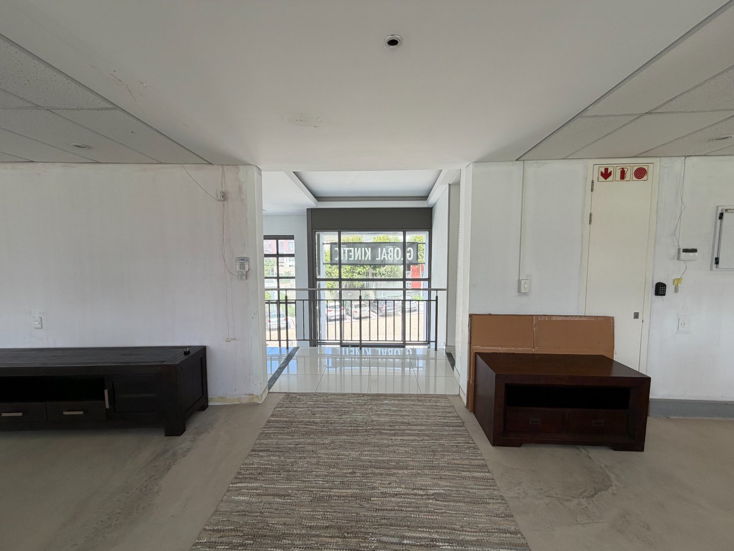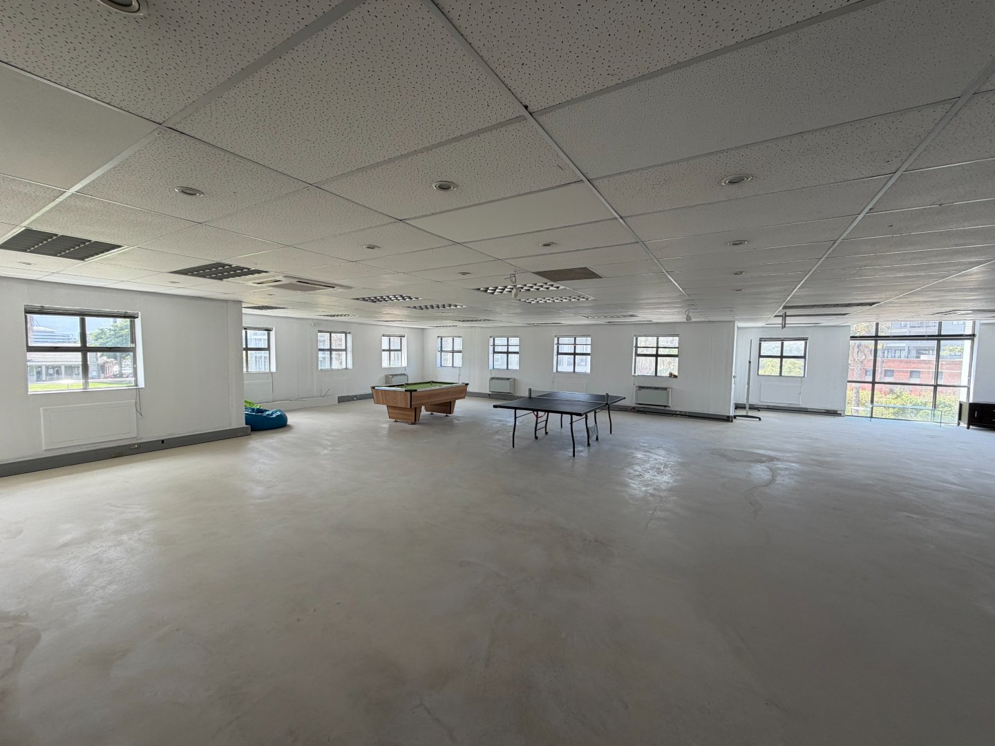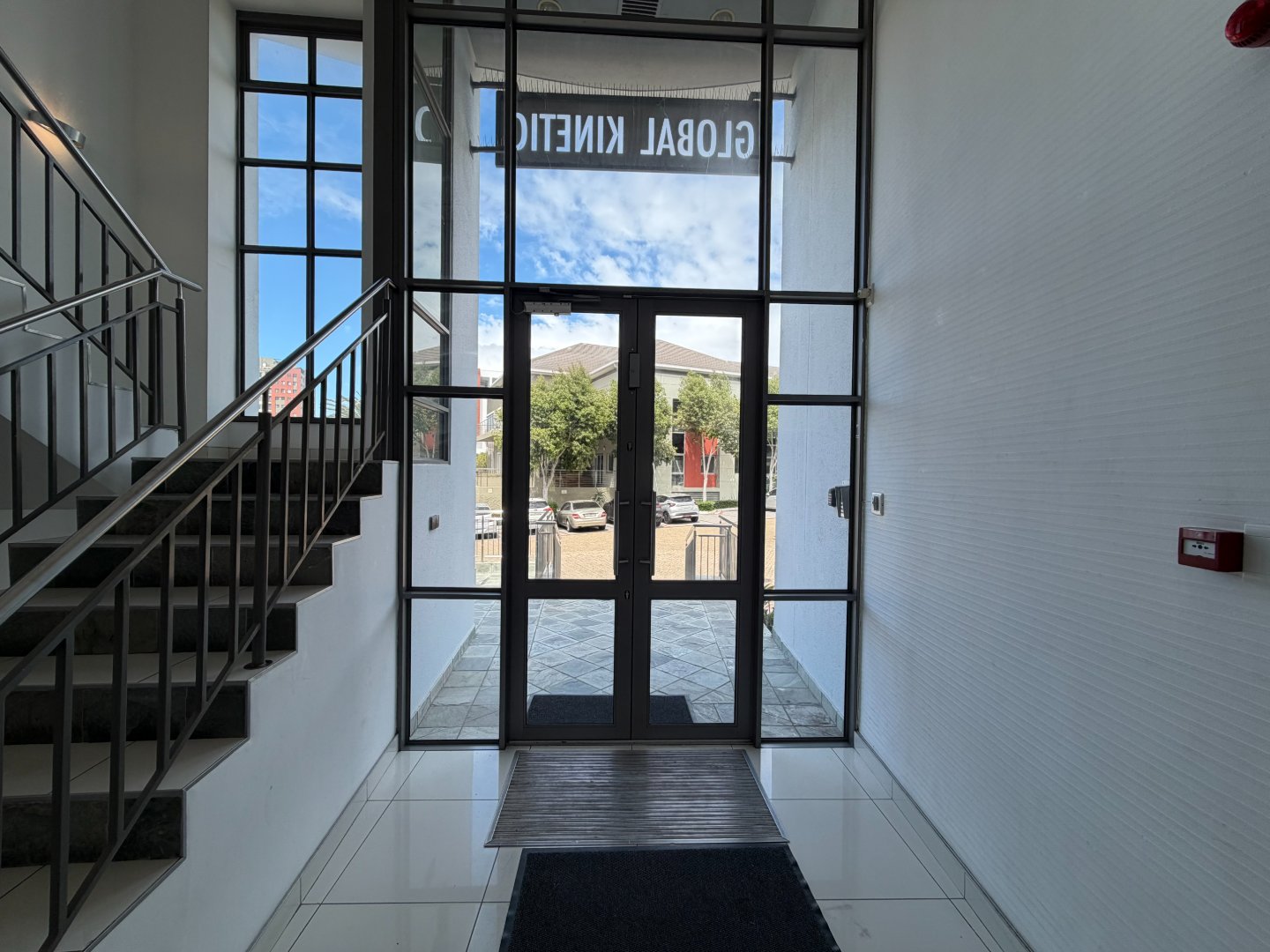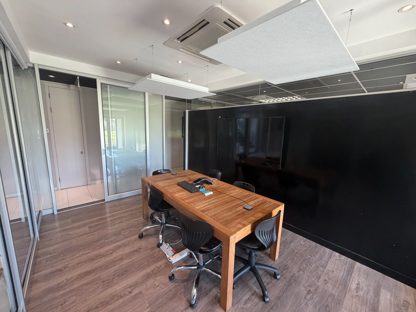 The ground floor features a spacious open-plan office area, complemented by two well-sized boardrooms that can easily double as private offices. Multiple meeting pods support collaborative working, while a large canteen area provides an excellent staff amenity. The floor is further serviced by private ablutions, an on-site shower, and a balcony with direct access overlooking the landscaped park area, creating a pleasant and functional working environment.