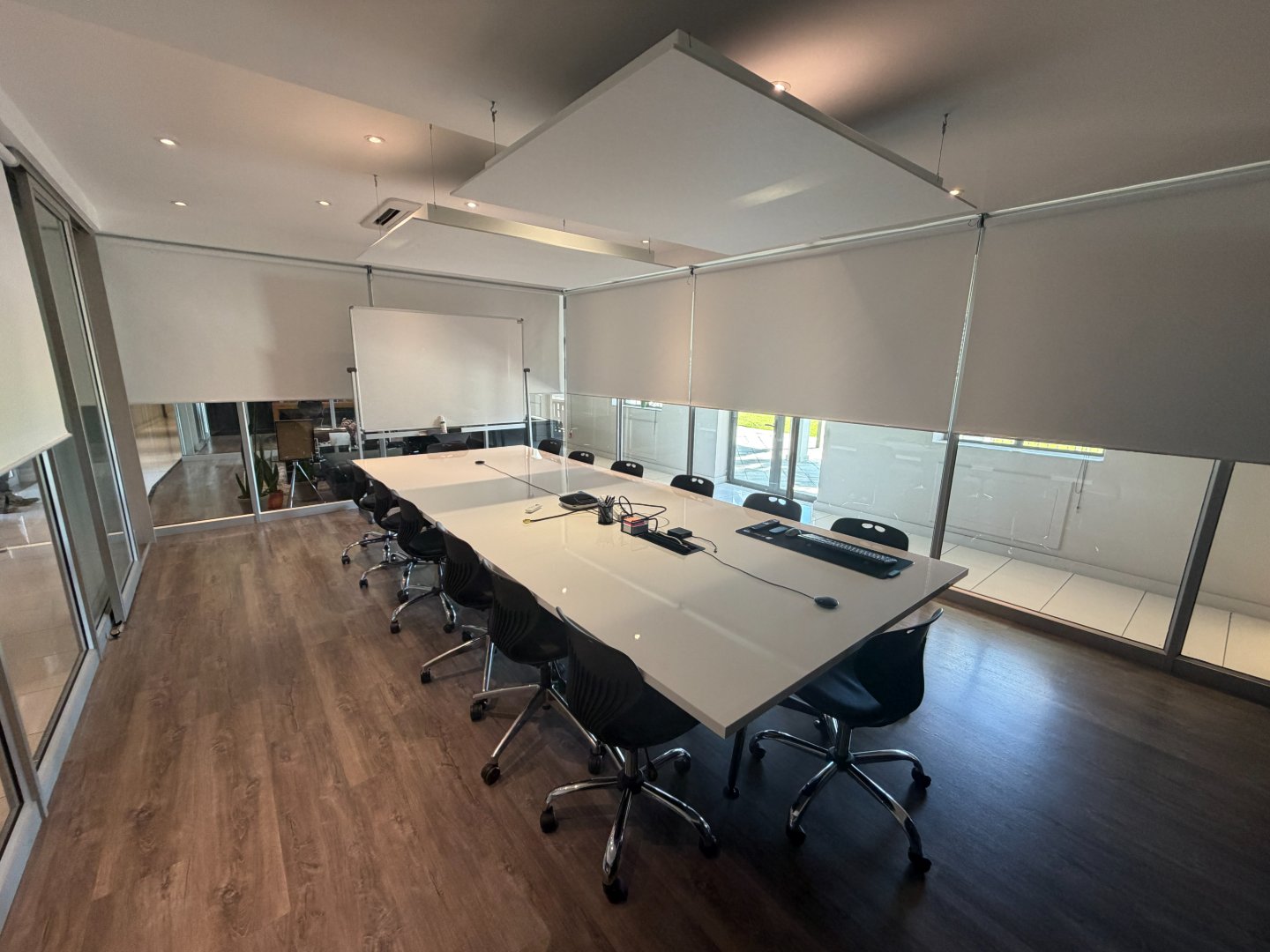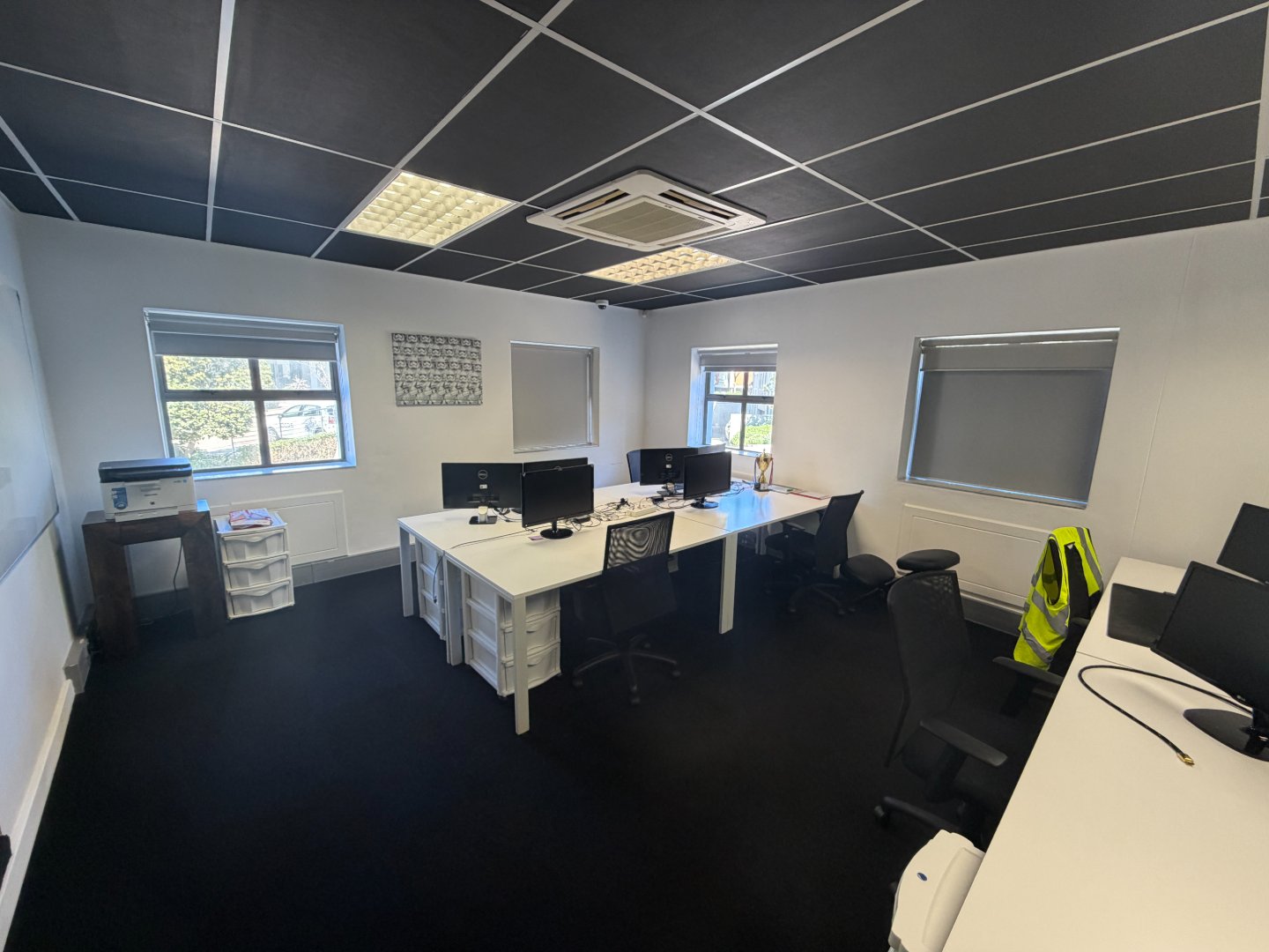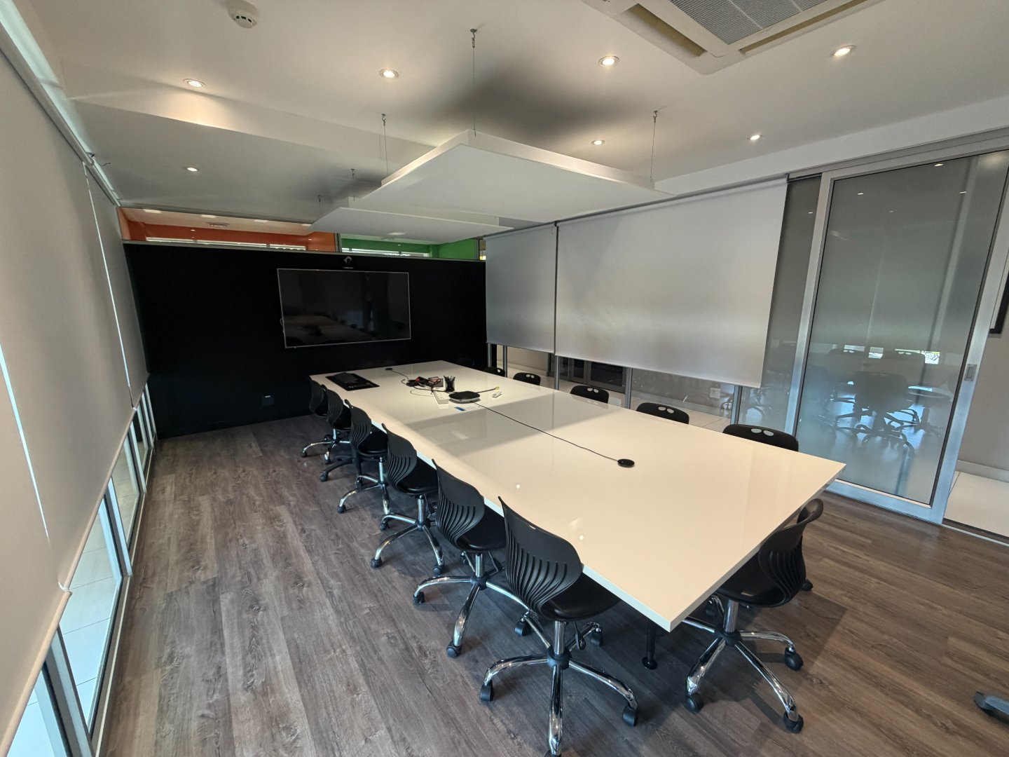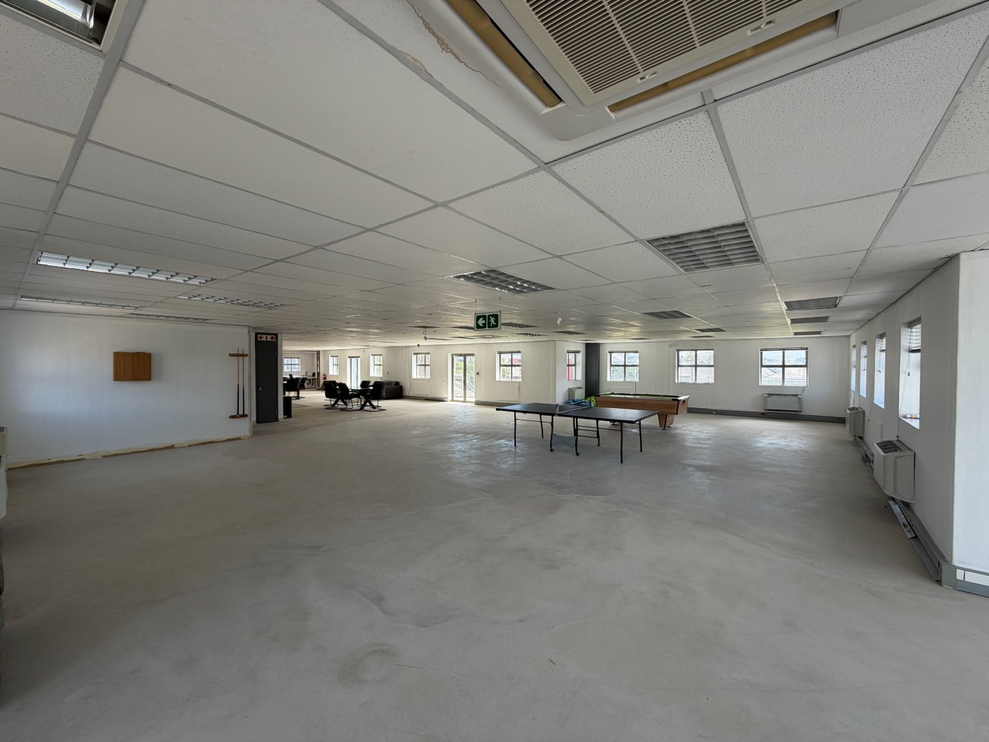 The ground floor features a spacious open-plan office area, complemented by two well-sized boardrooms that can easily double as private offices. Multiple meeting pods support collaborative working, while a large canteen area provides an excellent staff amenity. The floor is further serviced by private ablutions, an on-site shower, and a balcony with direct access overlooking the landscaped park area, creating a pleasant and functional working environment.