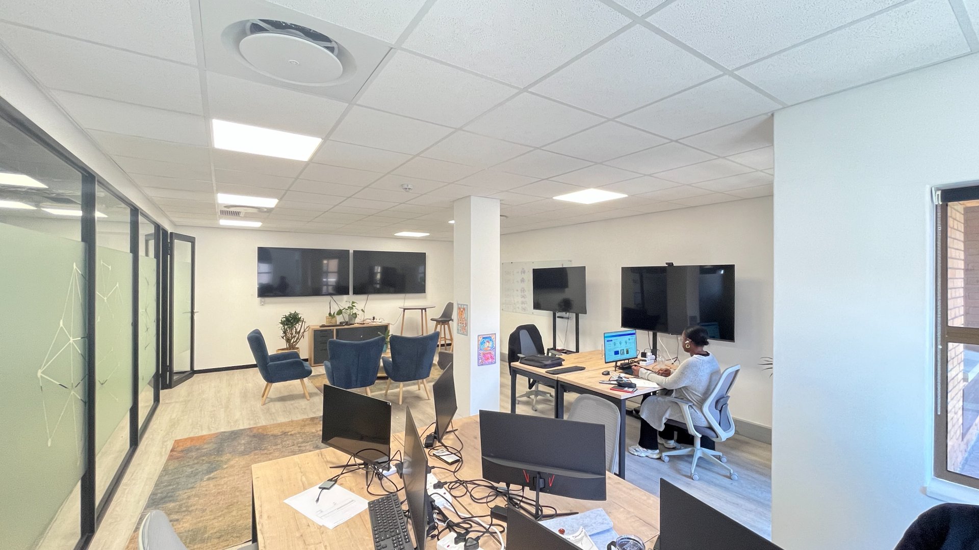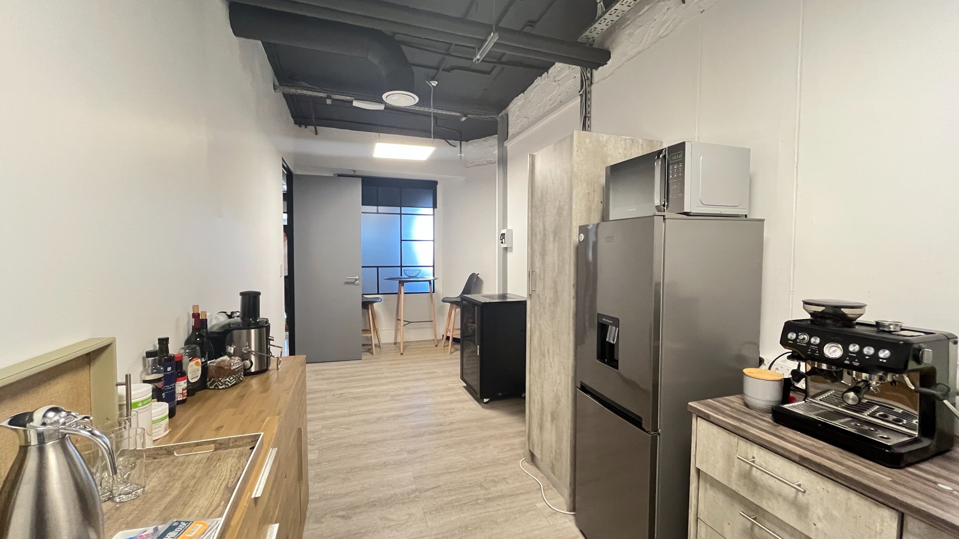 The unit is on the 1st floor of the building, which can be accessed via the stairs or elevator. Once you enter the unit, you will be greeted by a modern reception area. The configuration is made up of mainly separate offices and a large dedicated space for the primary team. There is a closed off kitchen, outside area and air conditioning units scattered around the unit. This is a fantastic space for anyone wanting to impress or attract high caliber staff. An added bonus is a Roobarb cafe / restaurant on the ground floor for great coffee, food and awesome breakaway area.