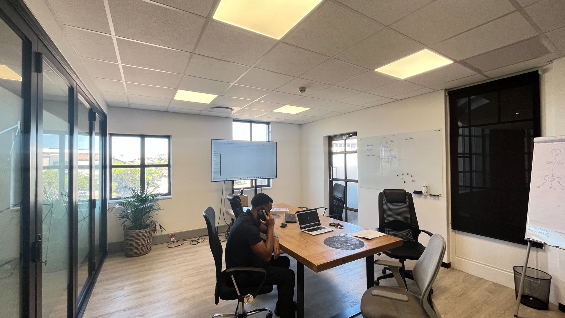 No. 1 Waterhouse is an 11 000m2 Premium Grade office redevelopment situated in the sought after Waterford Precinct of Century City. The building boasts a high aesthetic appeal and professional experience and is 4-Star Green Rated. In keeping with the timeless design, the main atrium is fitted with acoustic grade glass providing natural light. The development sits in a secured commercial park and has onsite uncovered parking and basement parking available to tenants. Generators available for building and tenant use.