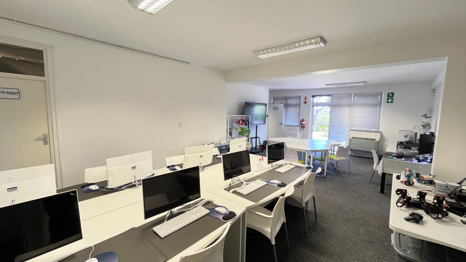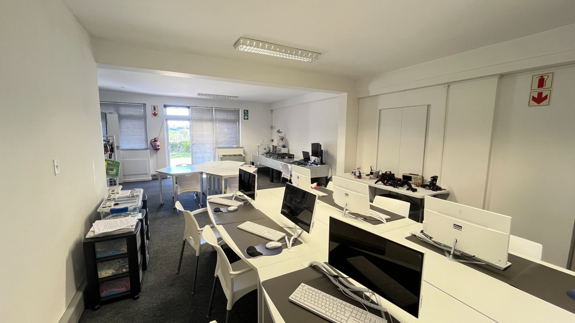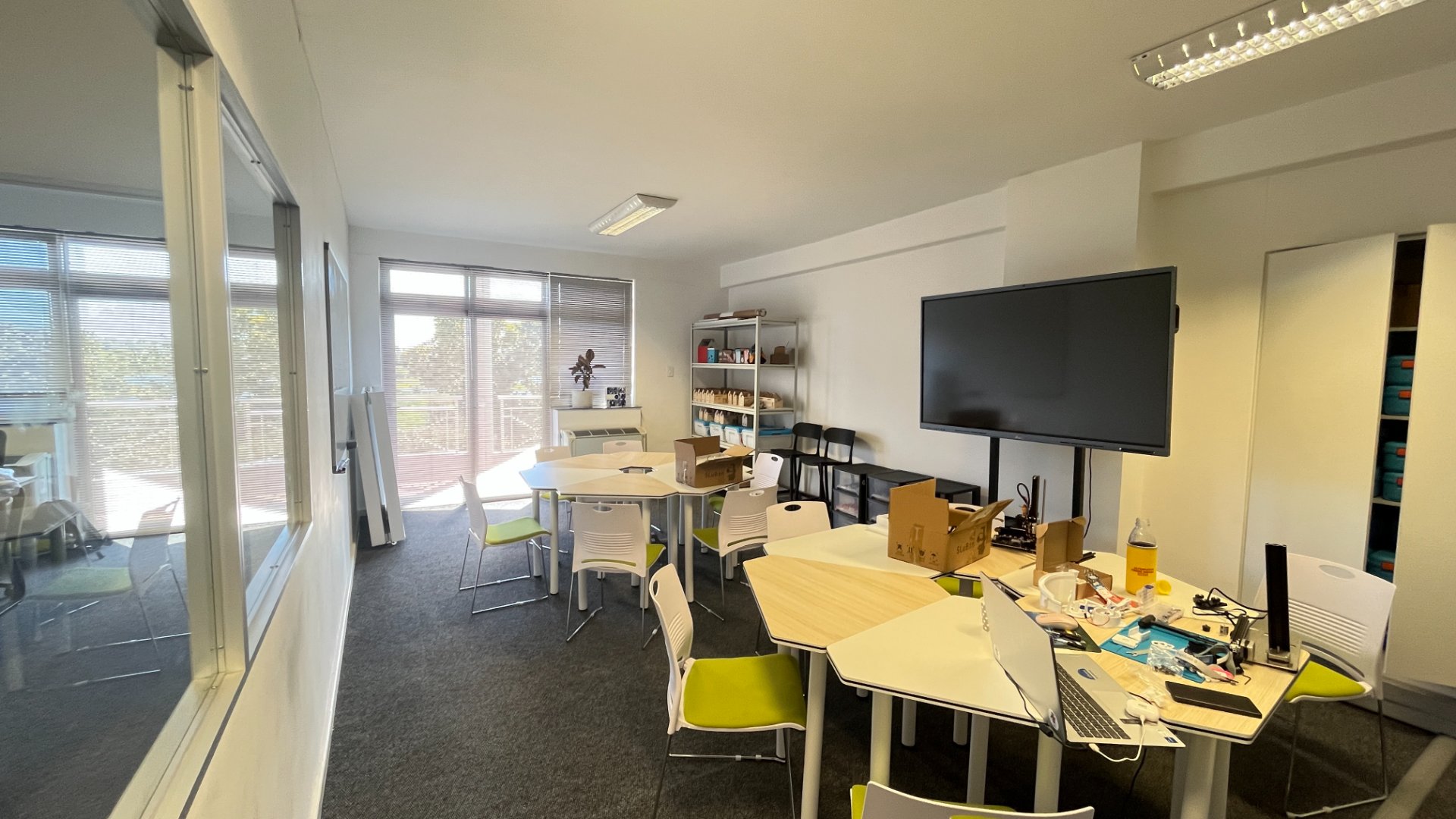 Expansive open-plan workspace leading onto a balcony