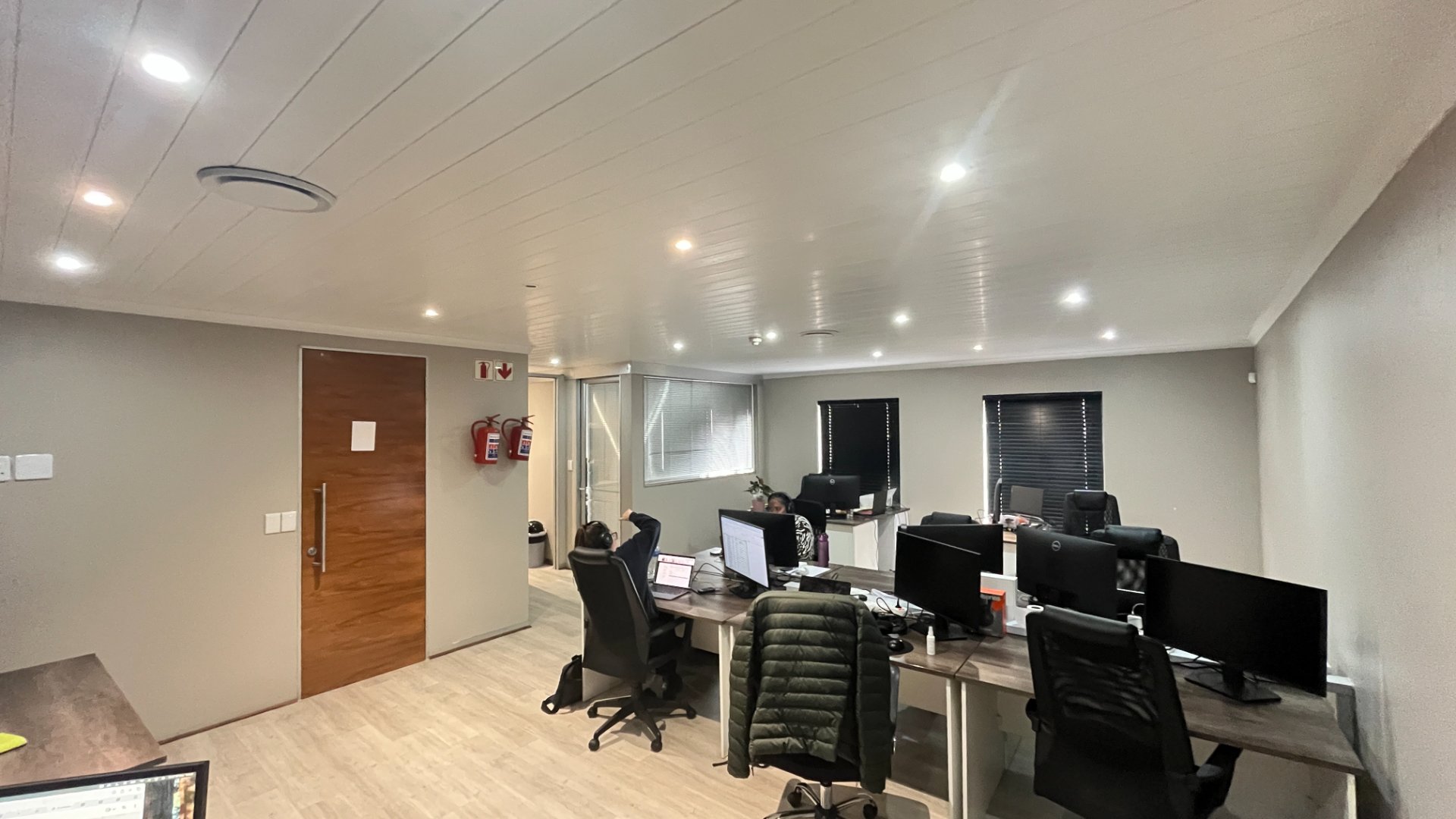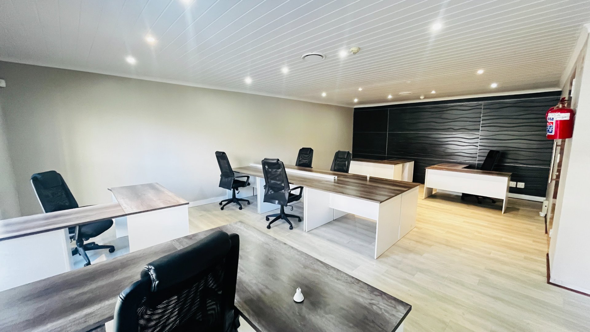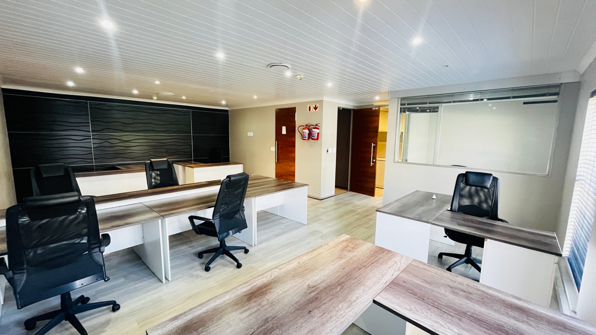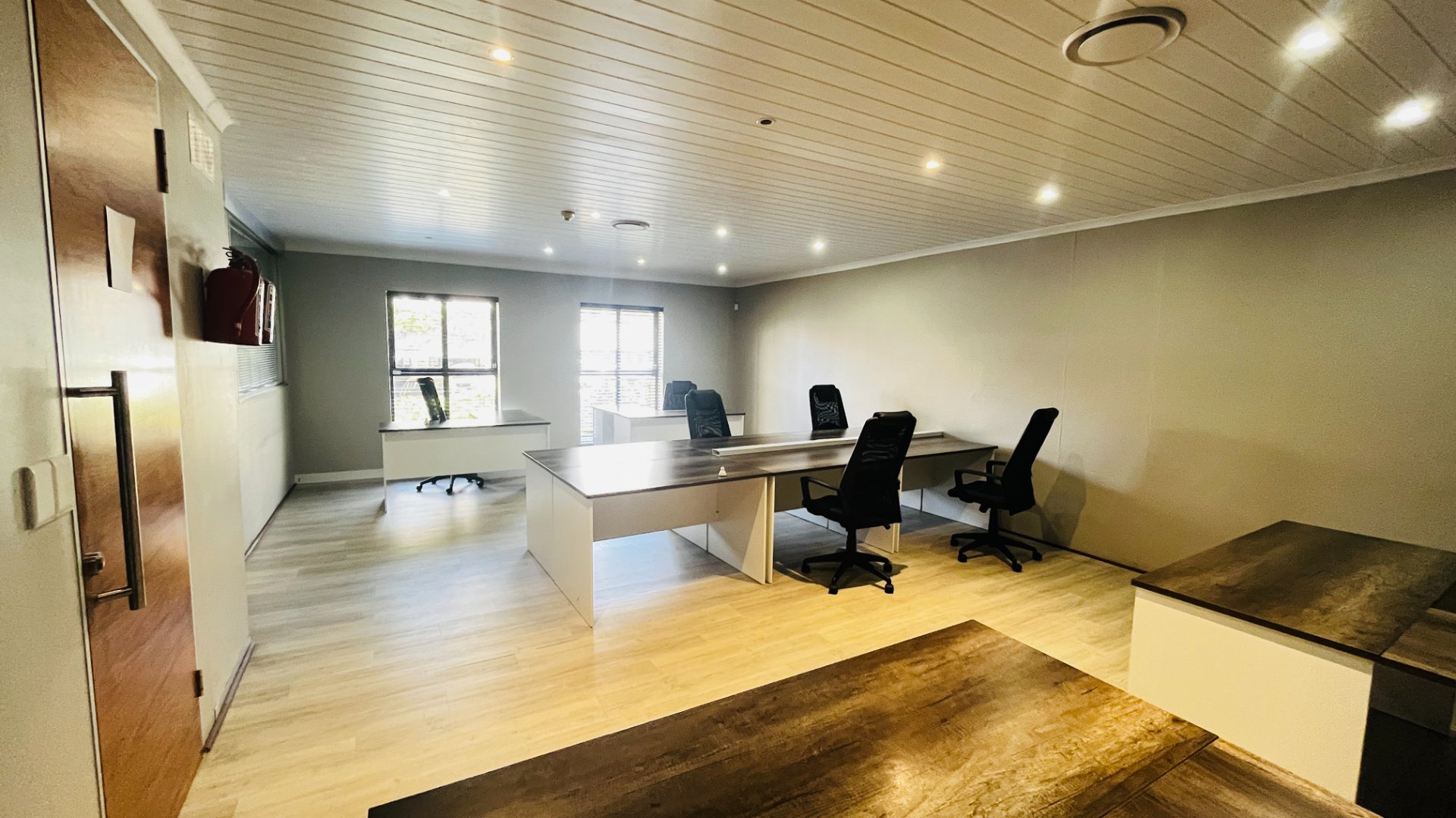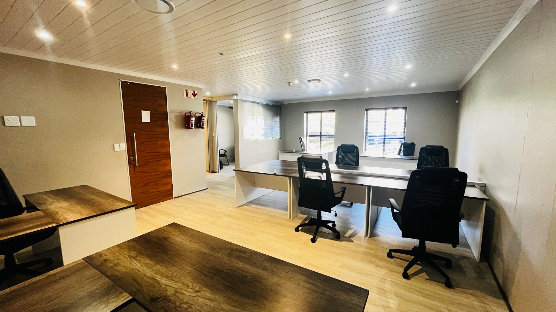 The unit features a modern, contemporary layout designed for functionality and comfort. It includes a welcoming reception area, a boardroom for client meetings, a private office, and a spacious open-plan section that can comfortably accommodate your core team. The unit also comes fitted with its own kitchen and ablution facilities, ensuring convenience for staff and visitors alike.