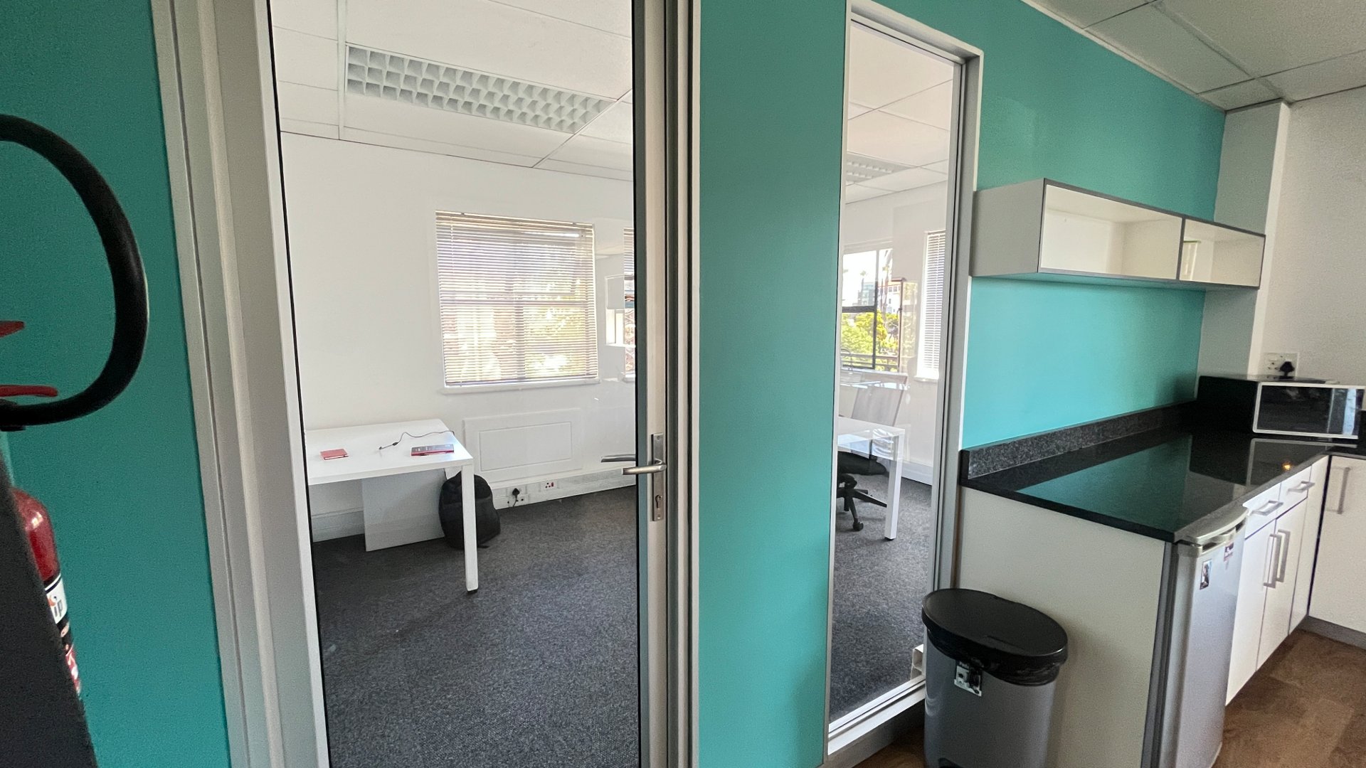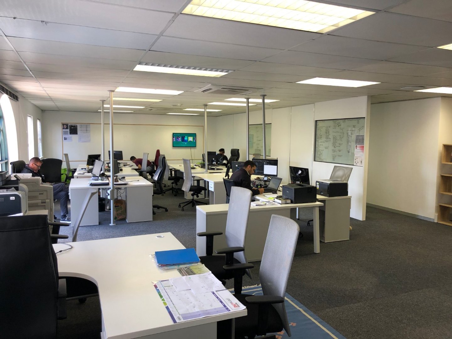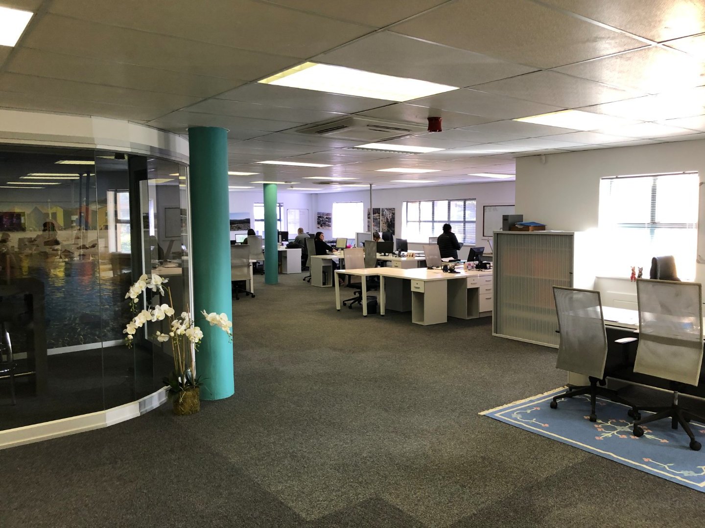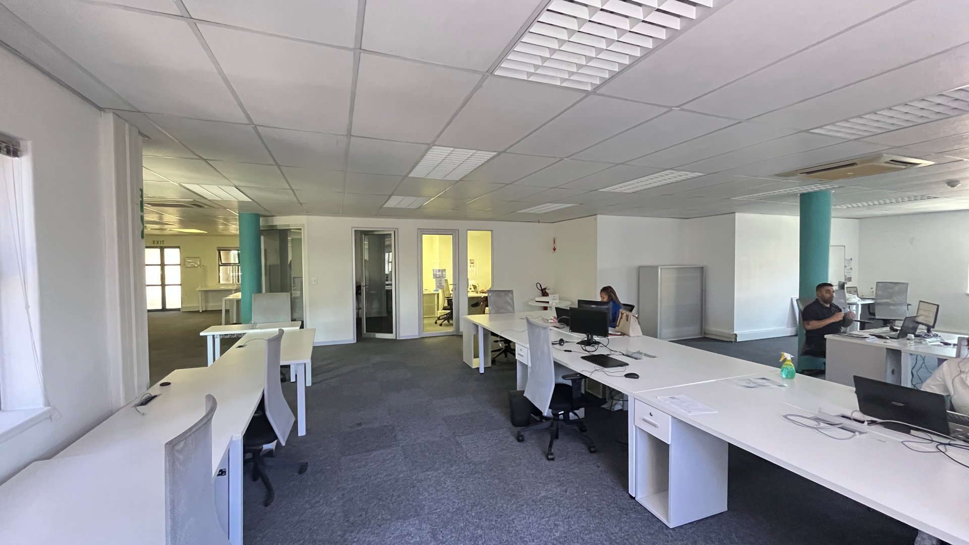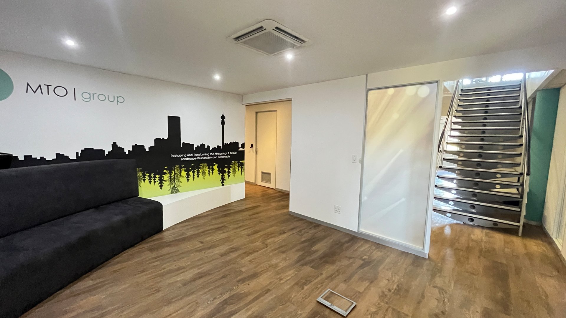 To the left of reception, the office offers multiple boardrooms and a substantial open-plan workspace suitable for 40–50 employees, complemented by a relaxed chill area.