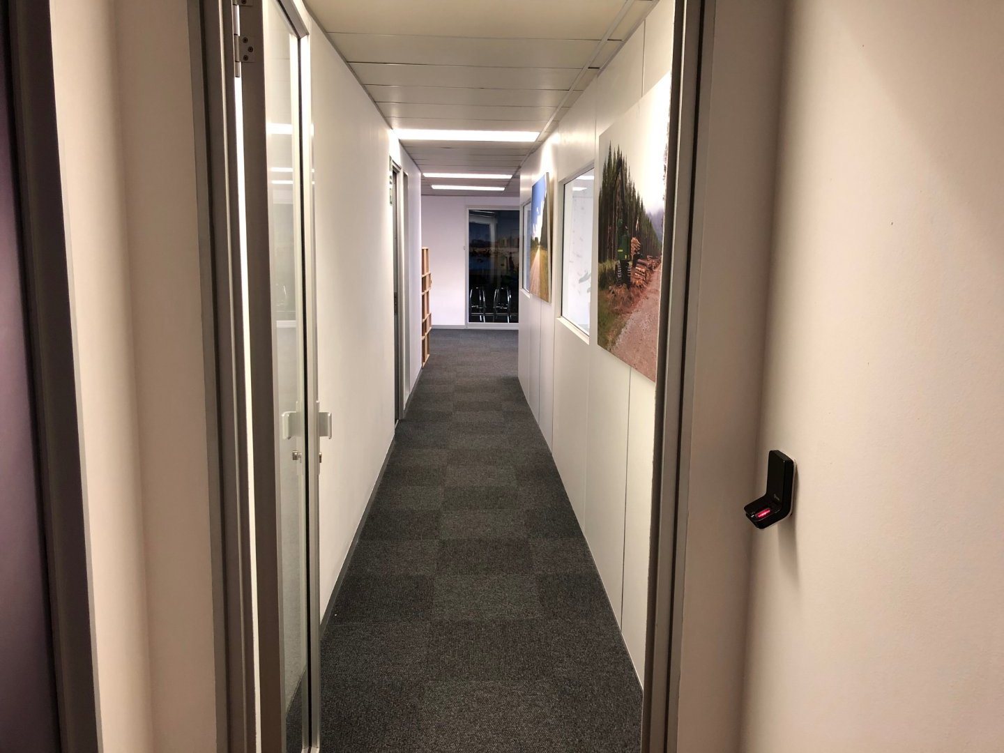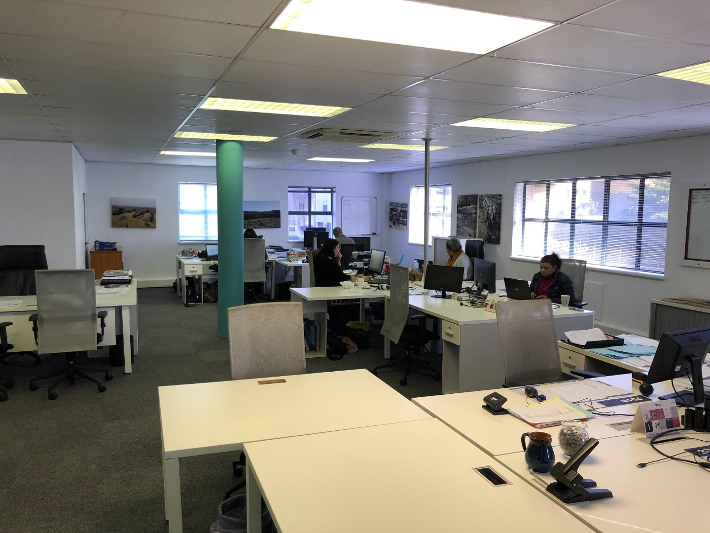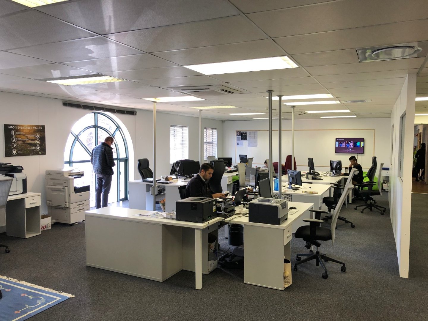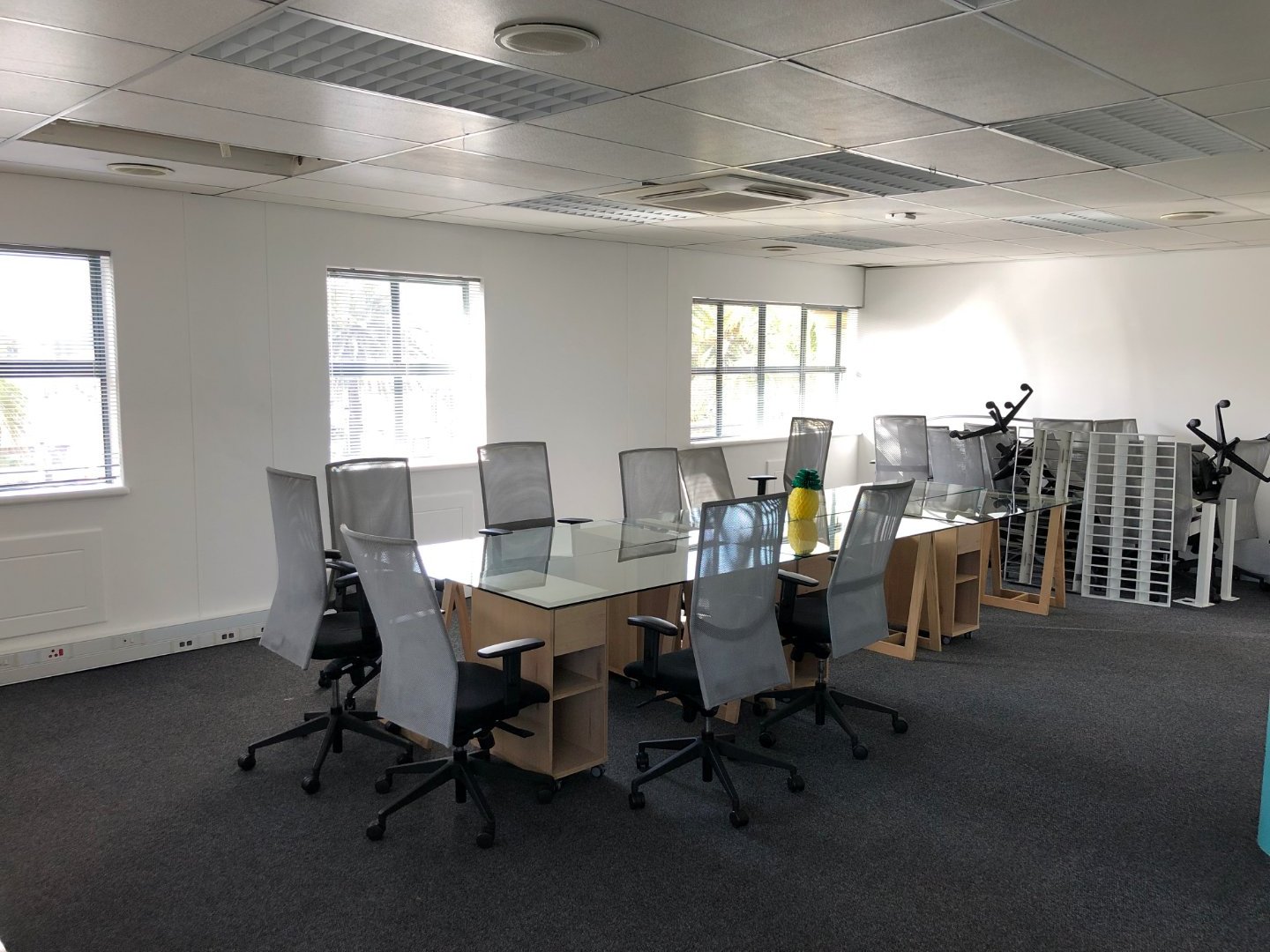 To the left of reception, the office offers multiple boardrooms and a substantial open-plan workspace suitable for 40–50 employees, complemented by a relaxed chill area.