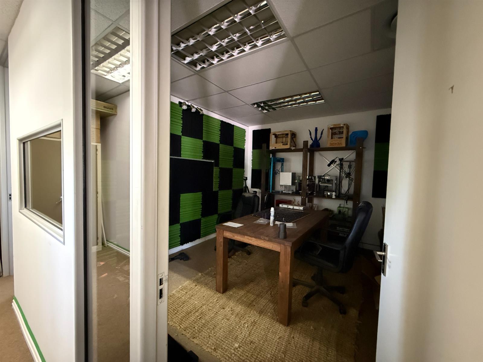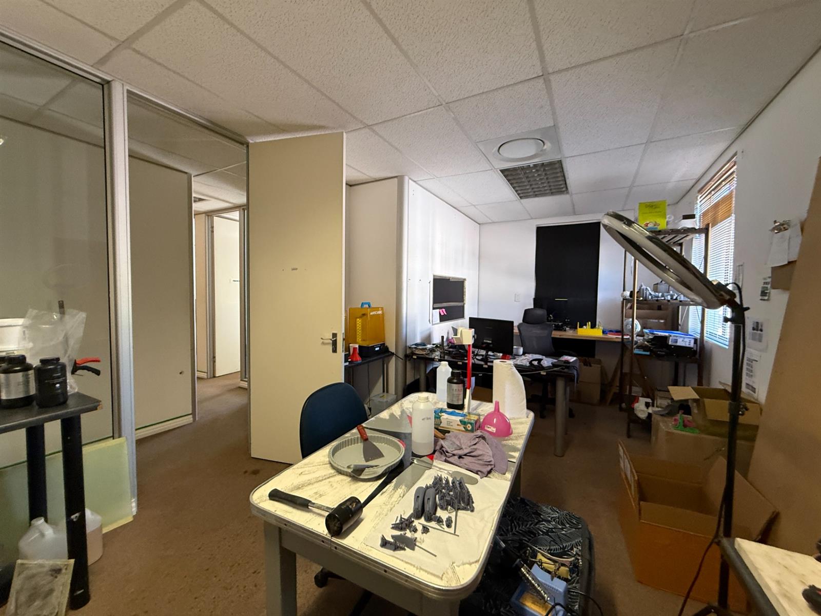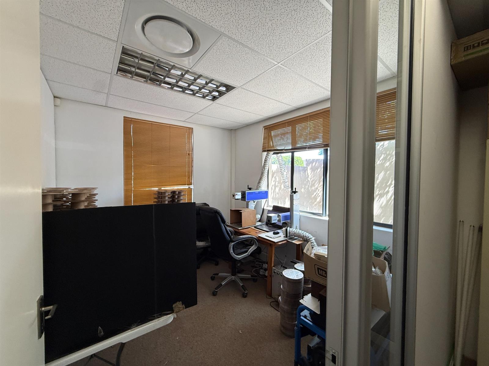 The unit comprises four combined offices with the flexibility to reconfigure if needed. Features include a welcoming reception area, multiple private offices and meeting rooms, a kitchen and break area, server room, and separate male and female bathrooms. Fully air-conditioned, fibre-ready, freshly painted, and move-in ready.