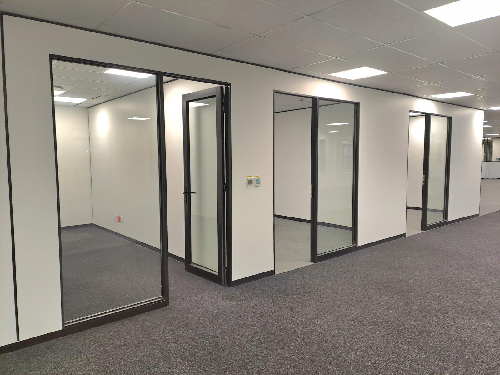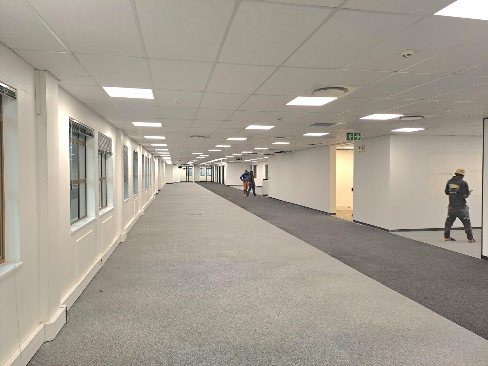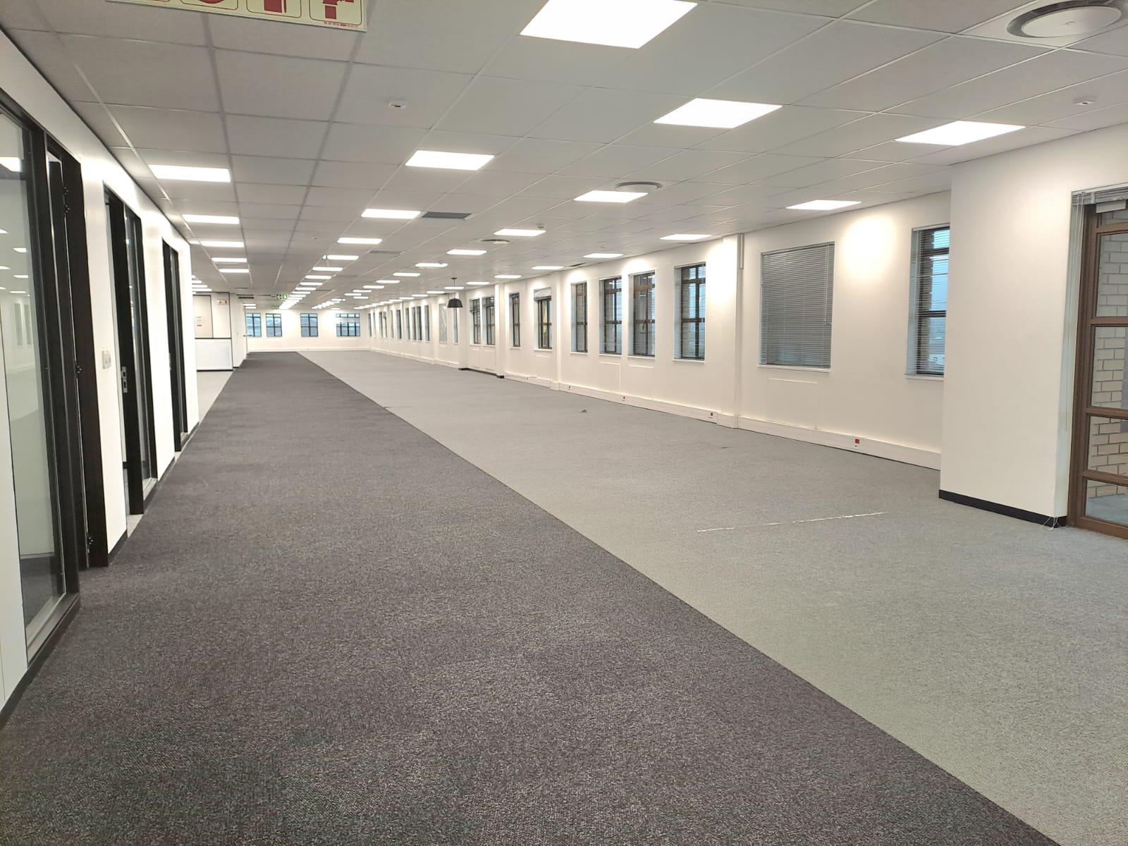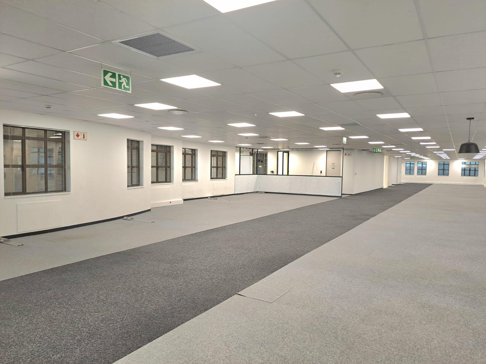 This premium office in Waterford Place, Century City, measures 1,303m2 and is ideal for businesses seeking a modern, professional workspace. The layout includes a reception area, three boardrooms, open-plan offices, executive offices, consultation rooms, a kitchenette with pause area, server room, and ablutions per floor. The office is fully air-conditioned, offers ample natural light, high-end finishes, and access to a generator (levy applies). Gross rental is R220/m2 ex. VAT, inclusive of rates and levies.