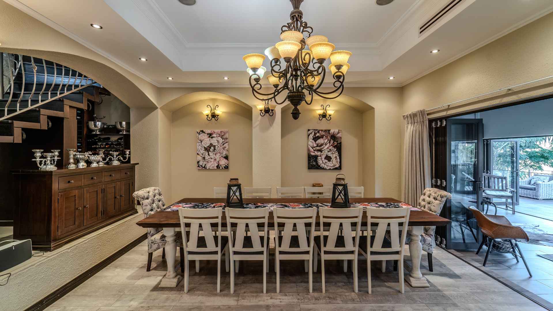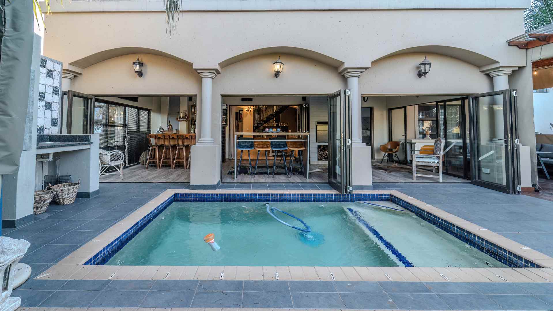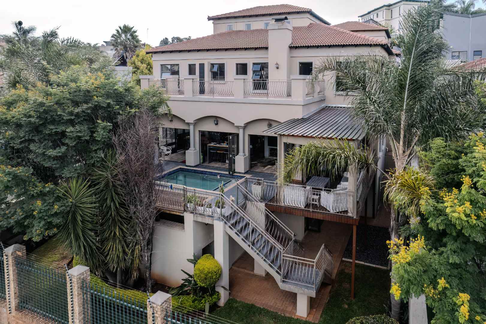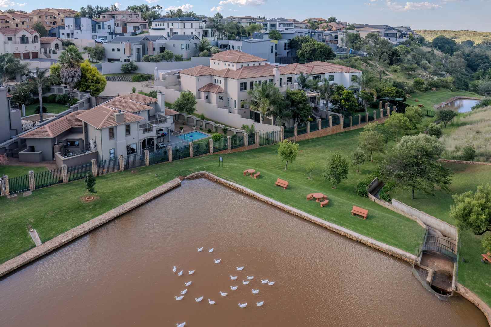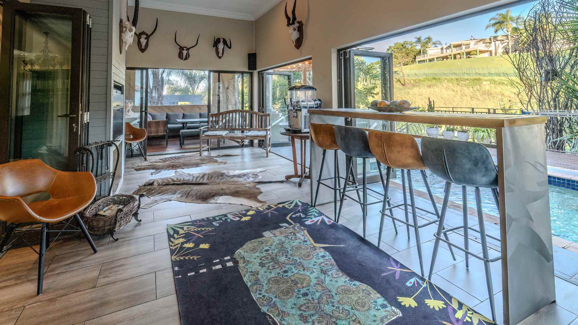 Step into a realm where the entertainment area seamlessly opens onto a veranda, treating you to panoramic views that redefine luxury. Dive into the heated swimming pool, surrounded by lush greenery, and revel in the tranquility of two enchanting fish ponds.