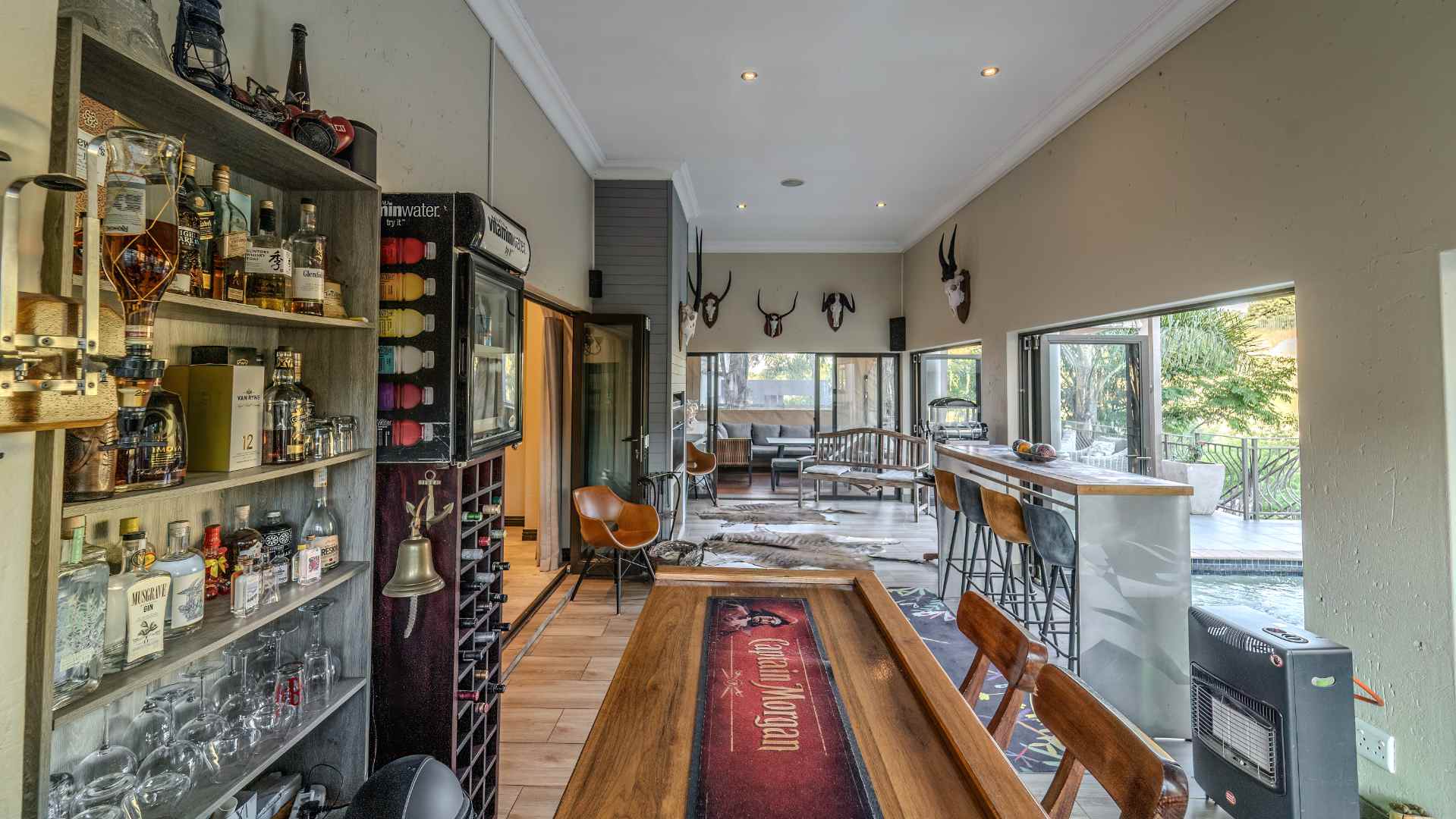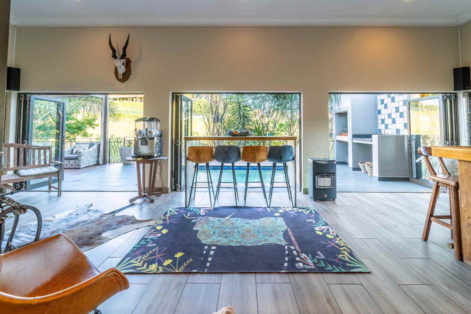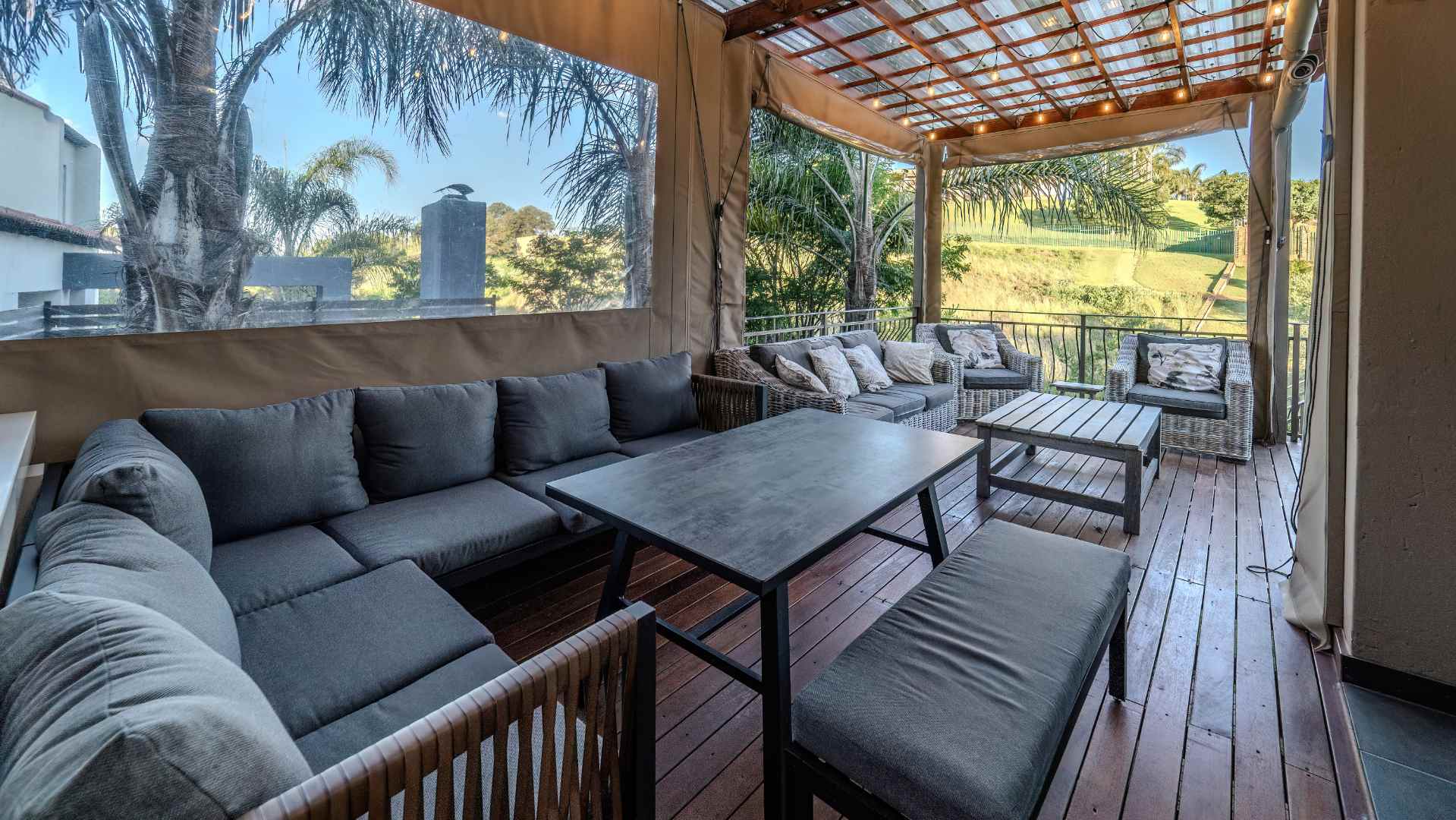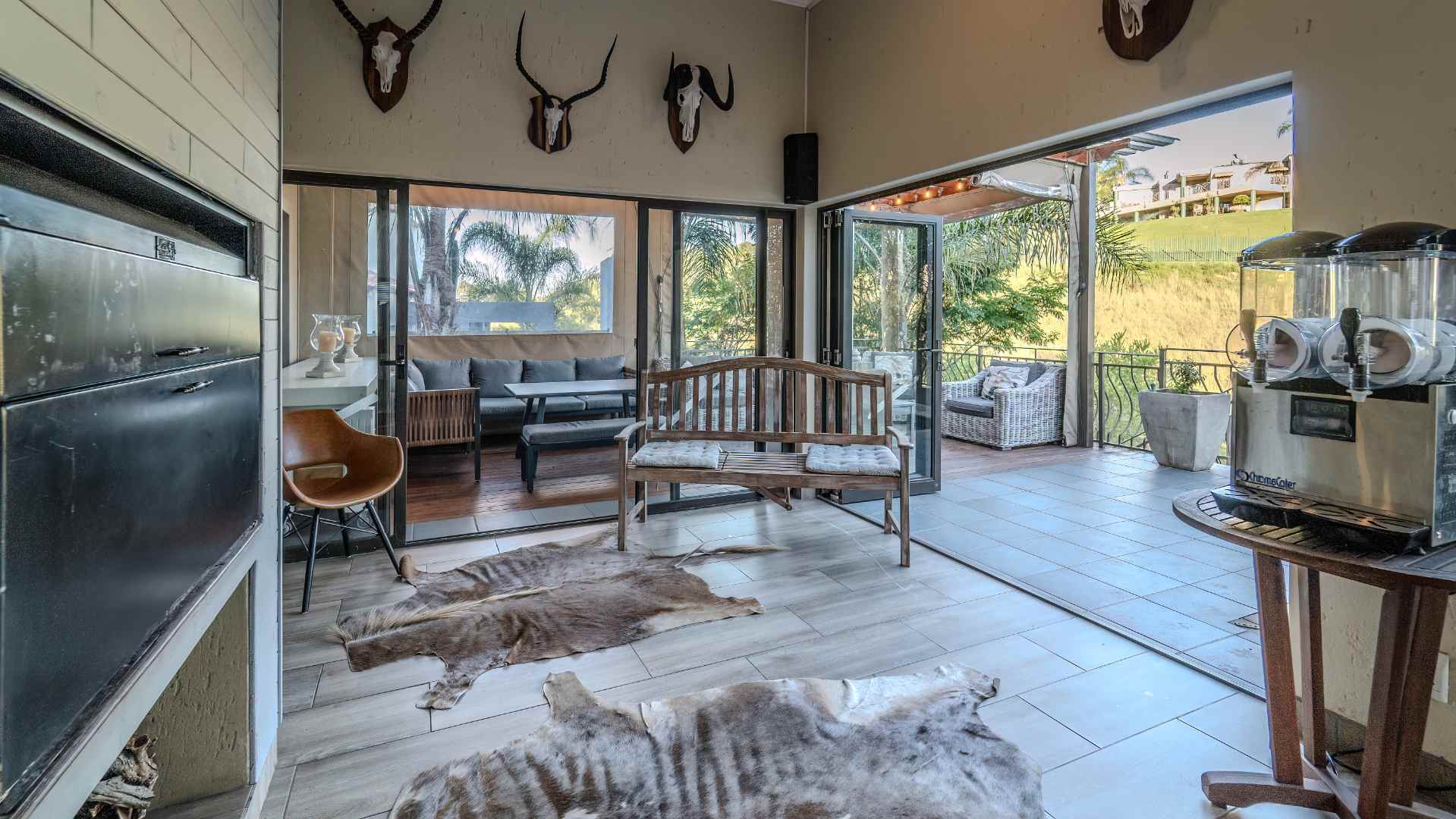 Step into a realm where the entertainment area seamlessly opens onto a veranda, treating you to panoramic views that redefine luxury. Dive into the heated swimming pool, surrounded by lush greenery, and revel in the tranquility of two enchanting fish ponds.