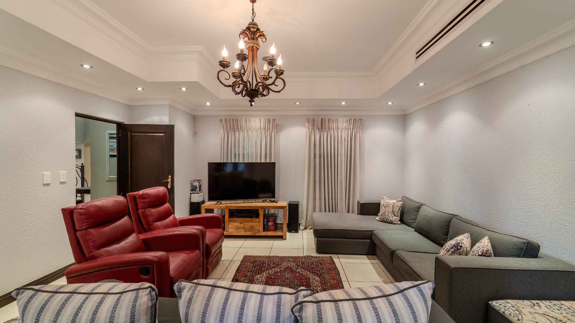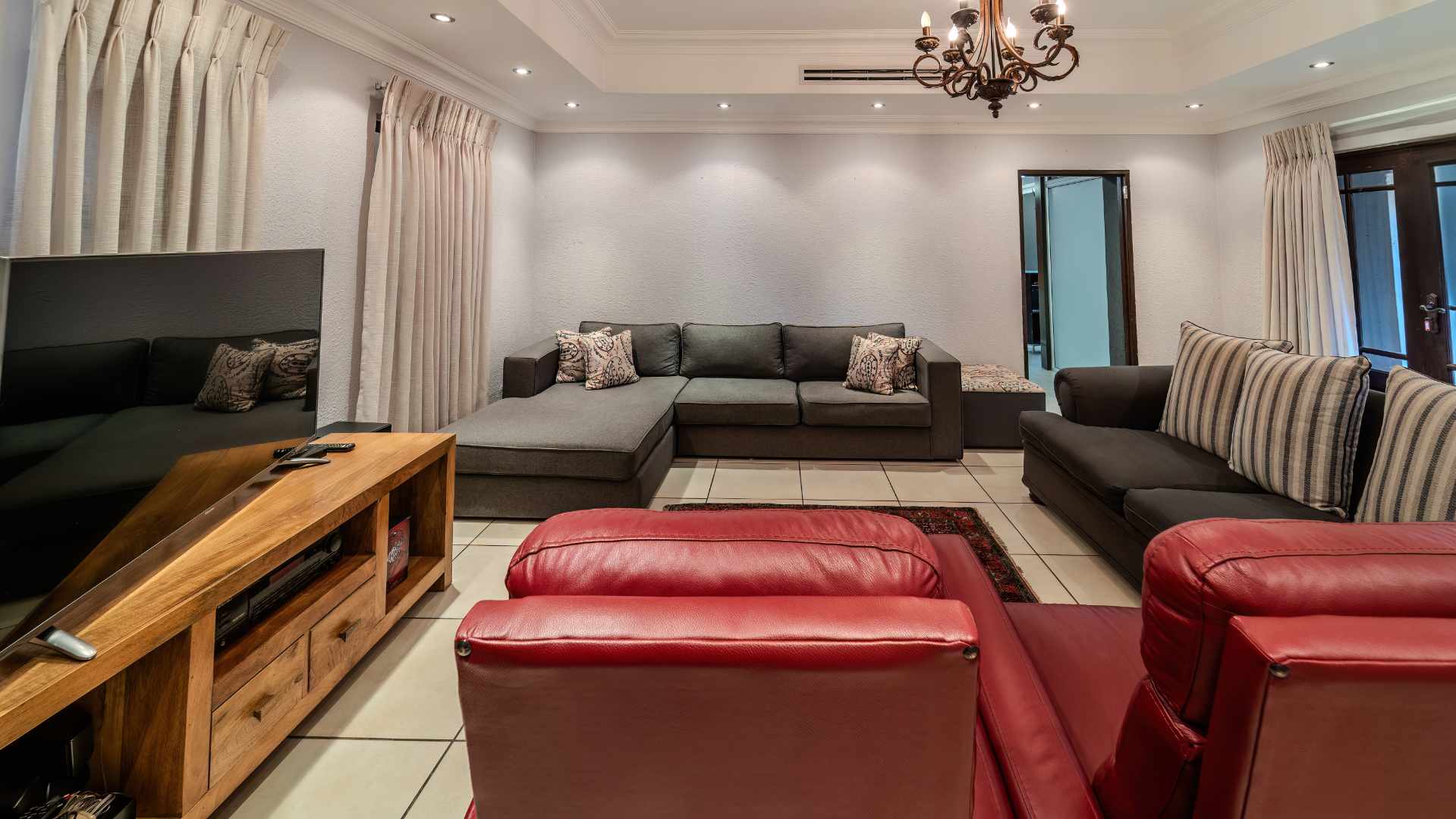 Discover five distinct living areas that cater to various lifestyles, creating a versatile canvas for your unique preferences. The open-plan design of the TV and dining areas fosters an inviting ambiance, while a dedicated children's TV room and pool room open onto a private garden oasis.