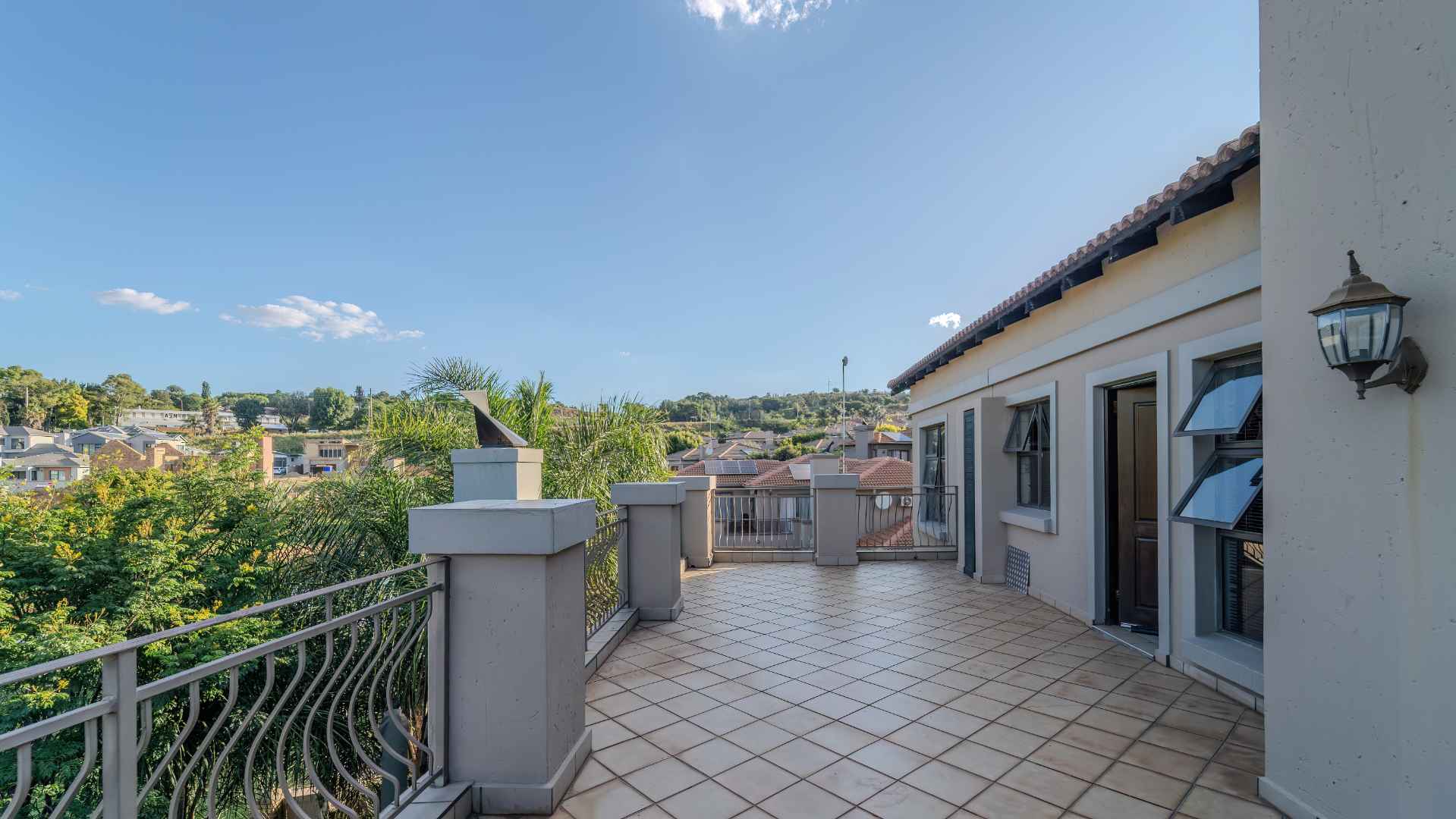 Retreat to the main bedroom, an oasis with an en-suite bathroom featuring a chandelier and a walk-in closet. The first bedroom boasts a walk-in closet, en-suite bathroom, and a veranda with captivating views. Two additional bedrooms share a balcony, providing a seamless connection with the outdoors.