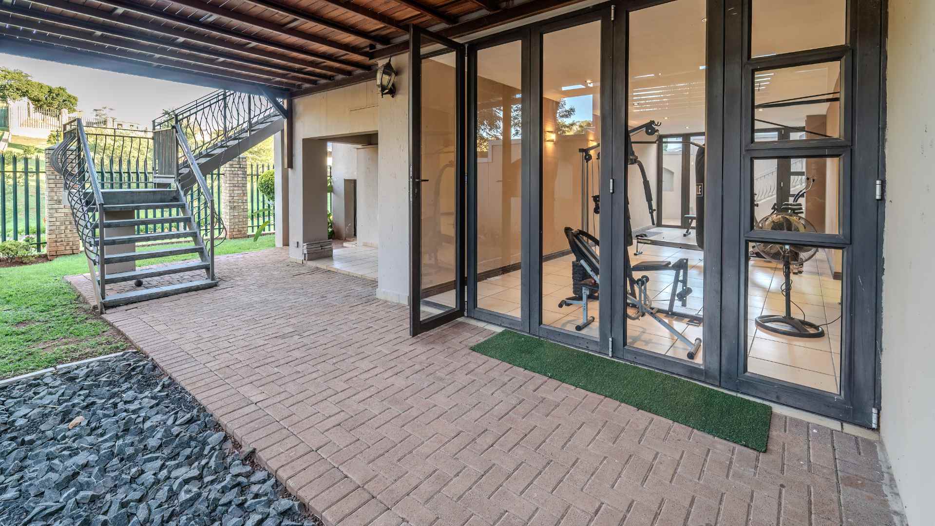 Organize effortlessly with two storerooms, a small storage space, and maids' quarters. A spacious gym with glass doors on both sides extends into a private garden, and four garages cater to your vehicle needs.