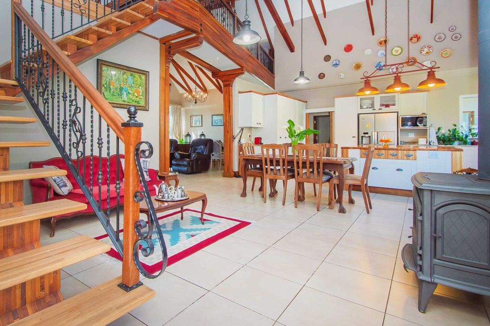 - Upstairs Main Bedroom with ample Cupboard Space, open-plan Lounge, Full en-suite Bathroom & a private Patio for Spectacular Sunsets & Views