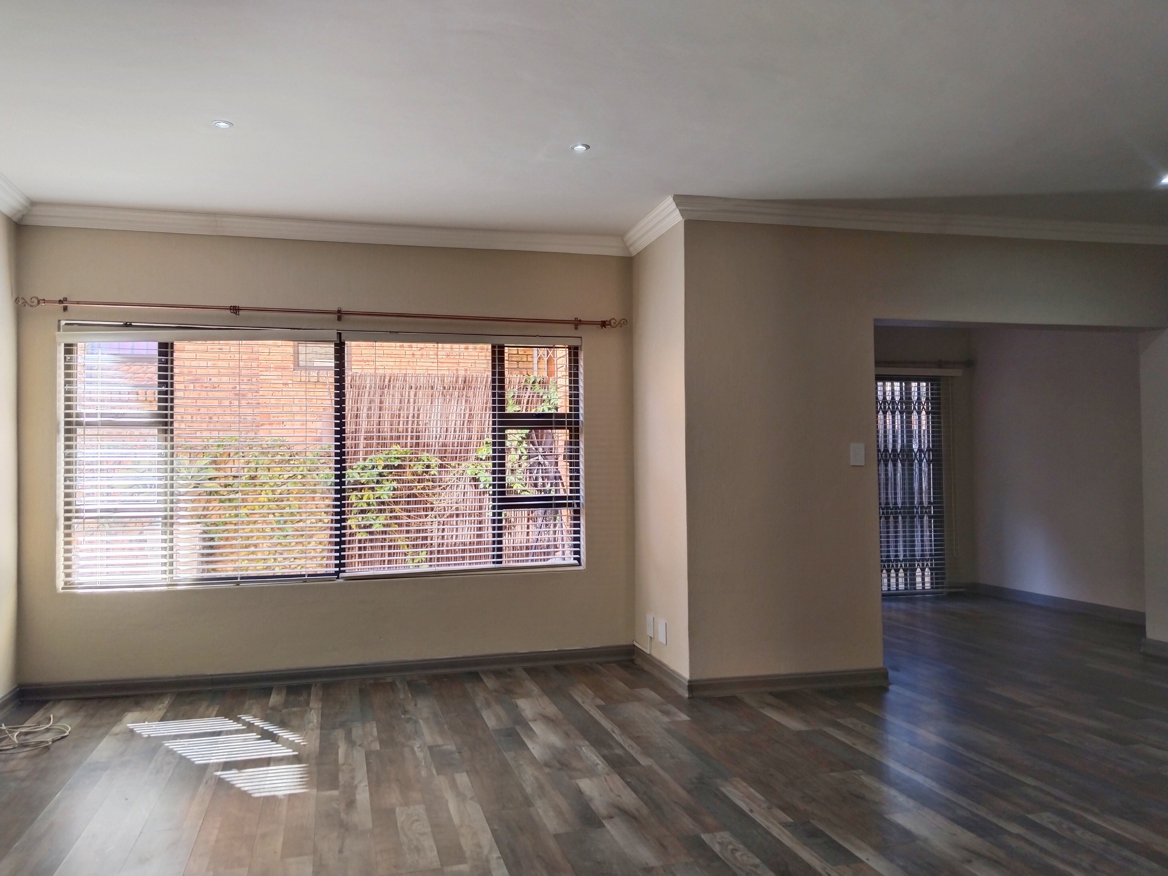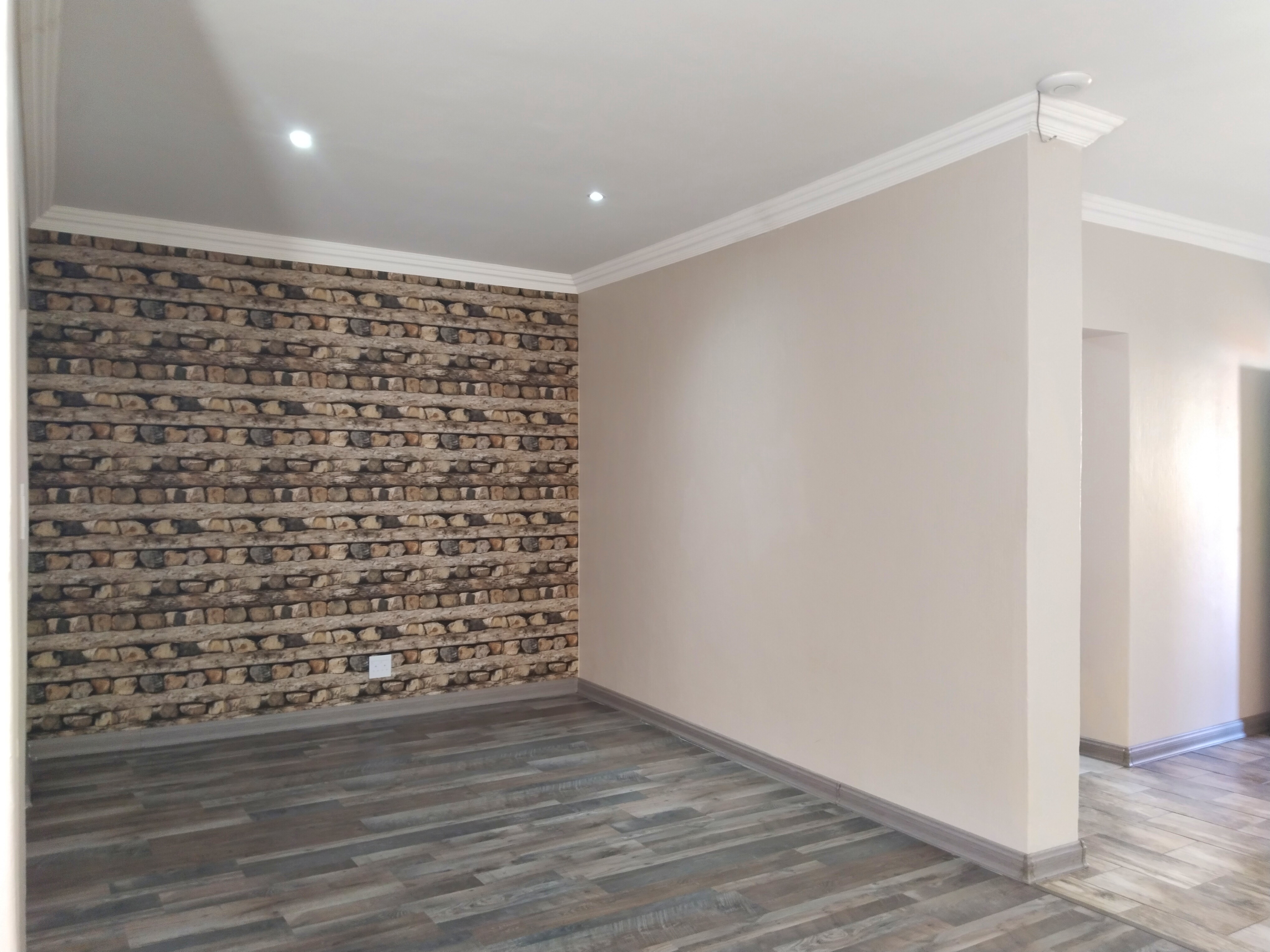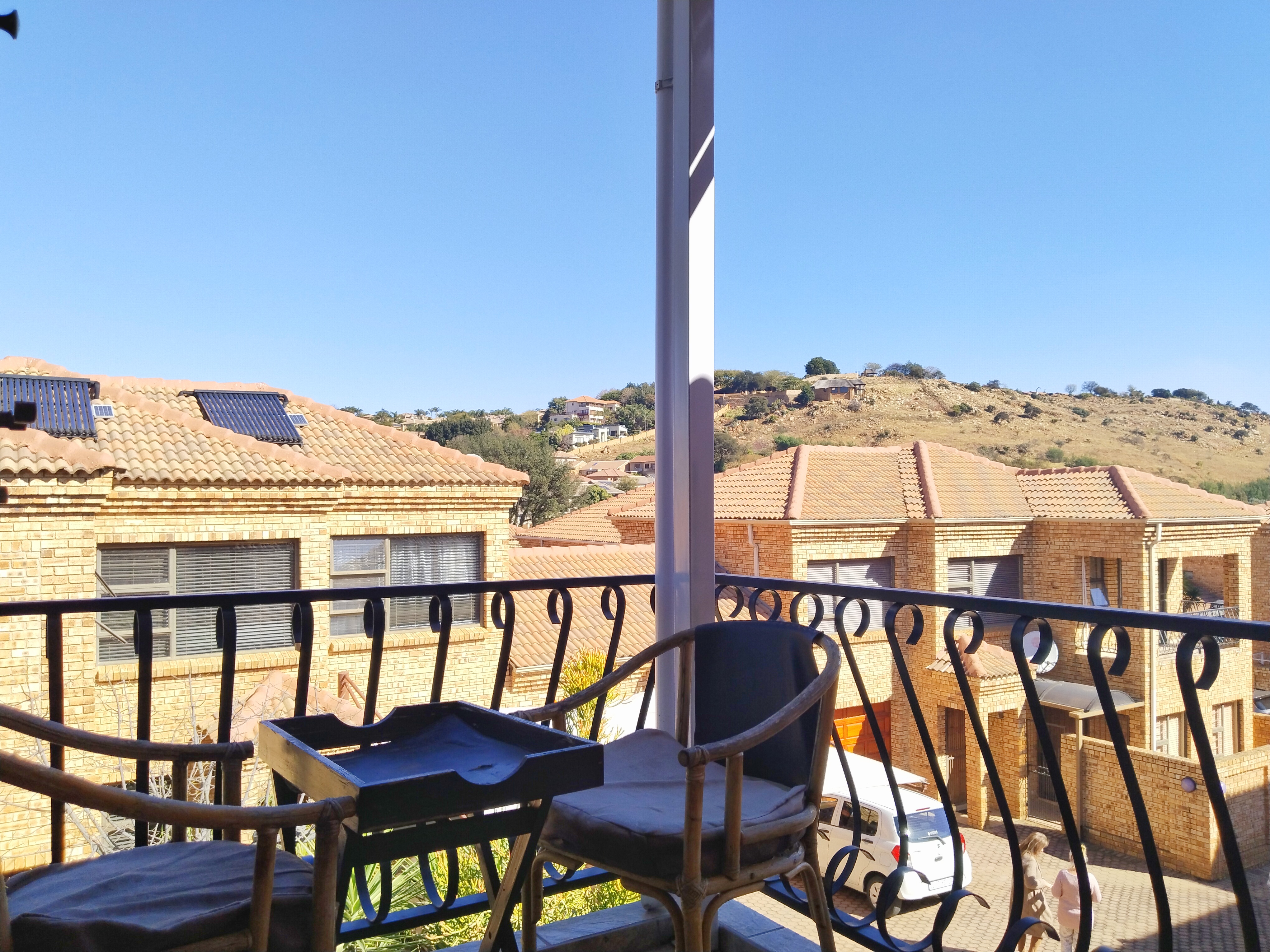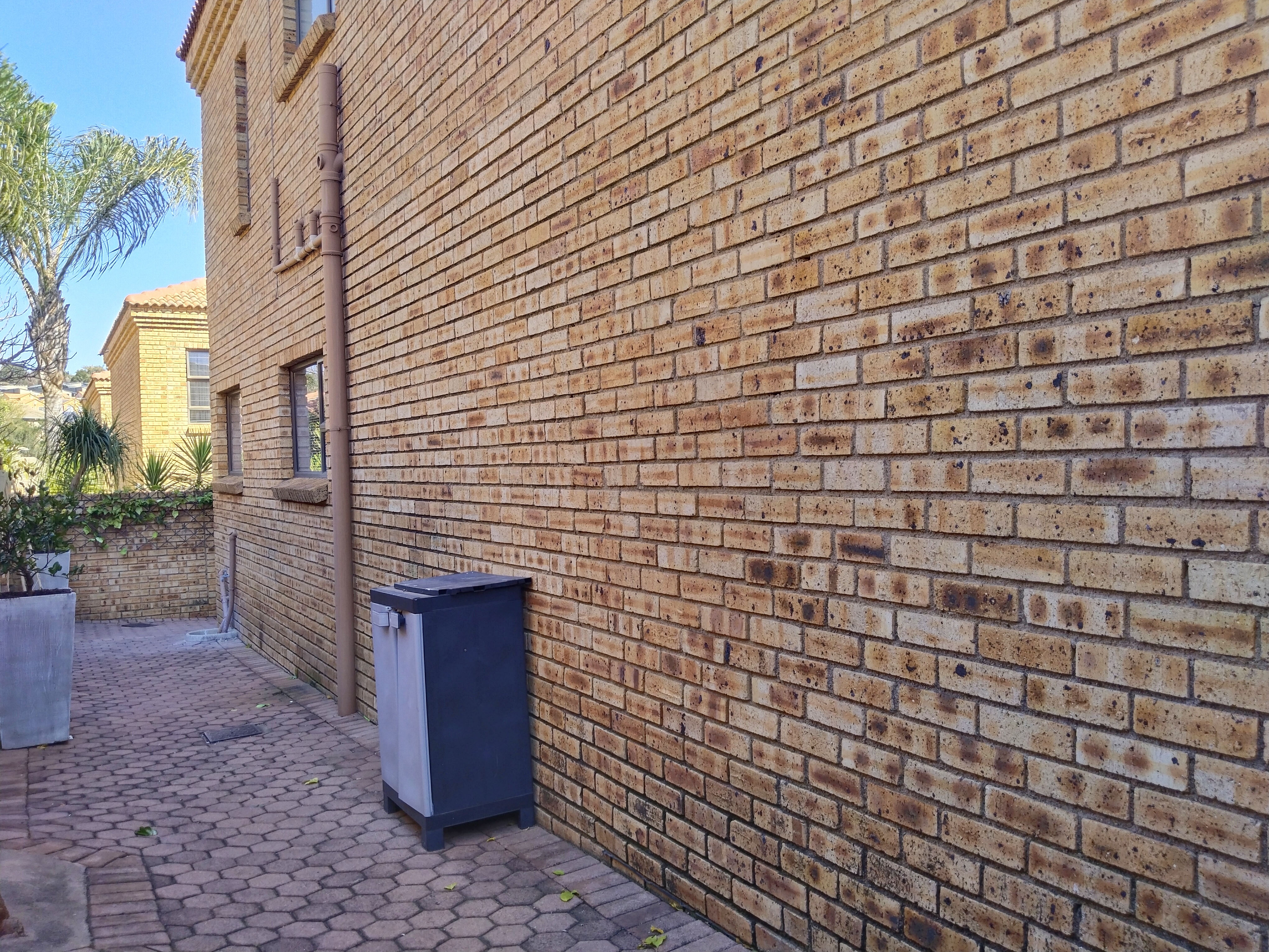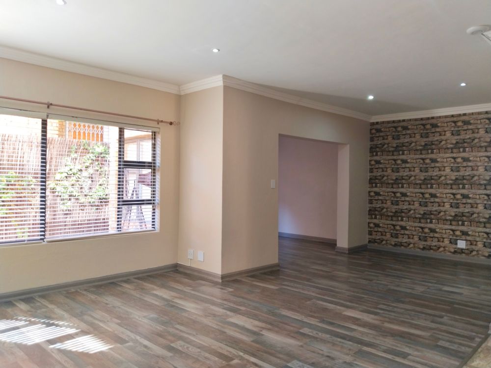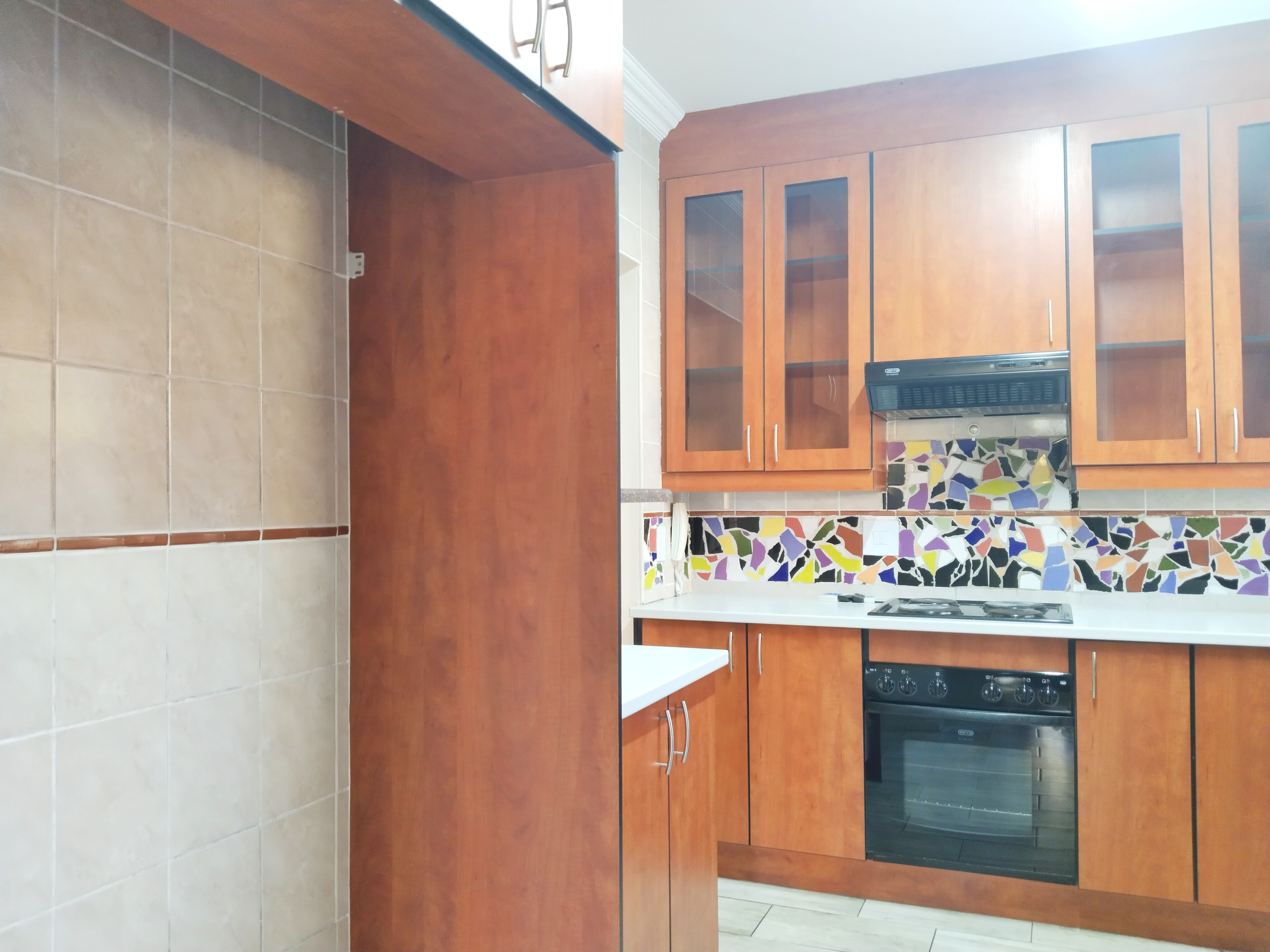 The modern kitchen offers ample built-in cupboards, a wine rack, and a separate scullery with space for a washing machine and dishwasher. A striking chandelier lights up the staircase leading to the upper level, where you’ll find three generously sized bedrooms. The main bedroom includes an en-suite bathroom with heated lights and extra cupboards, while the second bathroom has a bath, hand shower, toilet, and basin.