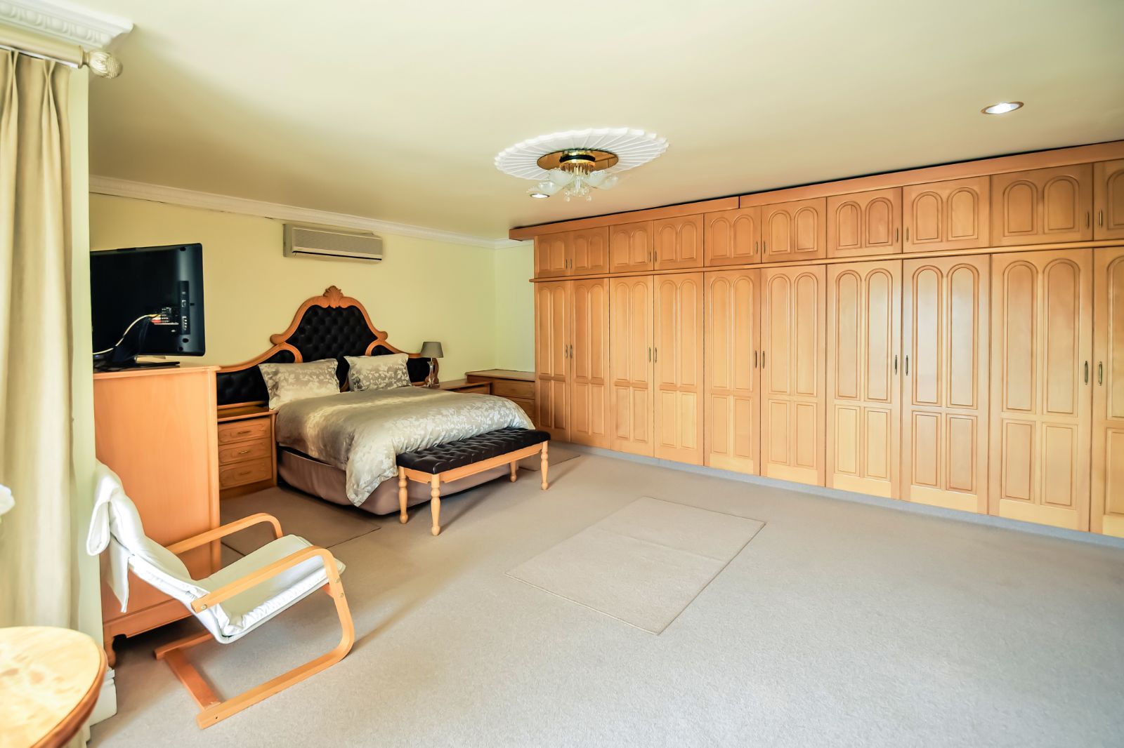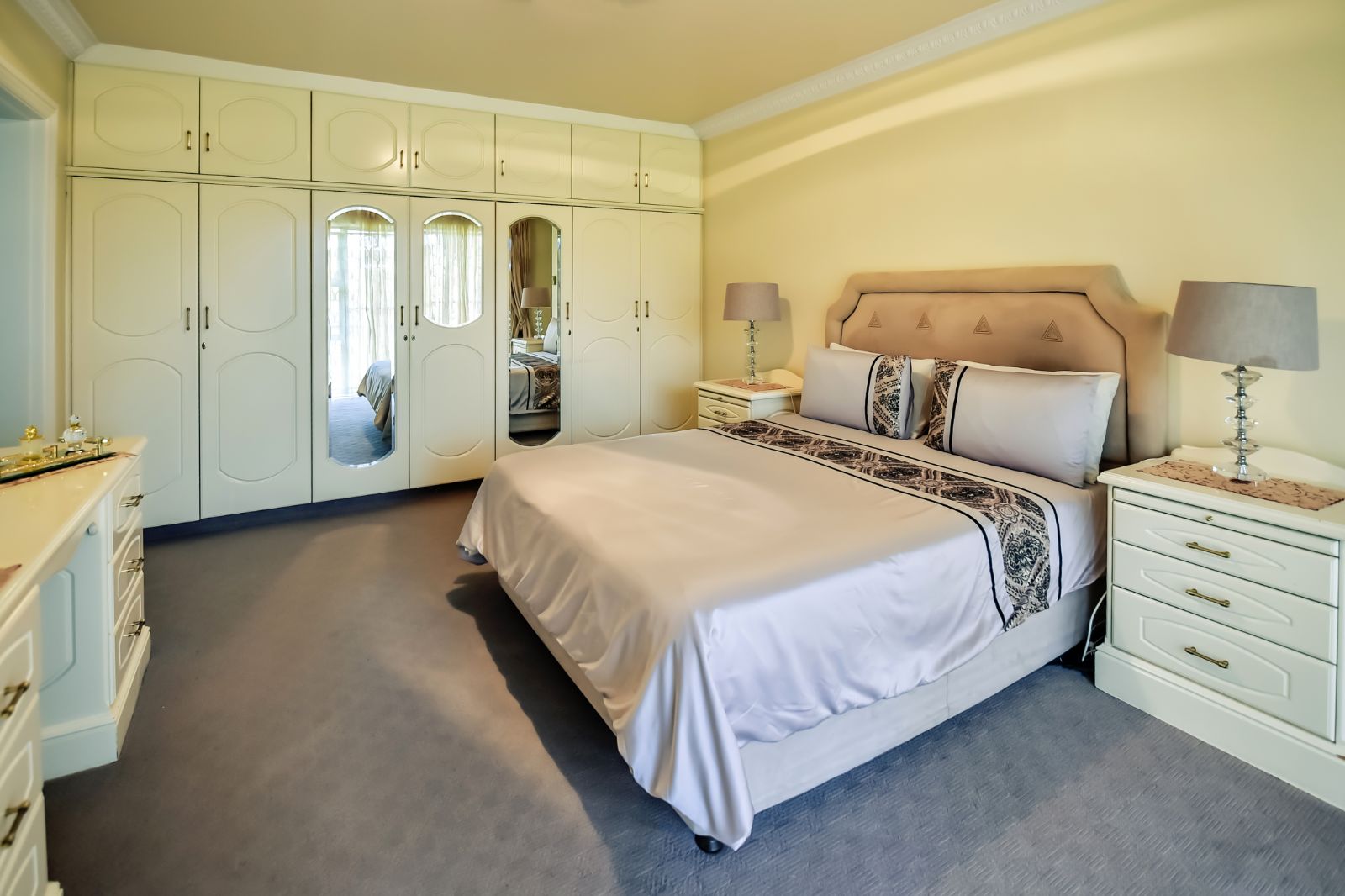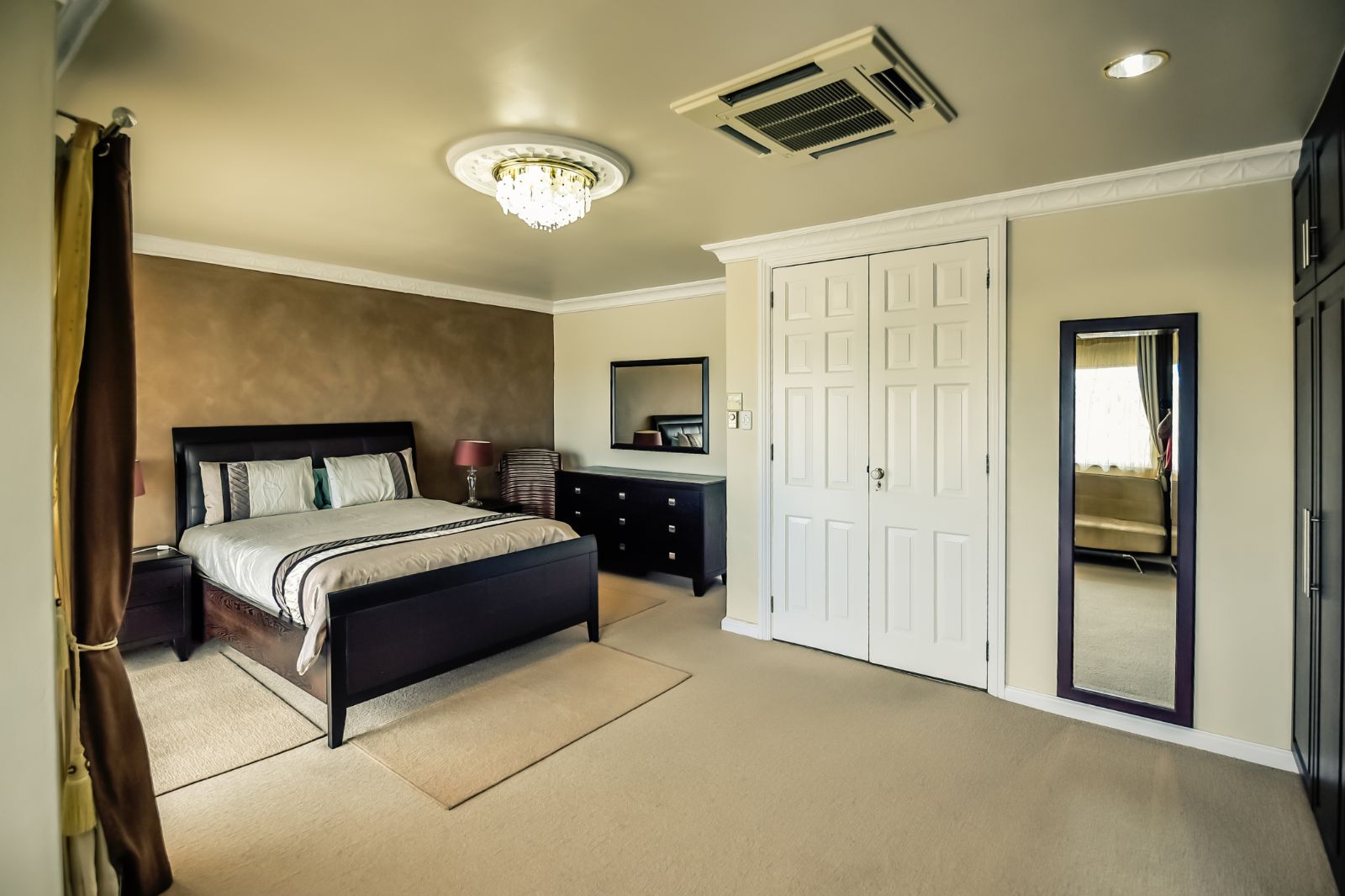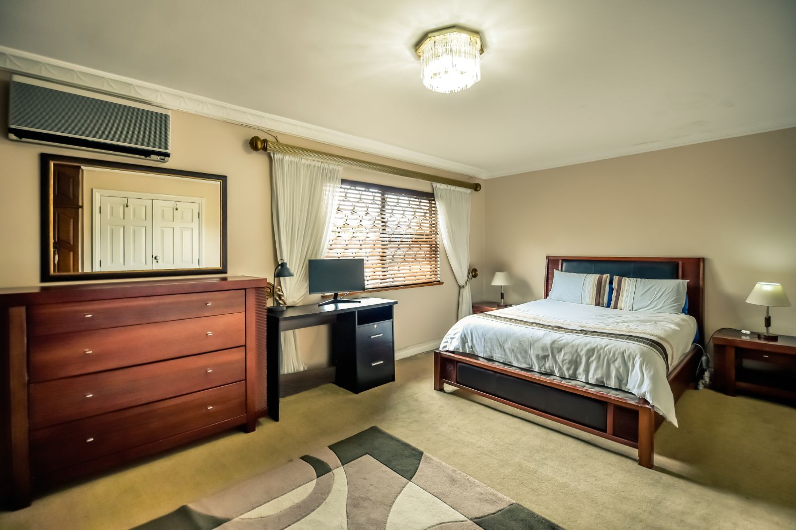 The house offers six bedrooms, of which 2 have en-suites. All the bedrooms have built-in cupboards finished in beech wood, embuia, and superwood, carpeted floors and air-conditioned for your comfort.
