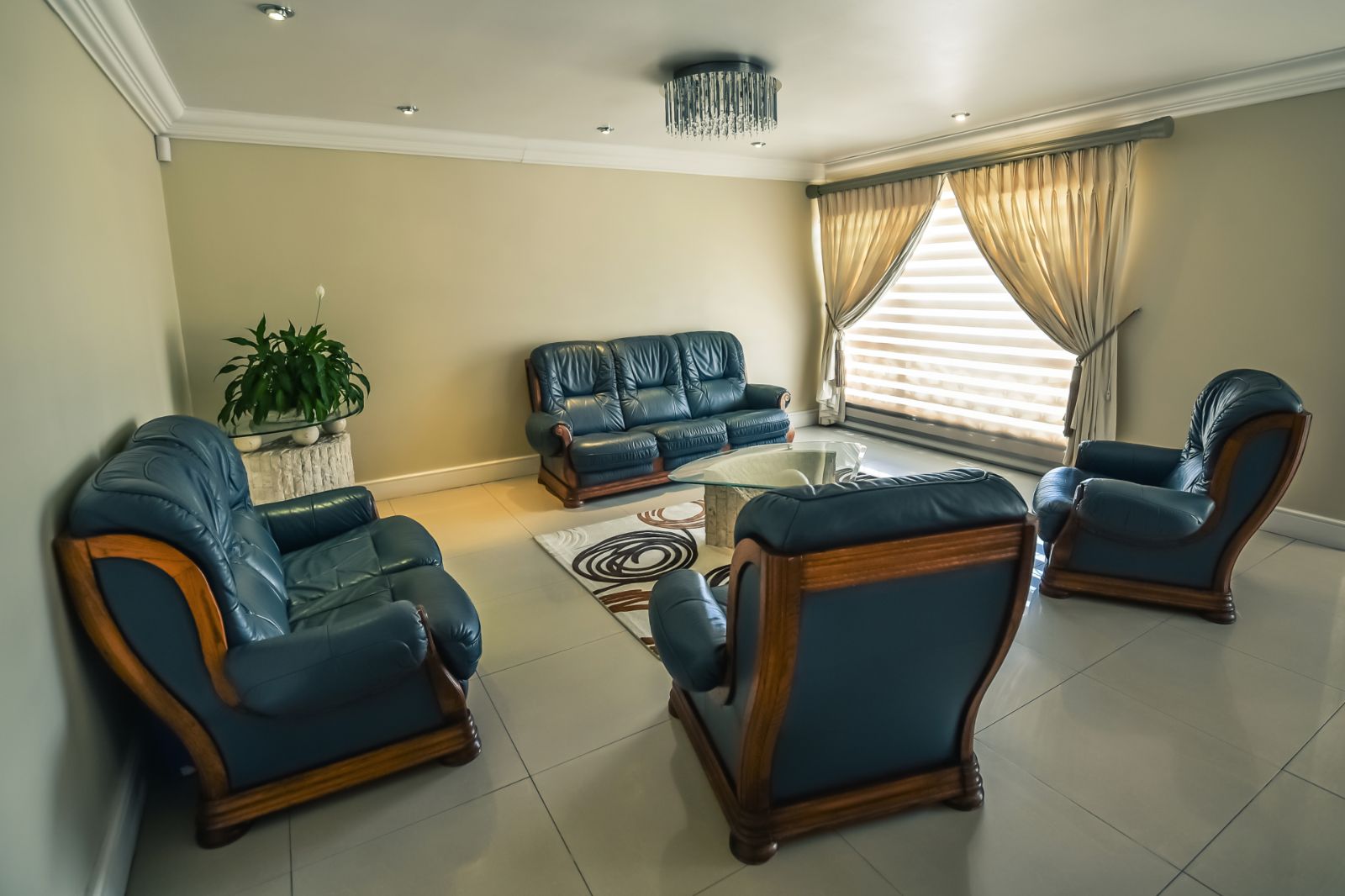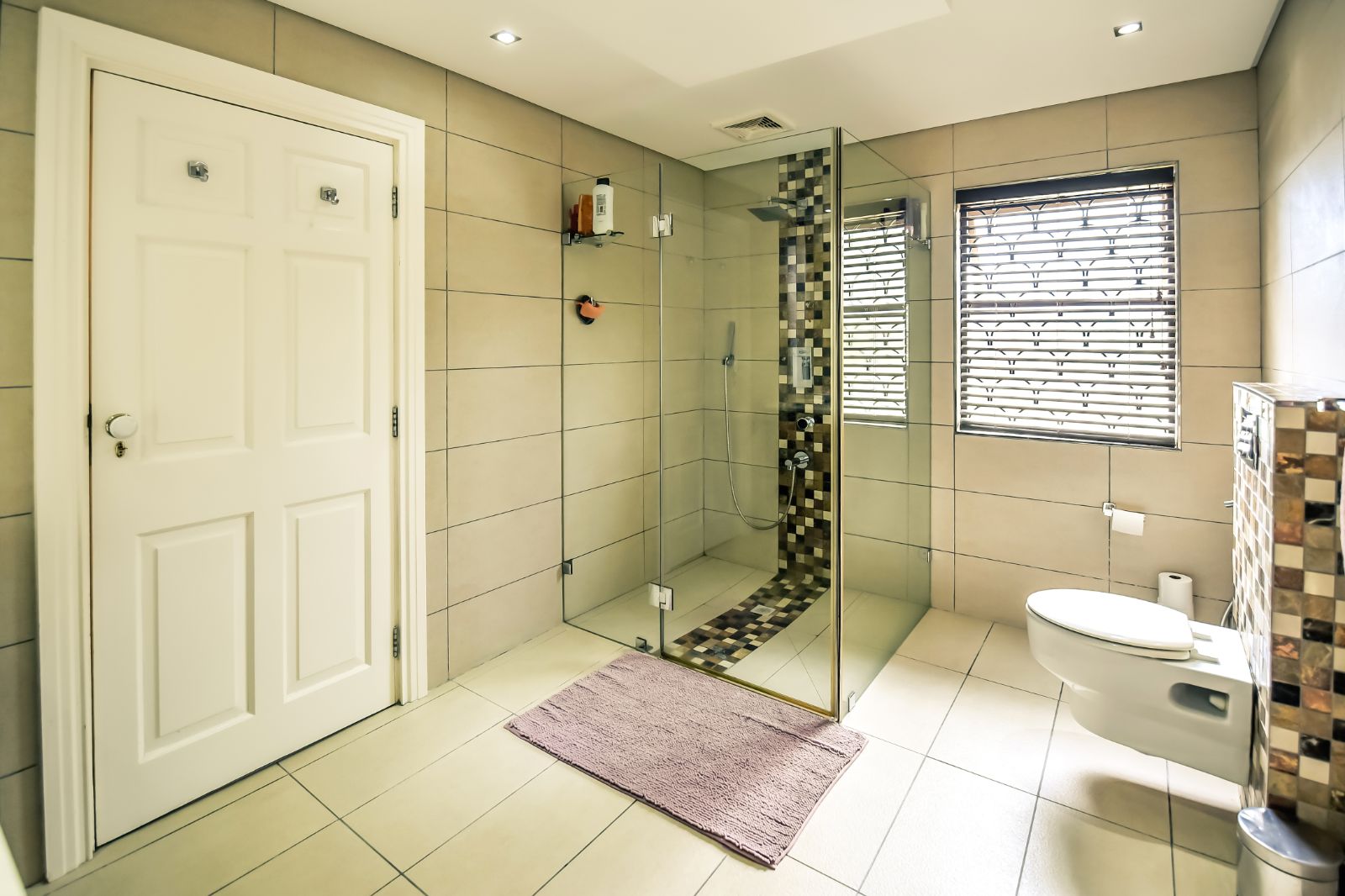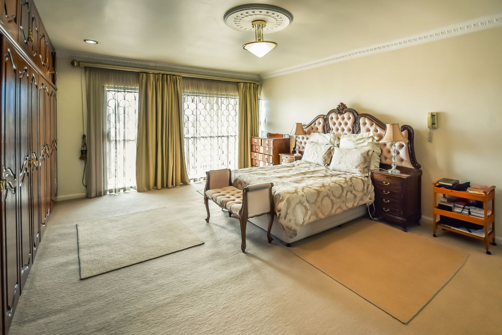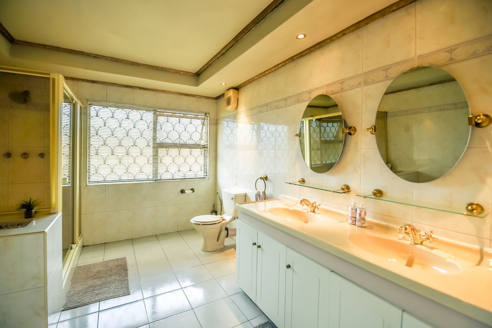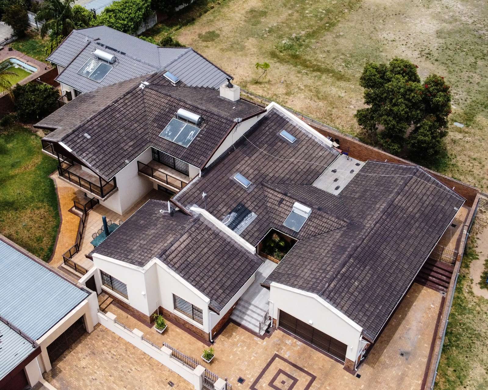 The house offers six bedrooms, of which 2 have en-suites. All the bedrooms have built-in cupboards finished in beech wood, embuia, and superwood, carpeted floors and air-conditioned for your comfort.