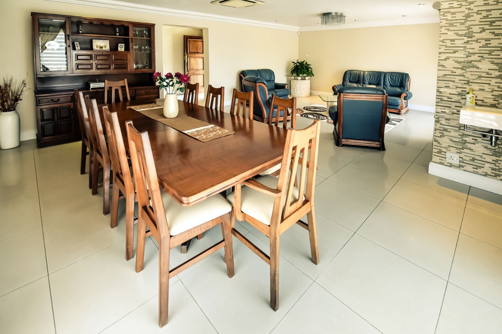 leads to a tiled entertainment area.