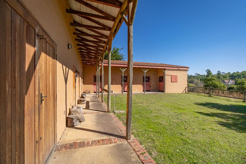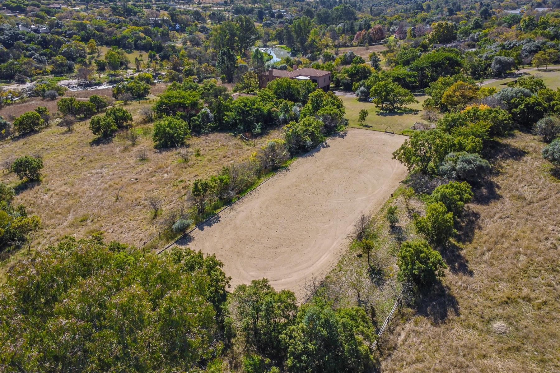 Four stables, a tack and feed room, a grass horse arena, a full-size sand dressage arena and multiple paddocks—ideal for serious riders or trainers.