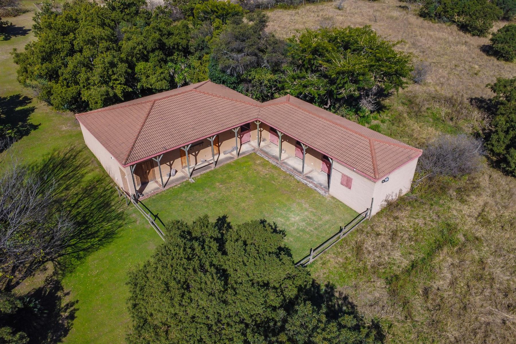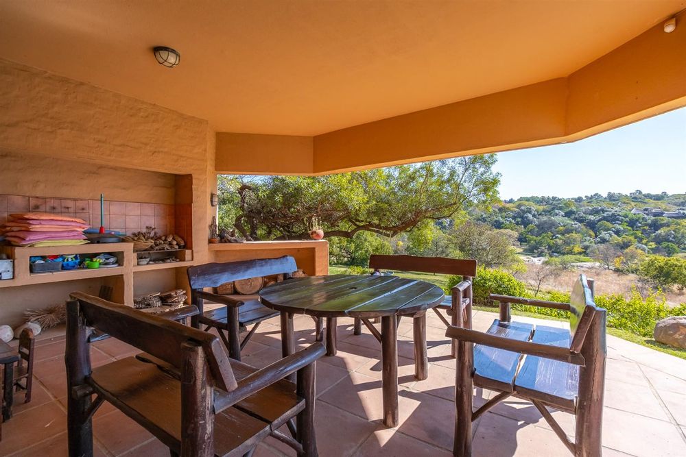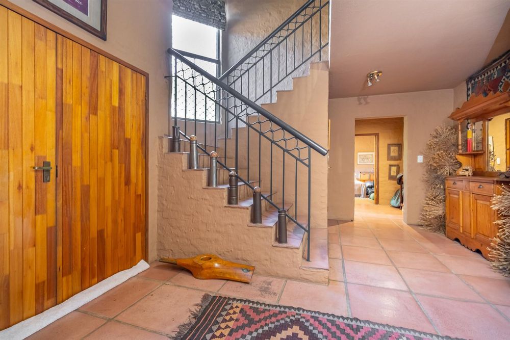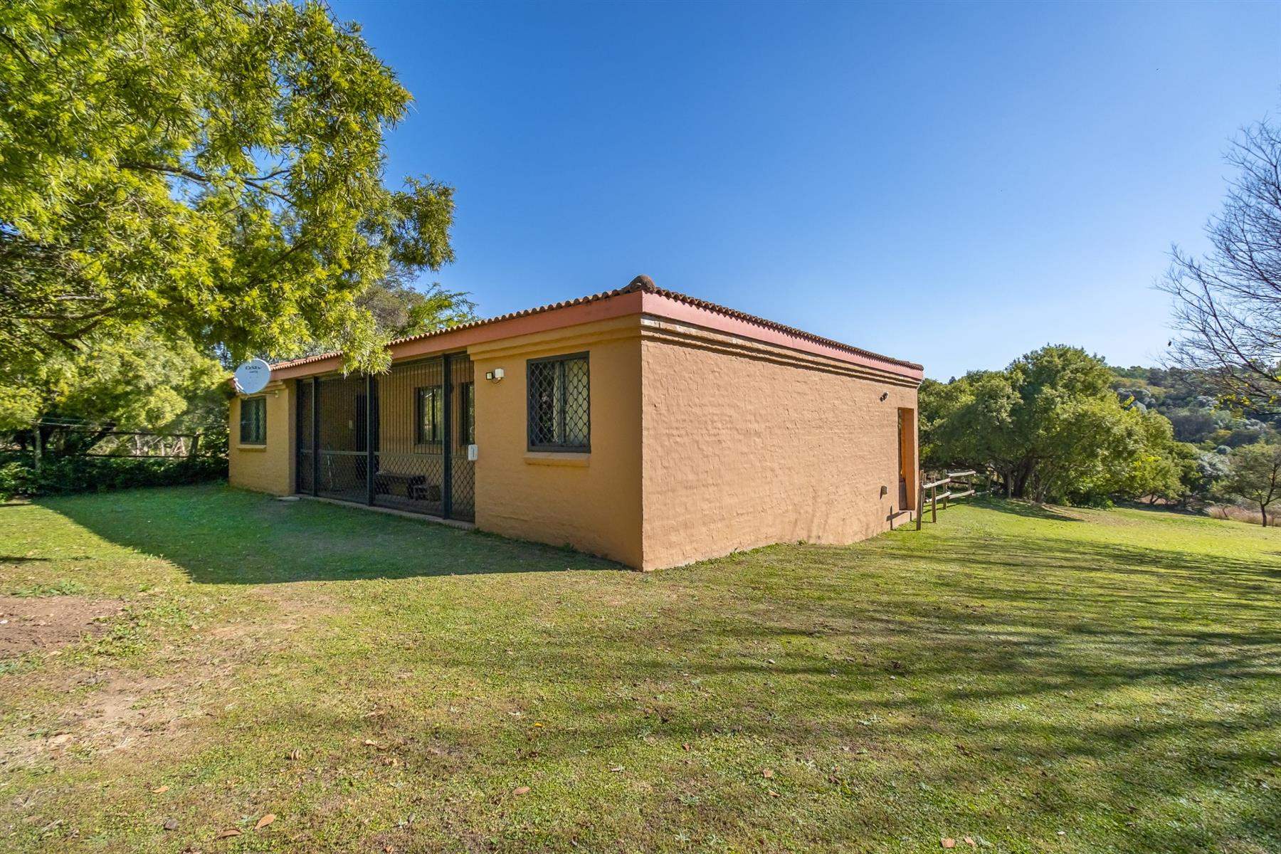 Practical systems and security are in place, including six solar panels with batteries and inverters, full solar power capability, roll-up security gates, burglar bars on all doors and windows, perimeter beams and regular security patrols.