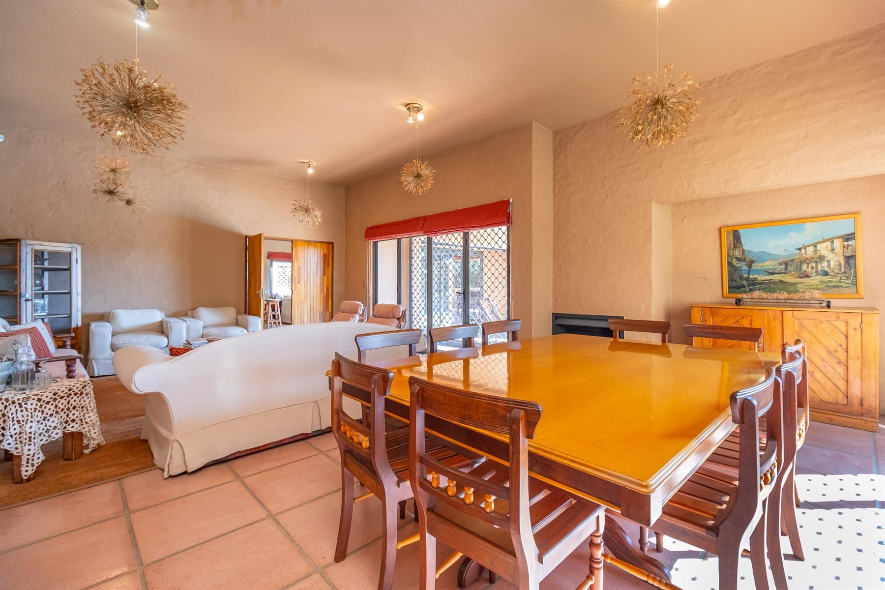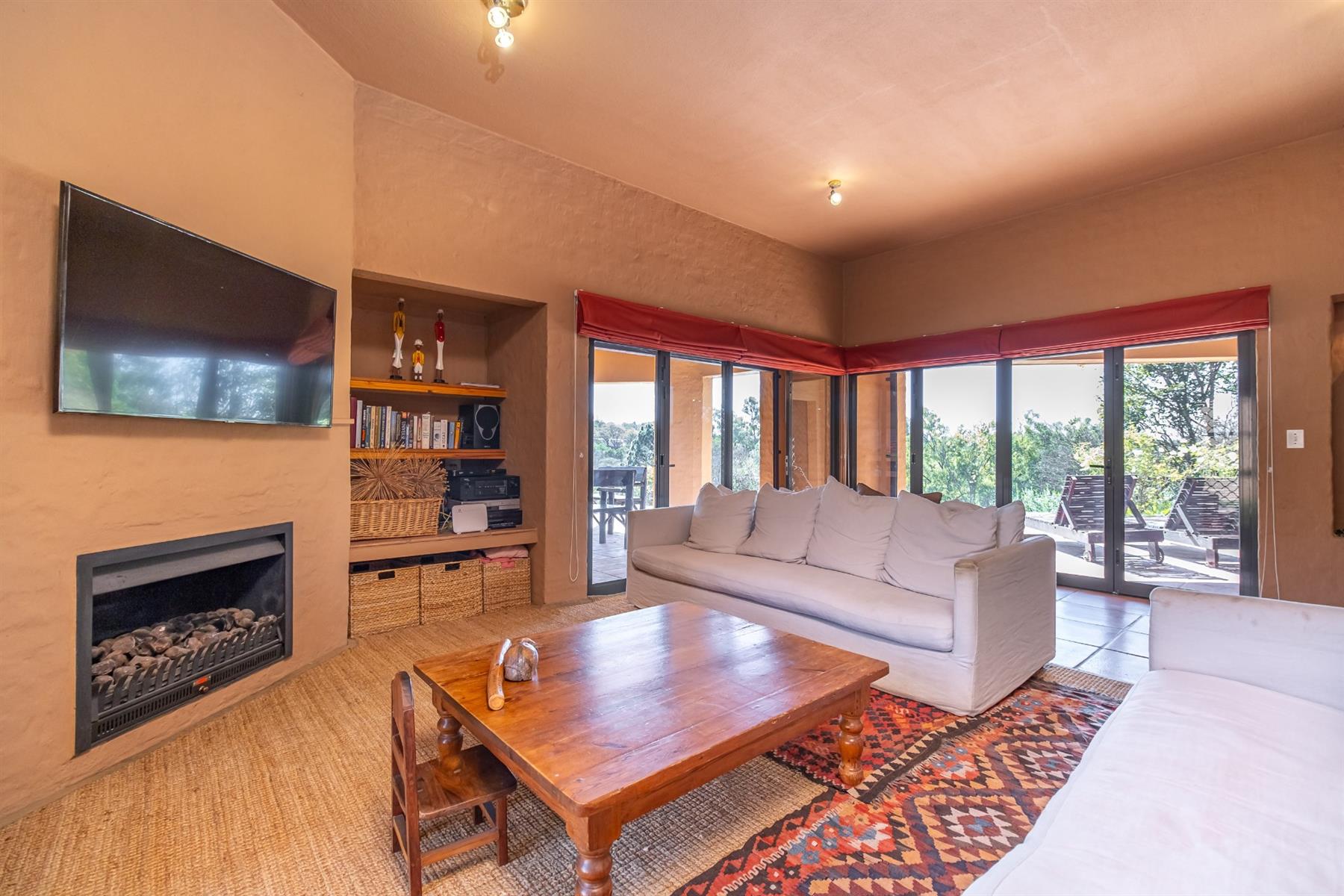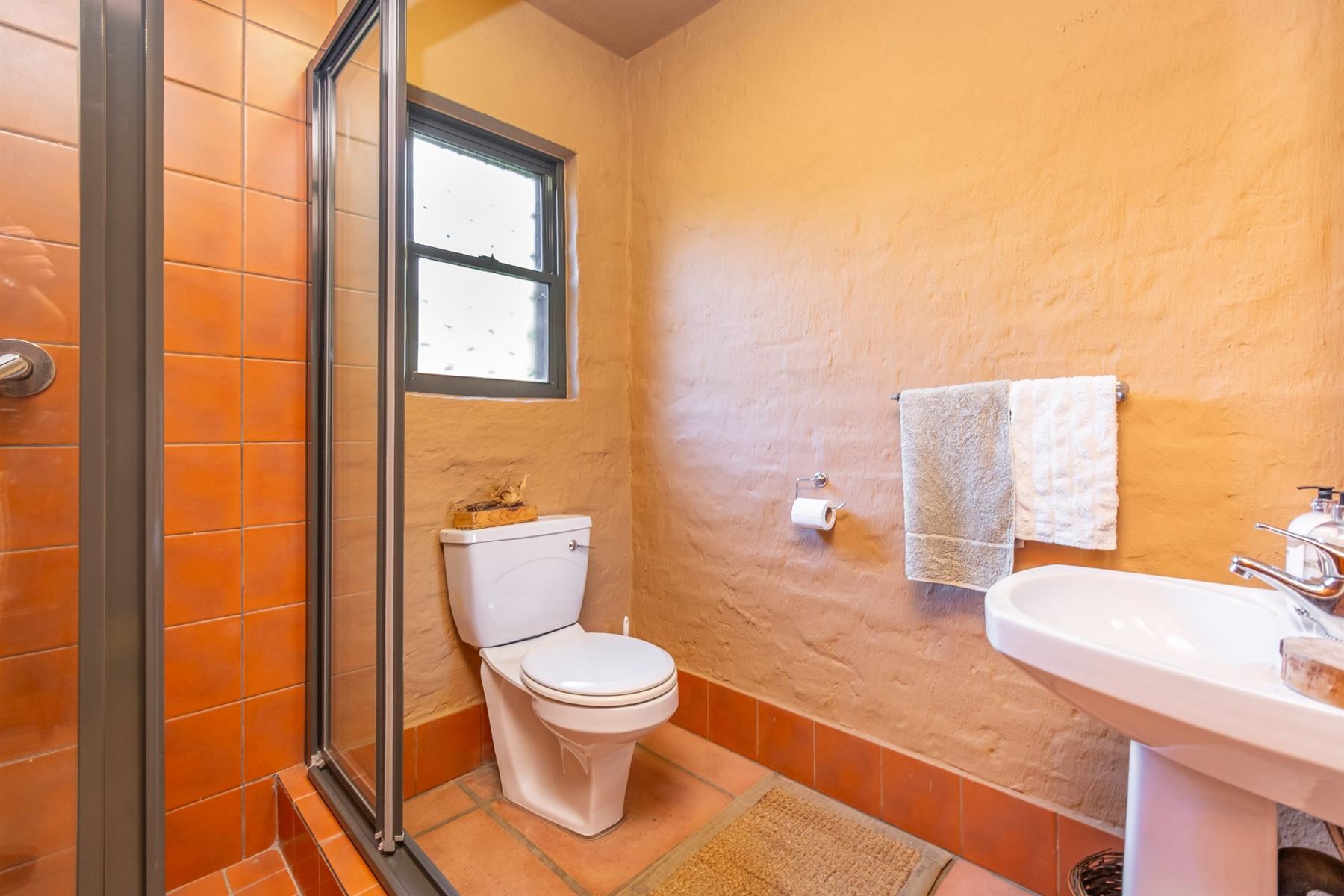 Practical systems and security are in place, including six solar panels with batteries and inverters, full solar power capability, roll-up security gates, burglar bars on all doors and windows, perimeter beams and regular security patrols.