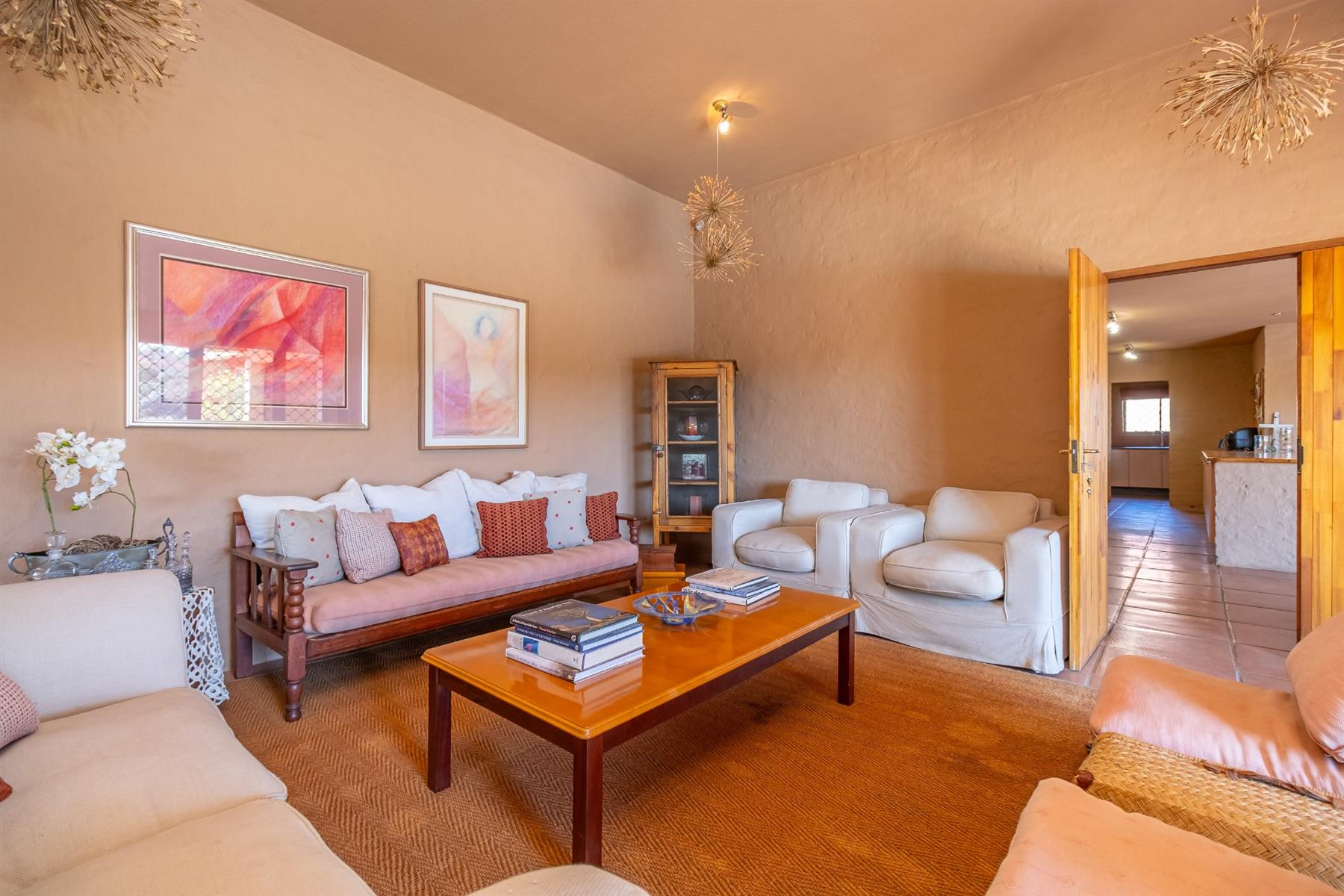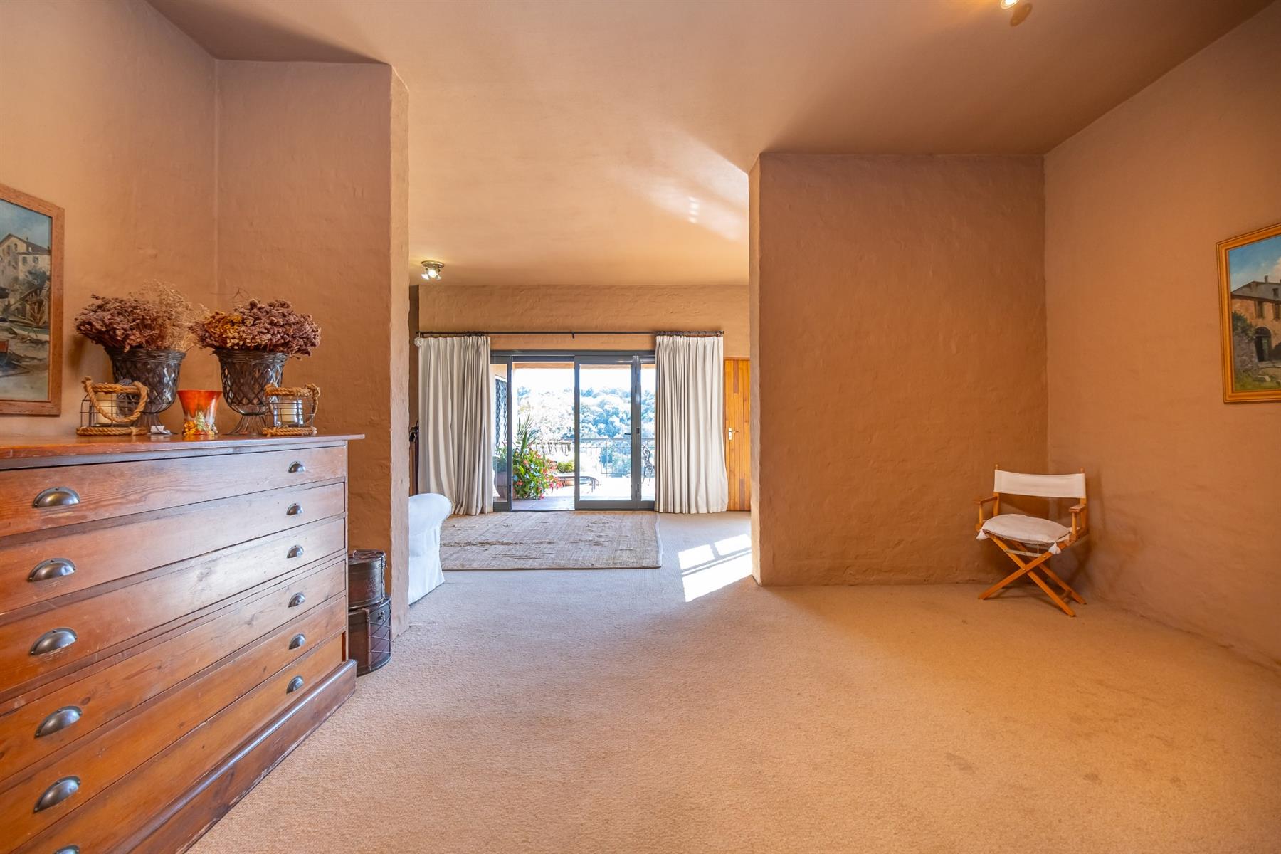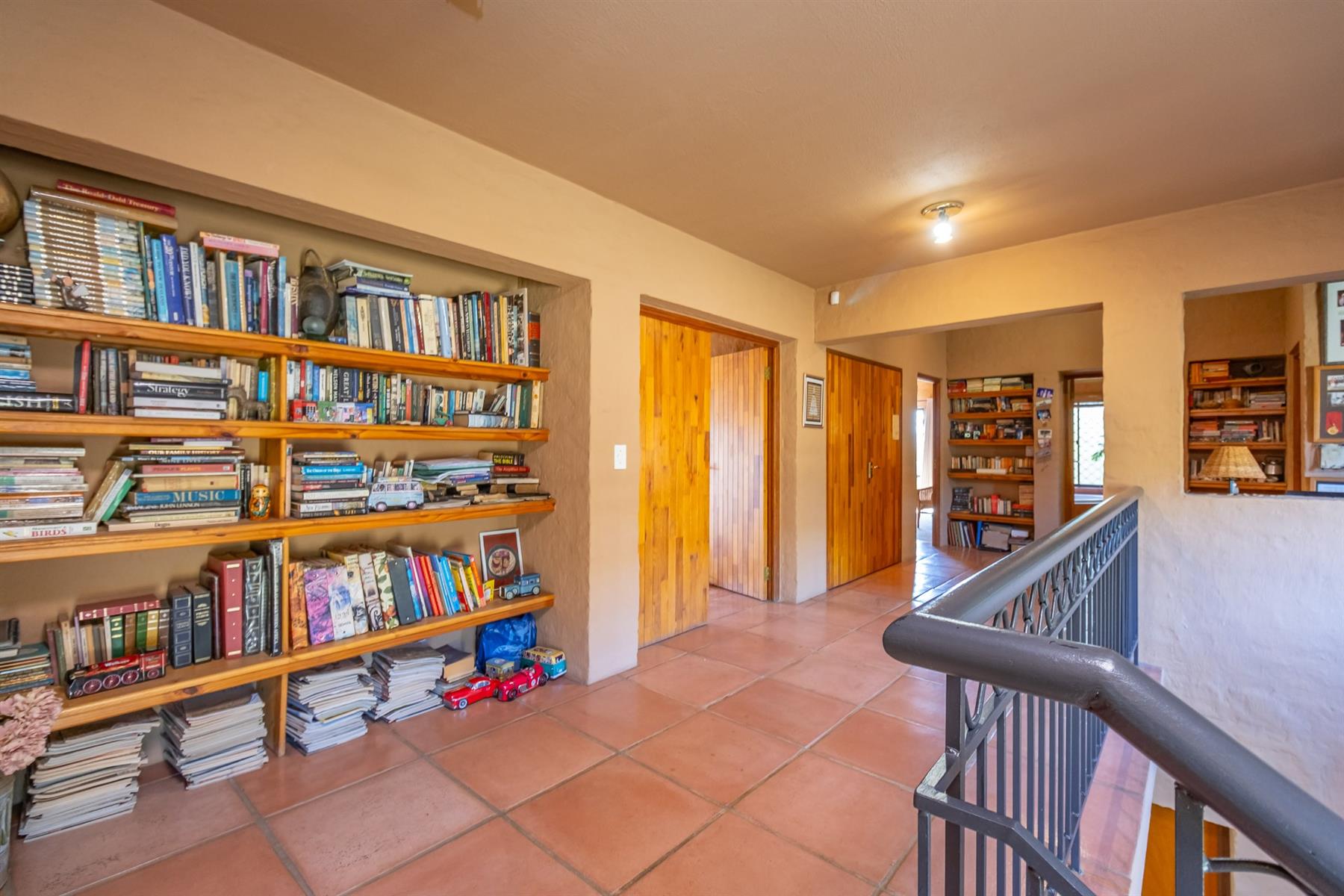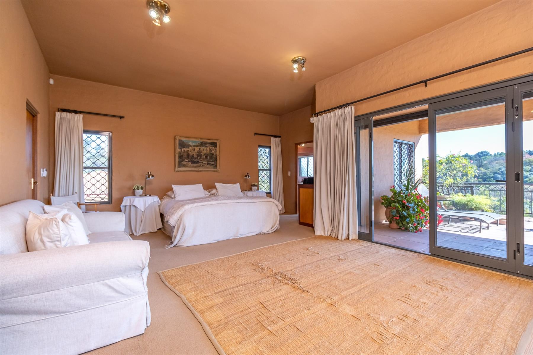The main home features four generous bedrooms, three bathrooms, two comfortable lounges and a covered patio for outdoor entertaining. The guest suite is downstairs. A large study on the landing creates a peaceful workspace, and the well-equipped kitchen includes a scullery and a walk-in pantry. Every upstairs bedroom and the study open onto private balconies that take full advantage of the scenic outlook.
