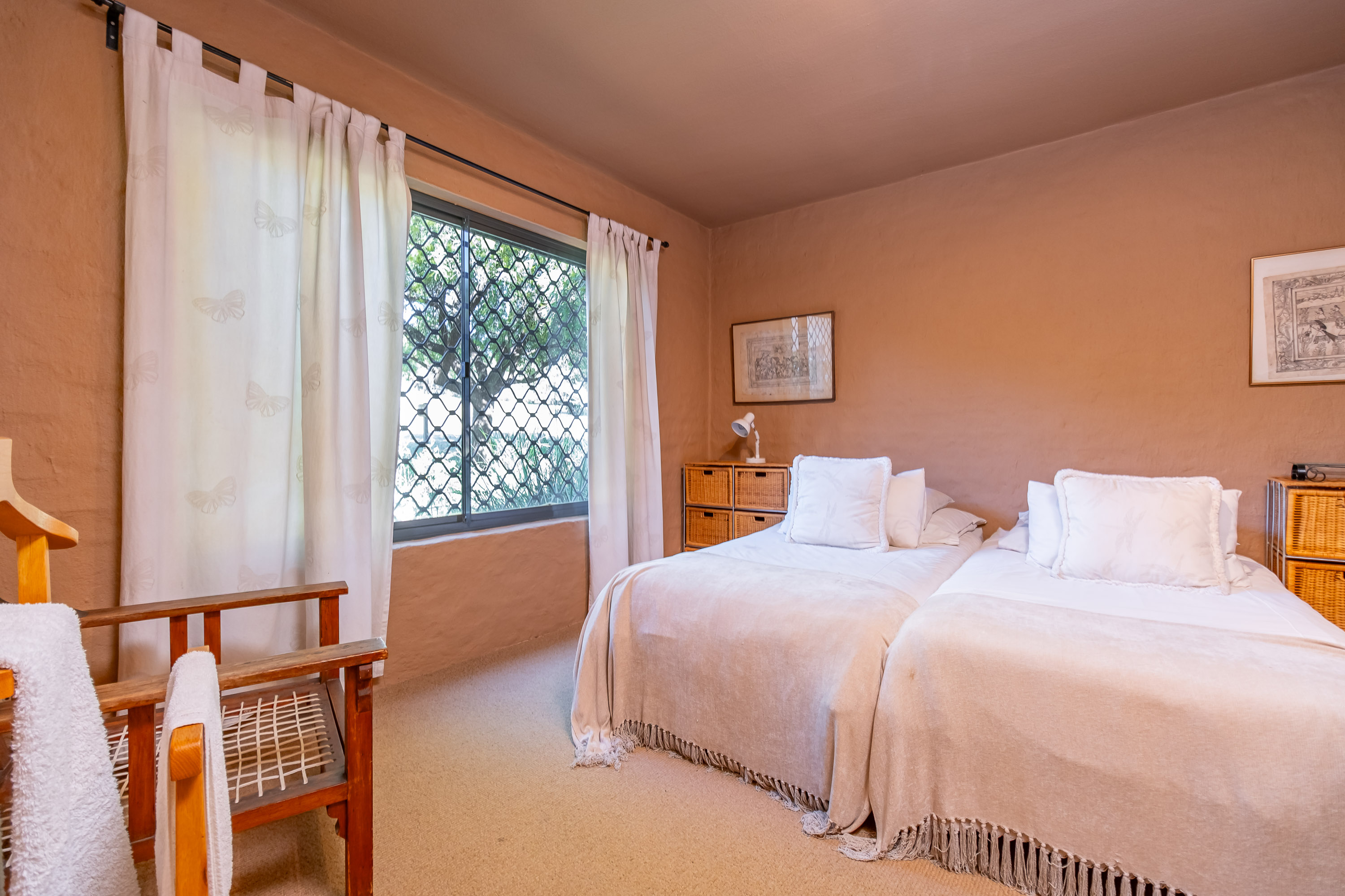 Positioned in the picturesque Chartwell area with sought-after river frontage, this property offers an unparalleled opportunity for the discerning buyer. The property boasts a stately main residence featuring four spacious bedrooms (one downstairs), three bathrooms, and two inviting lounges, complemented by a covered patio perfect for relaxed outdoor living. A generous study area on the landing provides an ideal workspace, while the well-appointed kitchen includes a scullery and a walk-in pantry for added convenience. Every upstairs bedroom and the study open onto private balconies, enhancing the home's connection to its scenic surroundings. Additional features include a pool, a storeroom/wine cellar, three garages, and a carport. 6 x Solar panels with accompanying infrastructures of batteries and inverters, 150m of paved driveway and well-established treed garden with beautiful views down the valley. Security is paramount, with full solar power, roll-up security gates and burglar bars for all doors and windows, perimeter beams, and regular patrols by security vehicles. For equestrian enthusiasts, the property is dedicated to equestrian facilities, featuring four stables, a tack and feed room, and a grass horse arena. a full-size sand dressage arena and ample paddocks, making it an exceptional offering for horse lovers. Staff accommodation comprises three bedrooms, a kitchen, a lounge, and a bathroom. The property spans an impressive 6,2113 hectares, and provides a rare blend of refined living, security, and equestrian excellence in a tranquil yet accessible location.