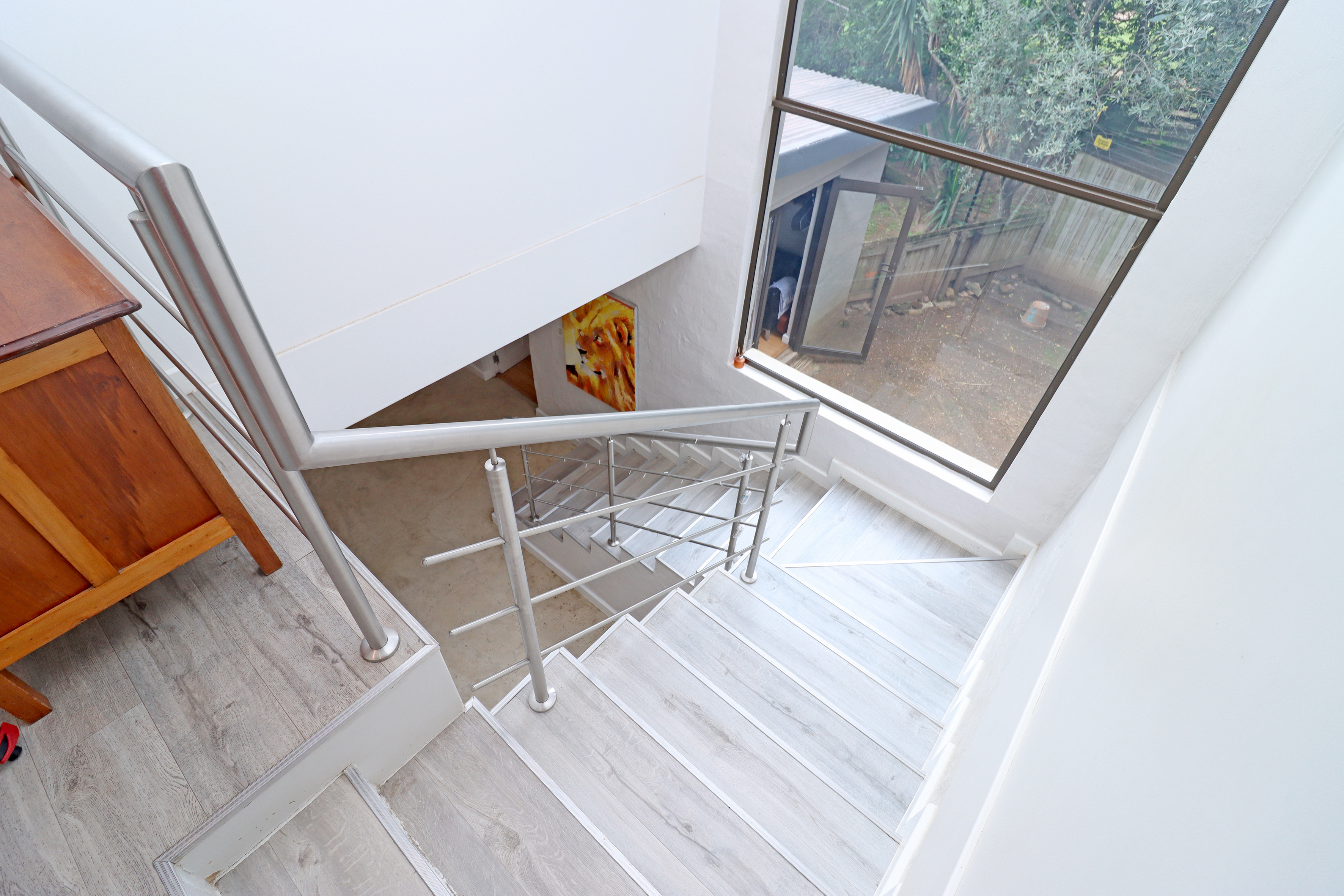 The home also includes a spacious TV room, large enough to accommodate a lounge and pool table, with sliding doors to the outside and its own guest loo. A striking double-volume staircase with storage underneath connects the levels.