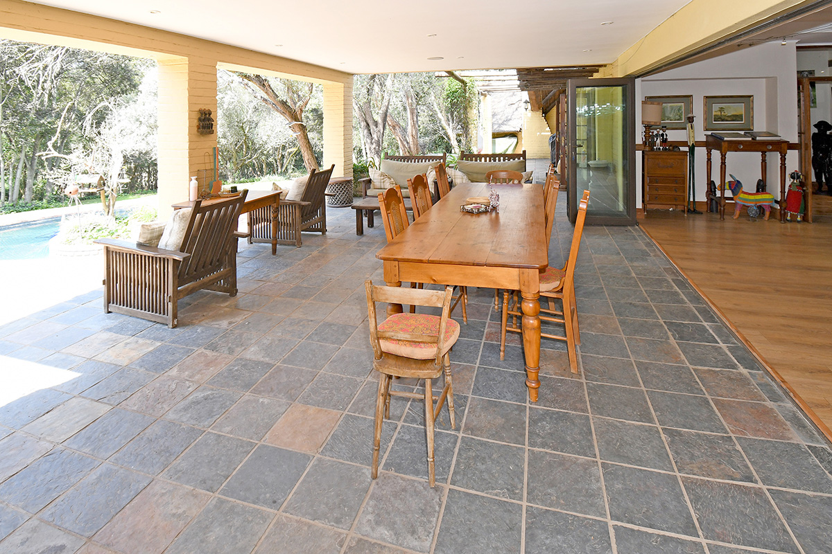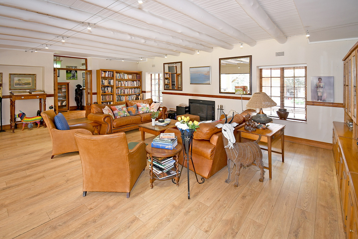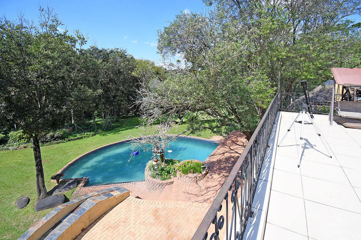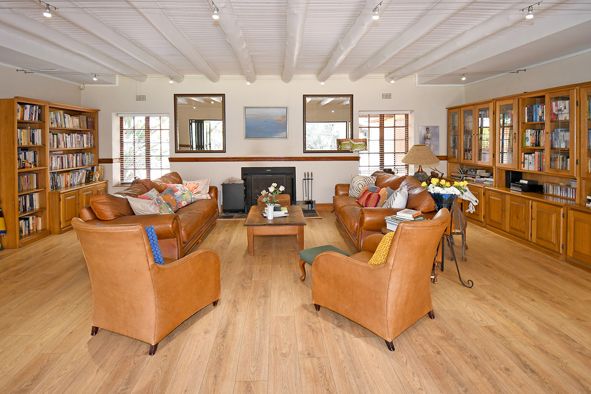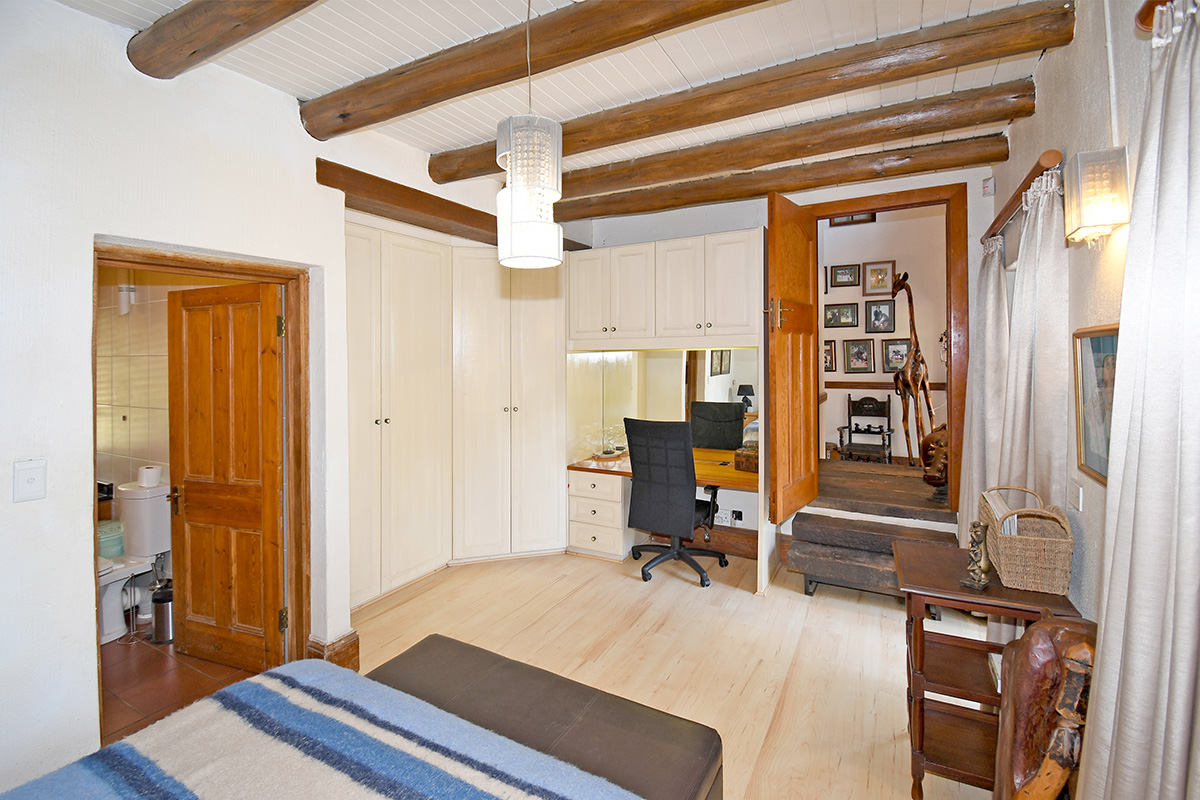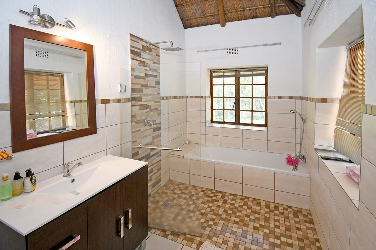 This elegant double-storey thatch home is nestled along the serene banks of the Klein Jukskei River, offering a rare blend of rural charm and tranquil living. Set on 3.7 hectares of lush, tree-filled gardens, the property features rolling lawns, established trees, and visits from resident wildlife, creating a peaceful countryside atmosphere just minutes from the city.