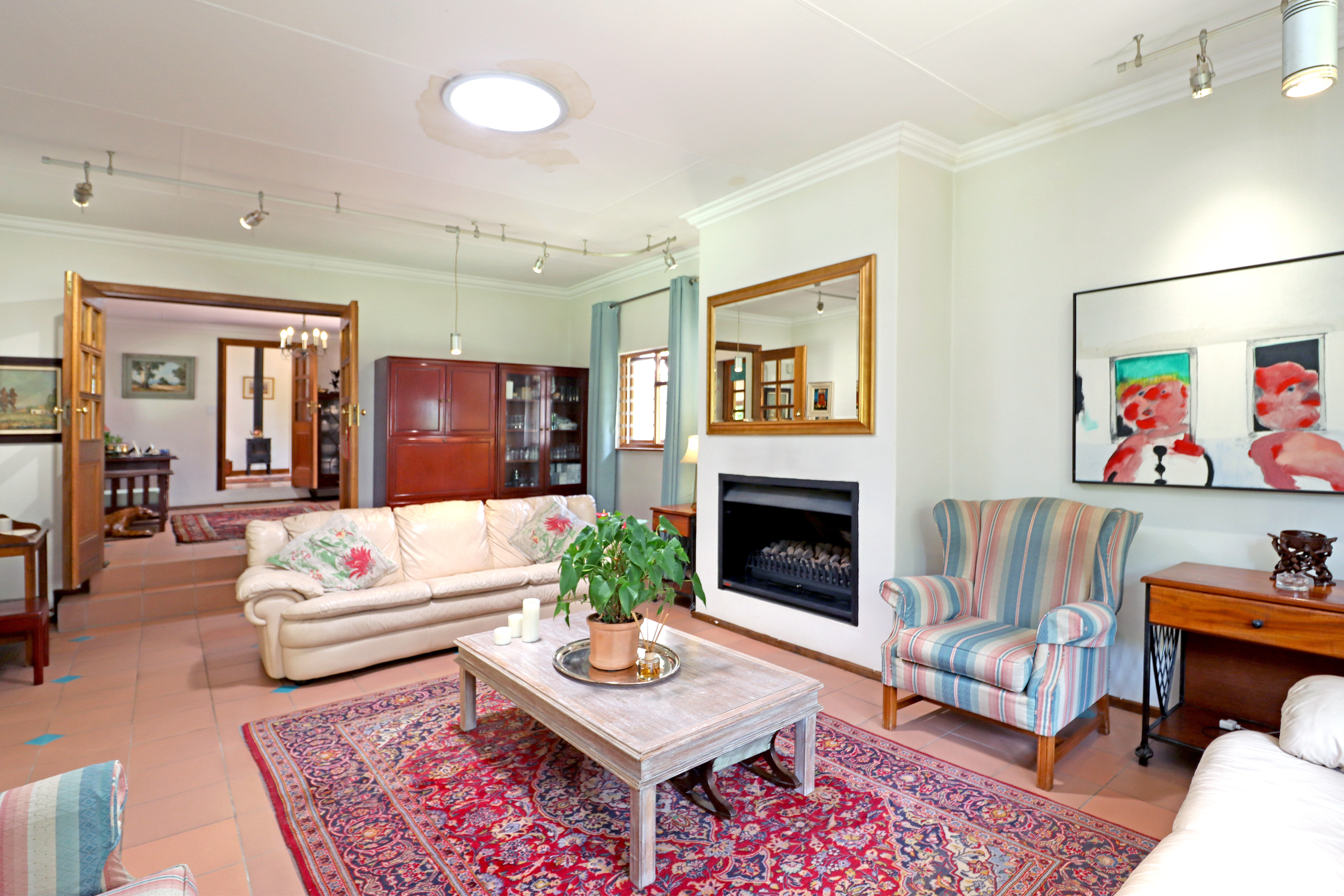 Situated within the secure, boomed-off area of Chartwell North Estates, just a short distance off tar, a paved driveway winds through indigenous trees, leading you to a beautifully maintained single-story family home.