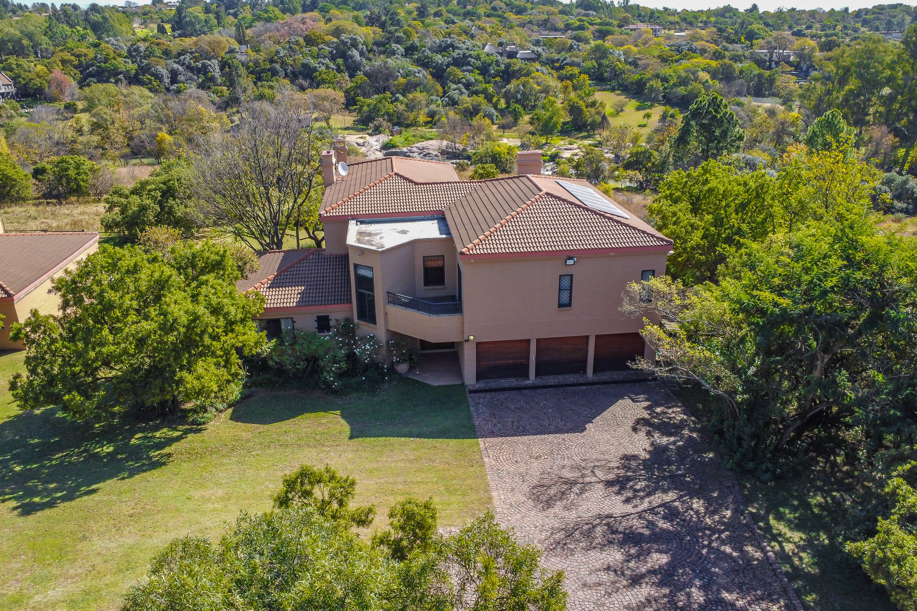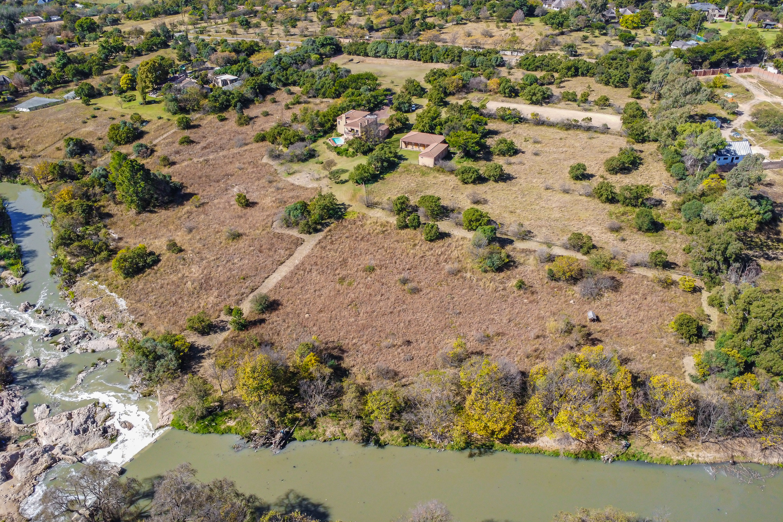 Positioned in the picturesque Chartwell area with sought-after river frontage, this property offers an unparalleled opportunity for the discerning buyer. The property boasts a stately main residence featuring four spacious bedrooms (one downstairs), three bathrooms, and two inviting lounges, complemented by a covered patio perfect for relaxed outdoor living. A generous study area on the landing provides an ideal workspace, while the well-appointed kitchen includes a scullery and a walk-in pantry for added convenience. Every upstairs bedroom and the study open onto private balconies, enhancing the home's connection to its scenic surroundings. Additional features include a pool, a storeroom/wine cellar, three garages, and a carport. 6 x Solar panels with accompanying infrastructures of batteries and inverters, 150m of paved driveway and well-established treed garden with beautiful views down the valley. Security is paramount, with full solar power, roll-up security gates and burglar bars for all doors and windows, perimeter beams, and regular patrols by security vehicles. For equestrian enthusiasts, the property is dedicated to equestrian facilities, featuring four stables, a tack and feed room, and a grass horse arena. a full-size sand dressage arena and ample paddocks, making it an exceptional offering for horse lovers. Staff accommodation comprises three bedrooms, a kitchen, a lounge, and a bathroom. The property spans an impressive 6,2113 hectares, and provides a rare blend of refined living, security, and equestrian excellence in a tranquil yet accessible location.