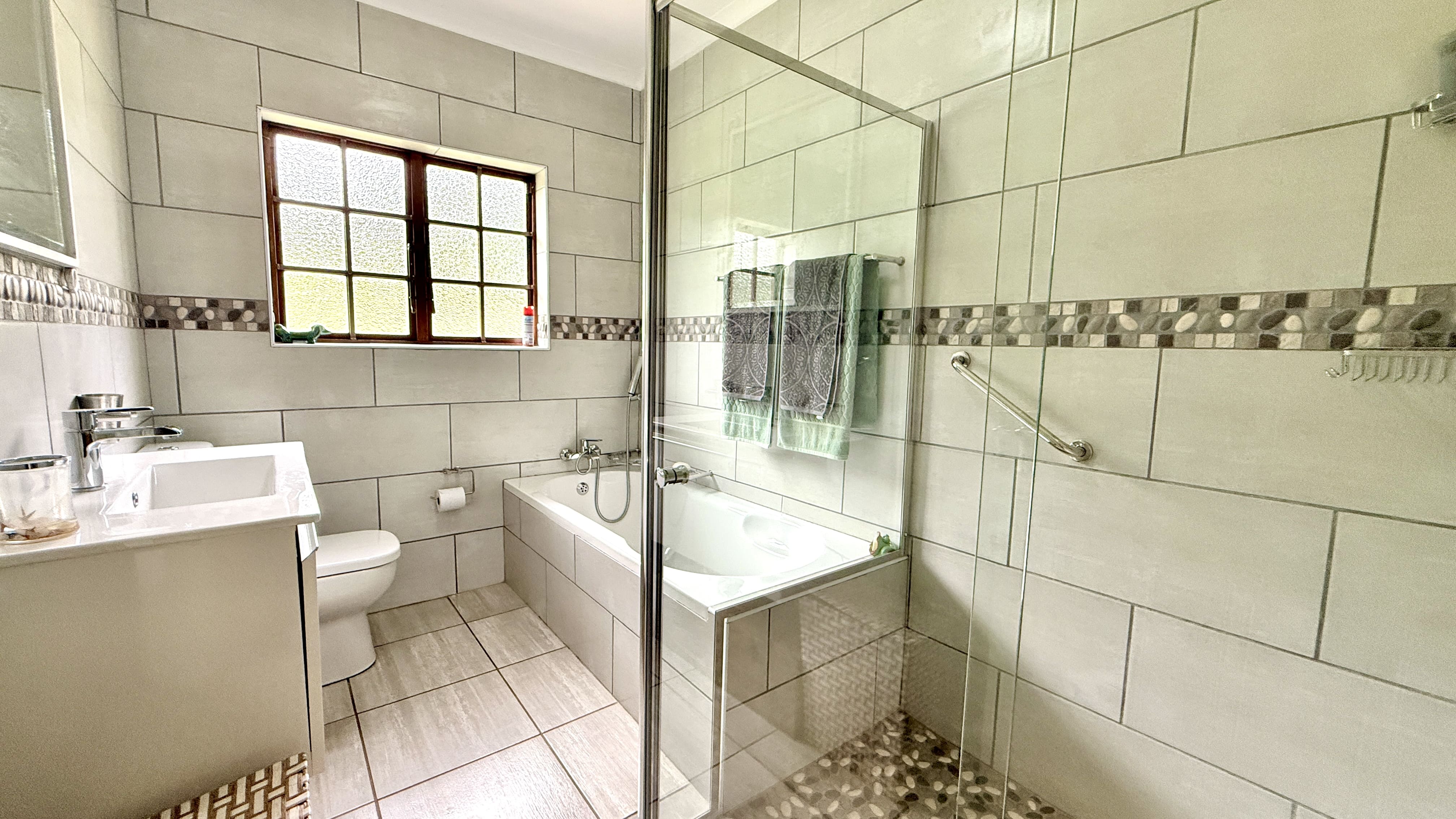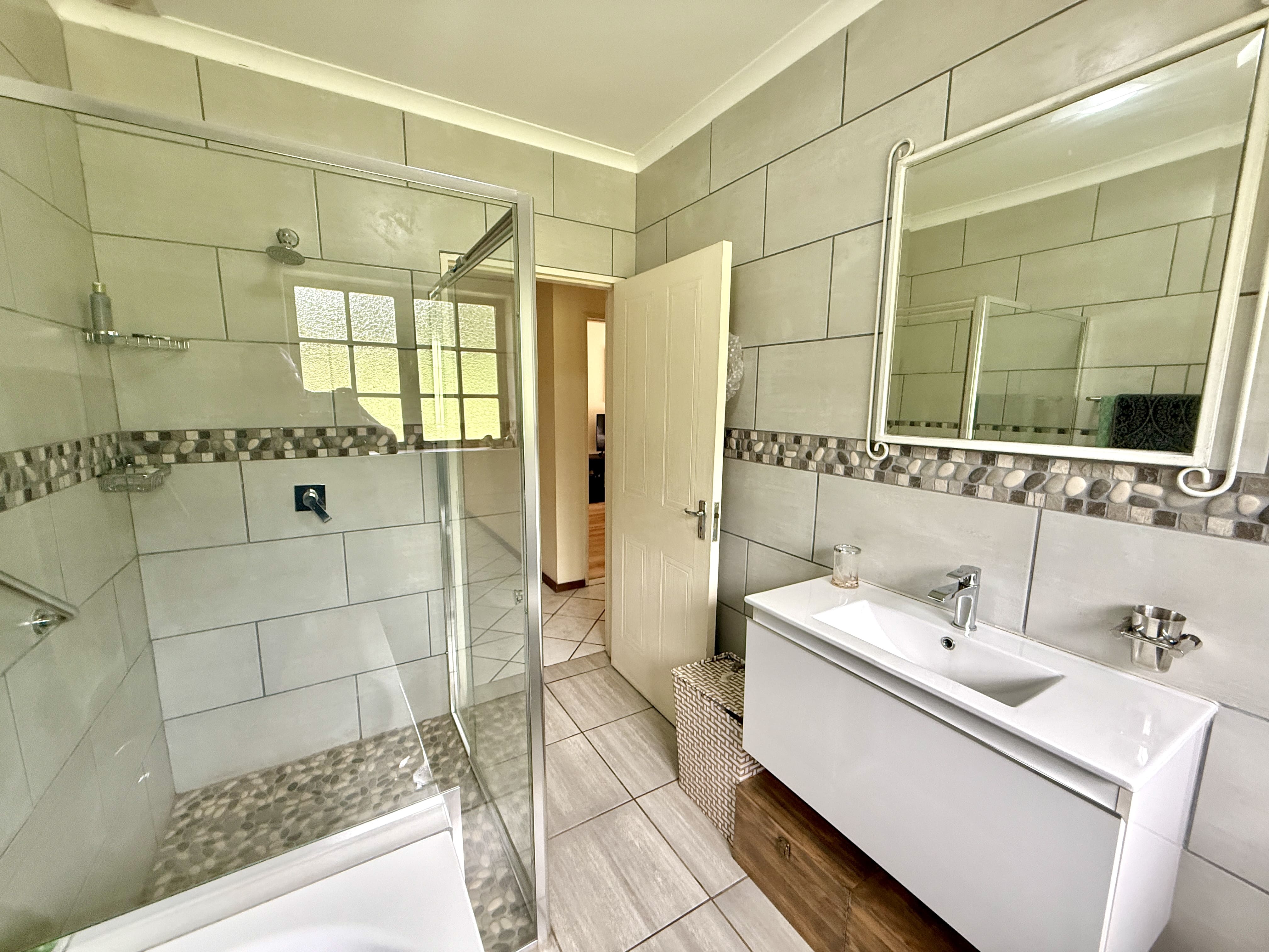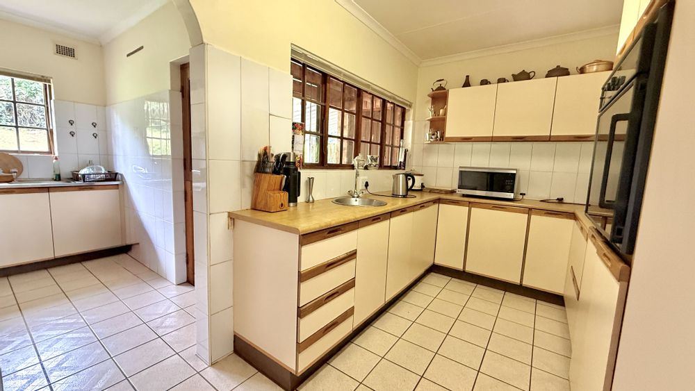 Inside, the main house is filled with natural light and offers multiple living spaces, including two lounges, a dining room, and a separate study, all providing flexibility for family living or working from home. The kitchen includes a separate scullery and laundry, ample built-in cupboards, and generous countertops, ensuring both practicality and comfort.