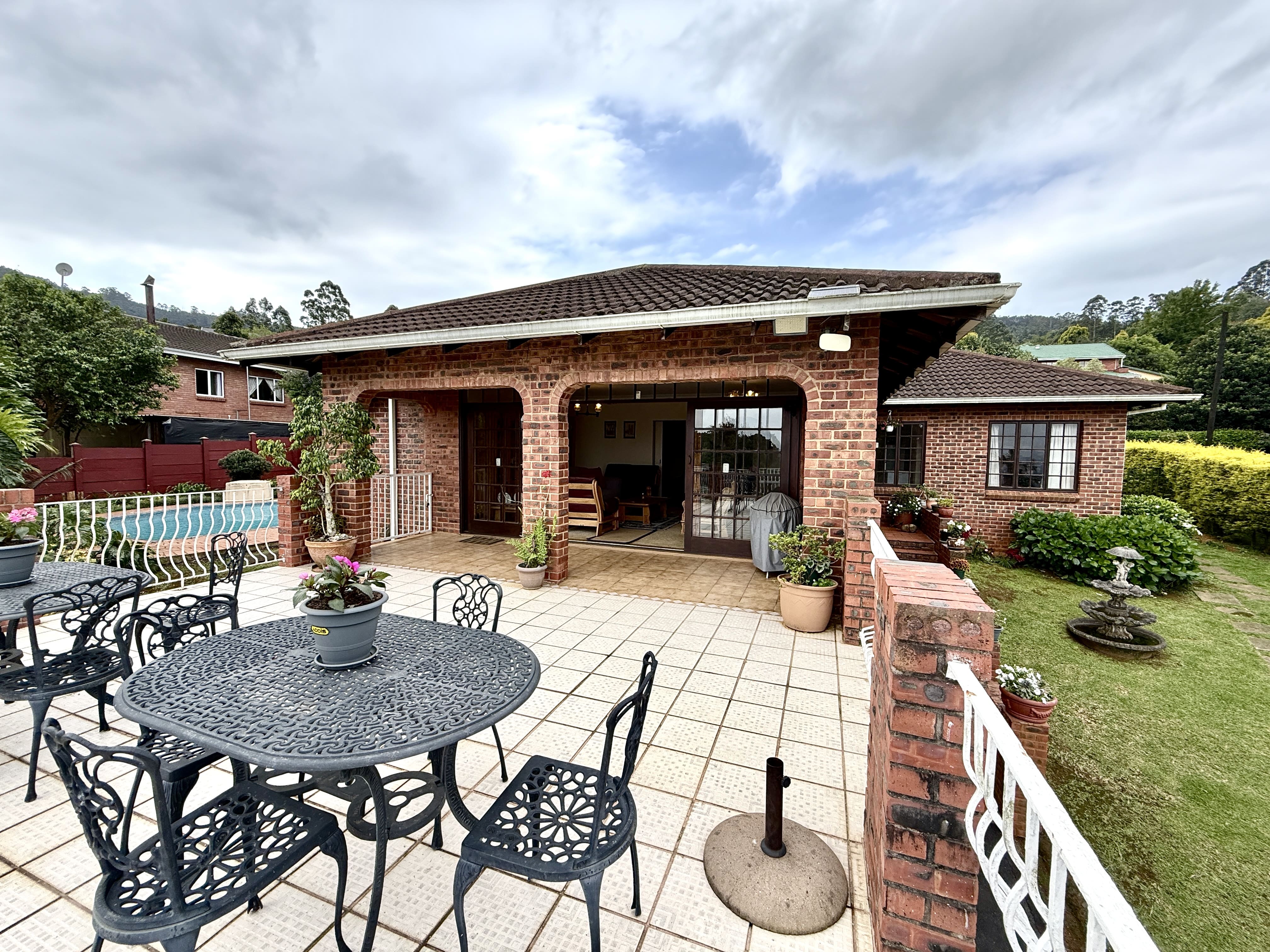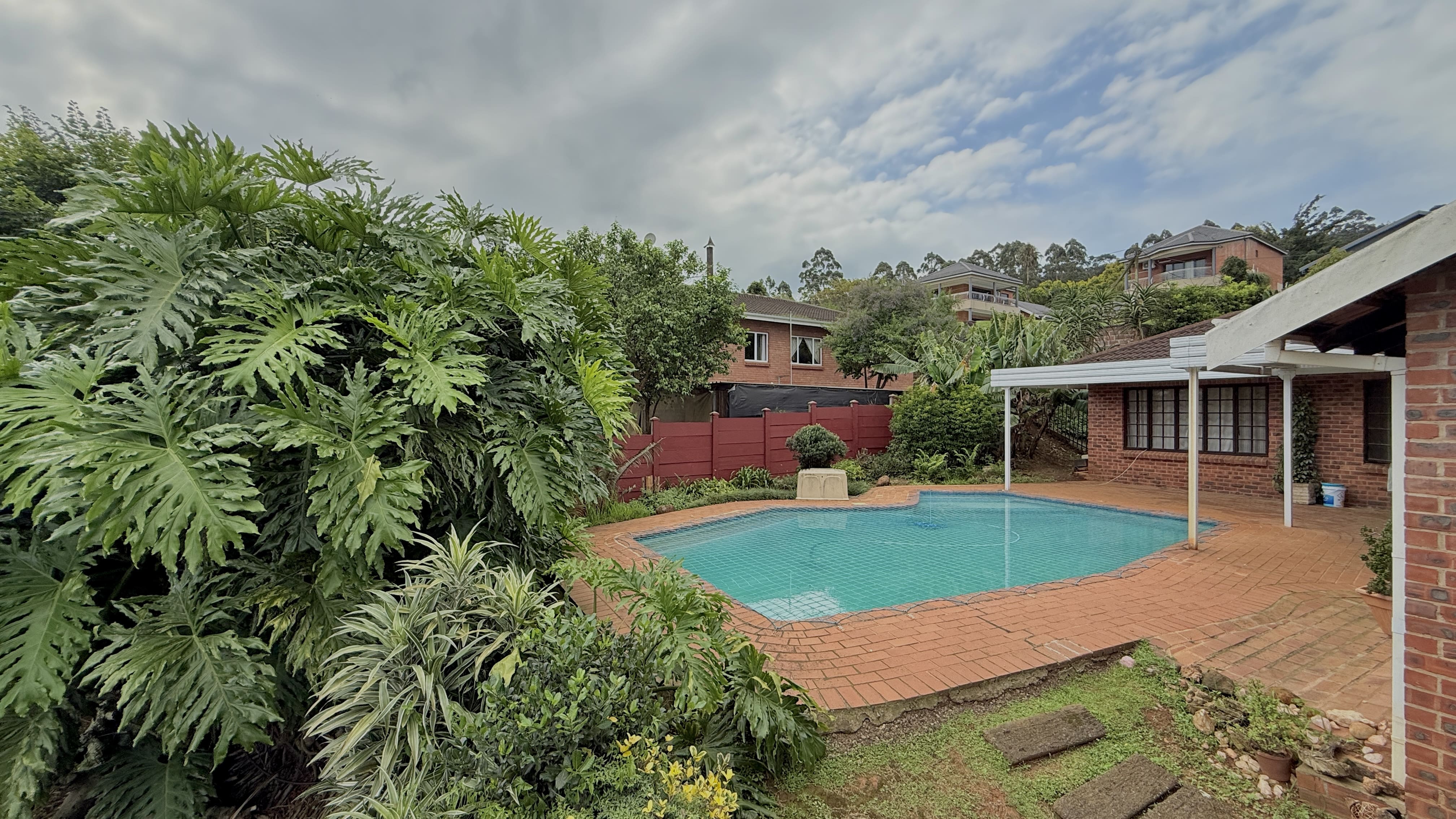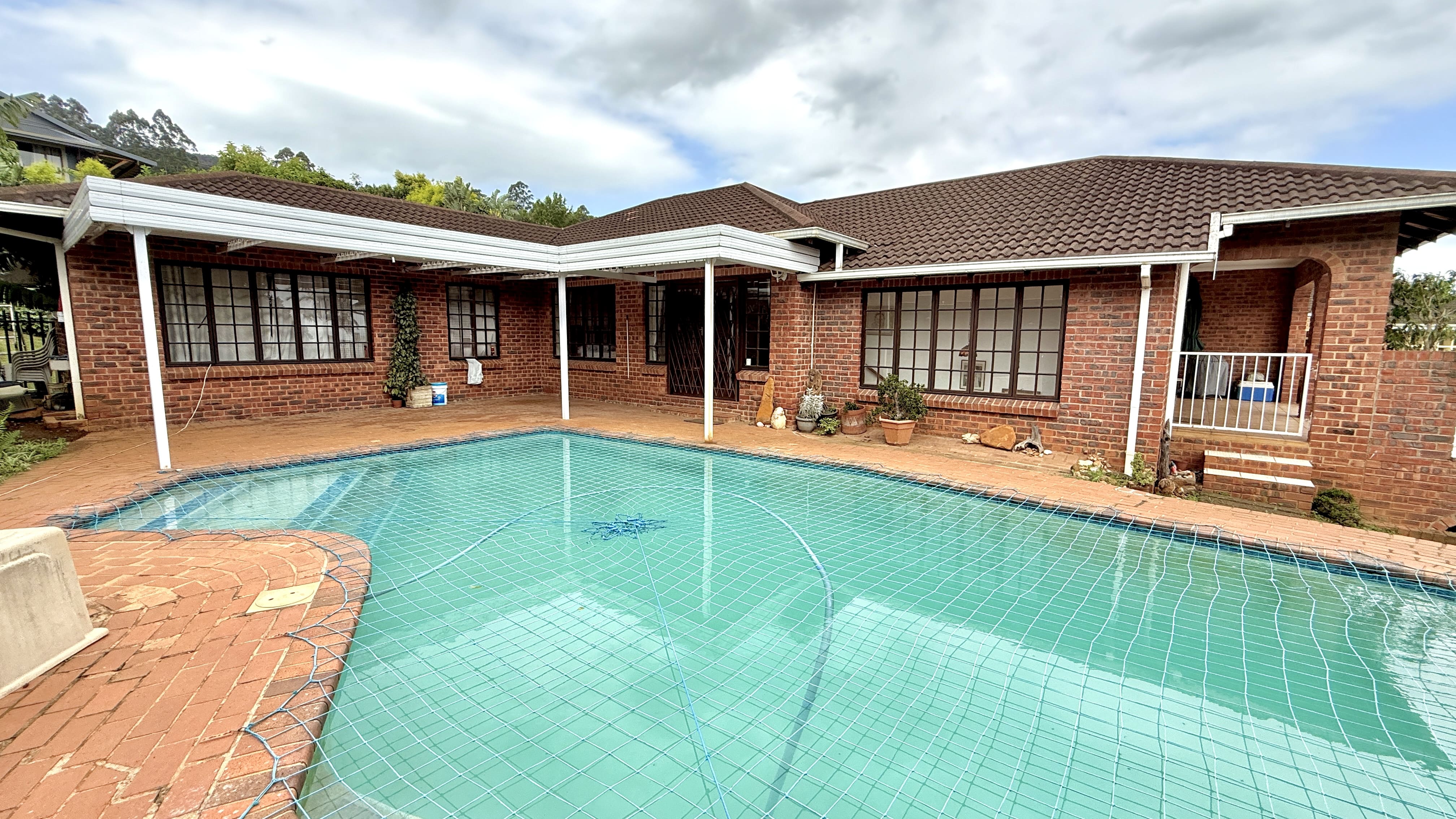 Set high atop Muswell Hill in a quiet, scenic neighbourhood, this well-established face-brick family home offers space, privacy, and panoramic views over Pietermaritzburg. Positioned within a large, beautifully maintained garden, the home features a spacious balcony, a covered patio, and an outdoor braai area with an adjustable louvered Chromadek roof for perfect light control, ideal for year-round entertaining. The patio flows seamlessly out to the swimming pool, creating an inviting outdoor living environment.
