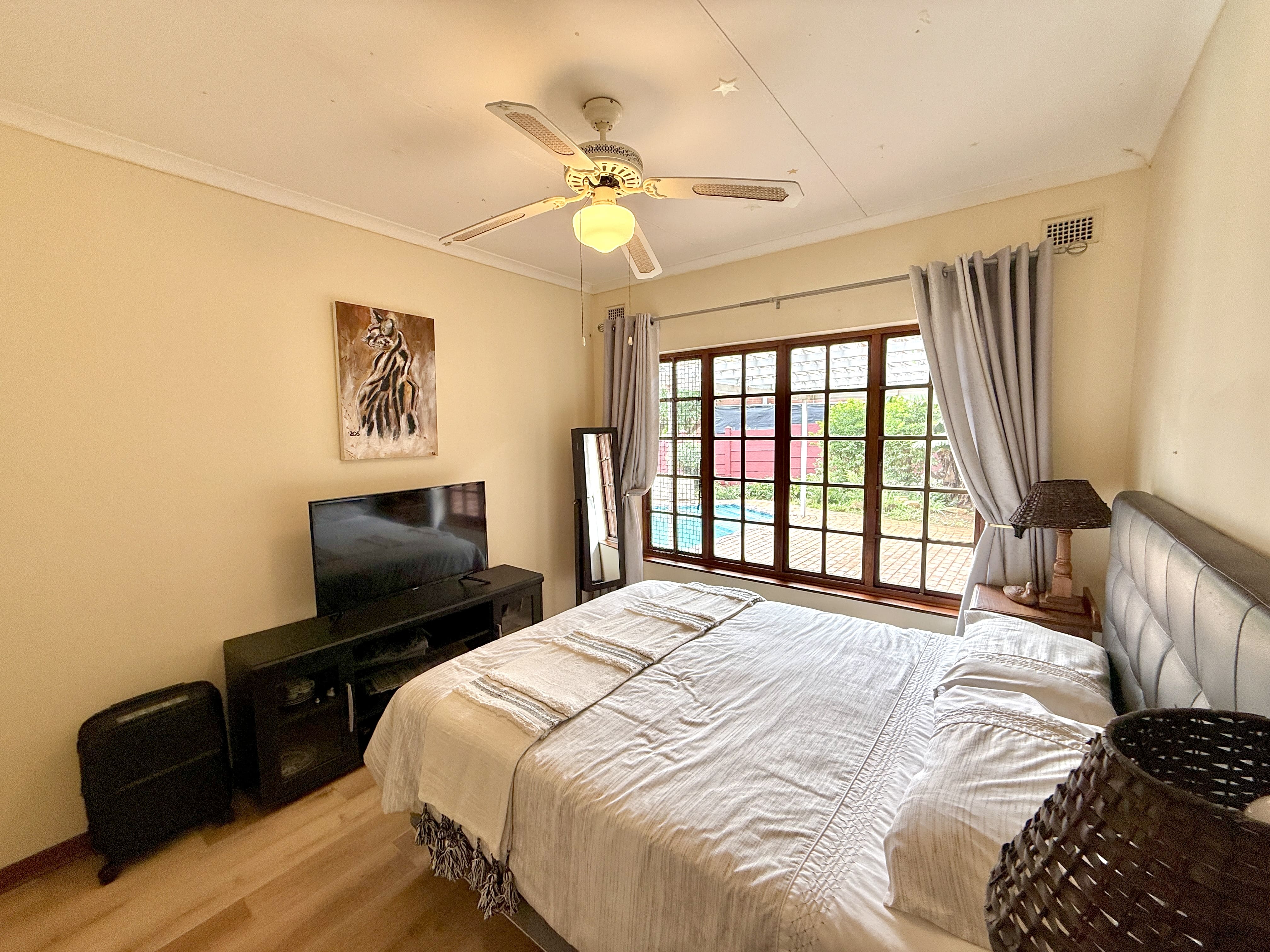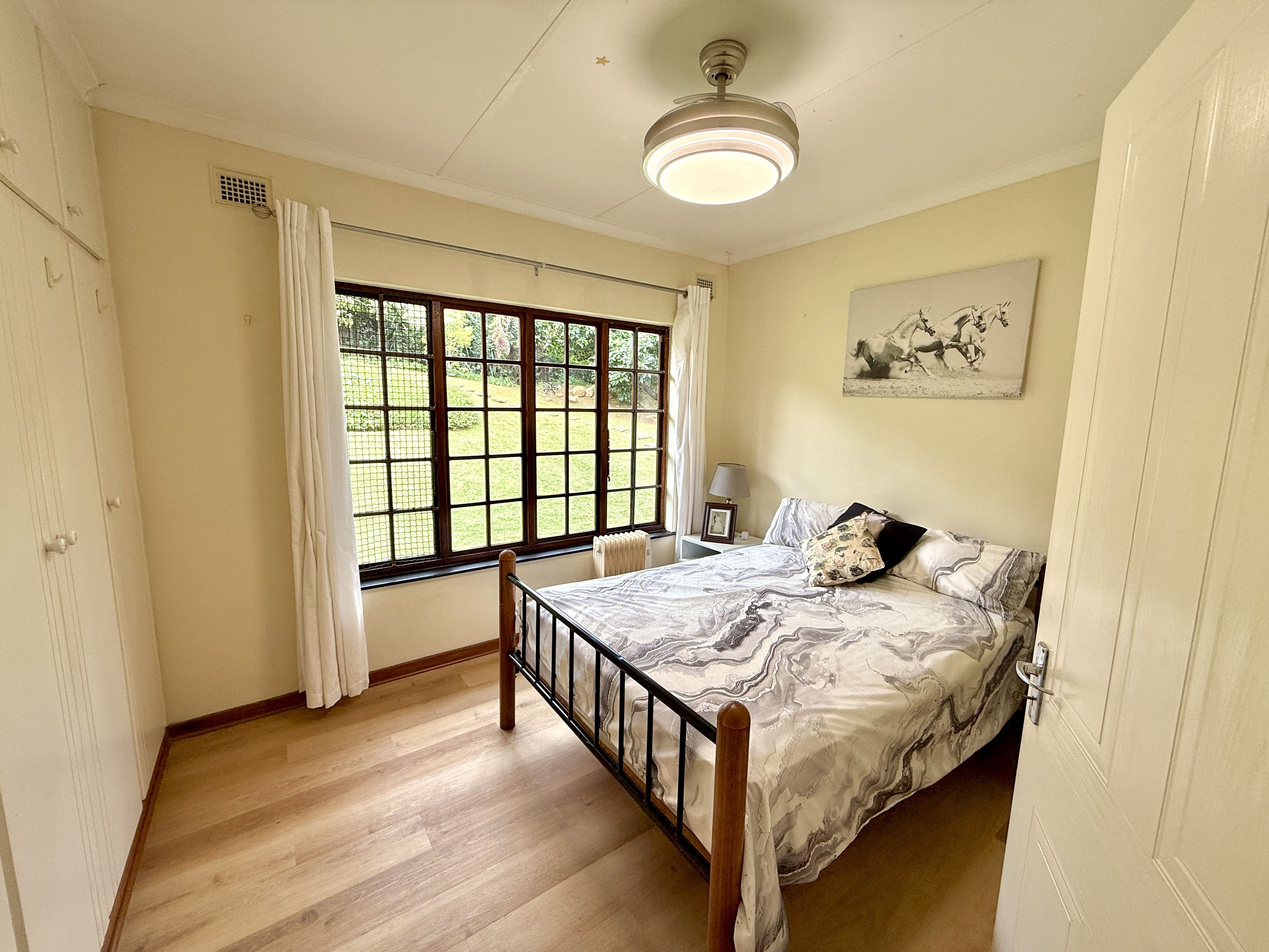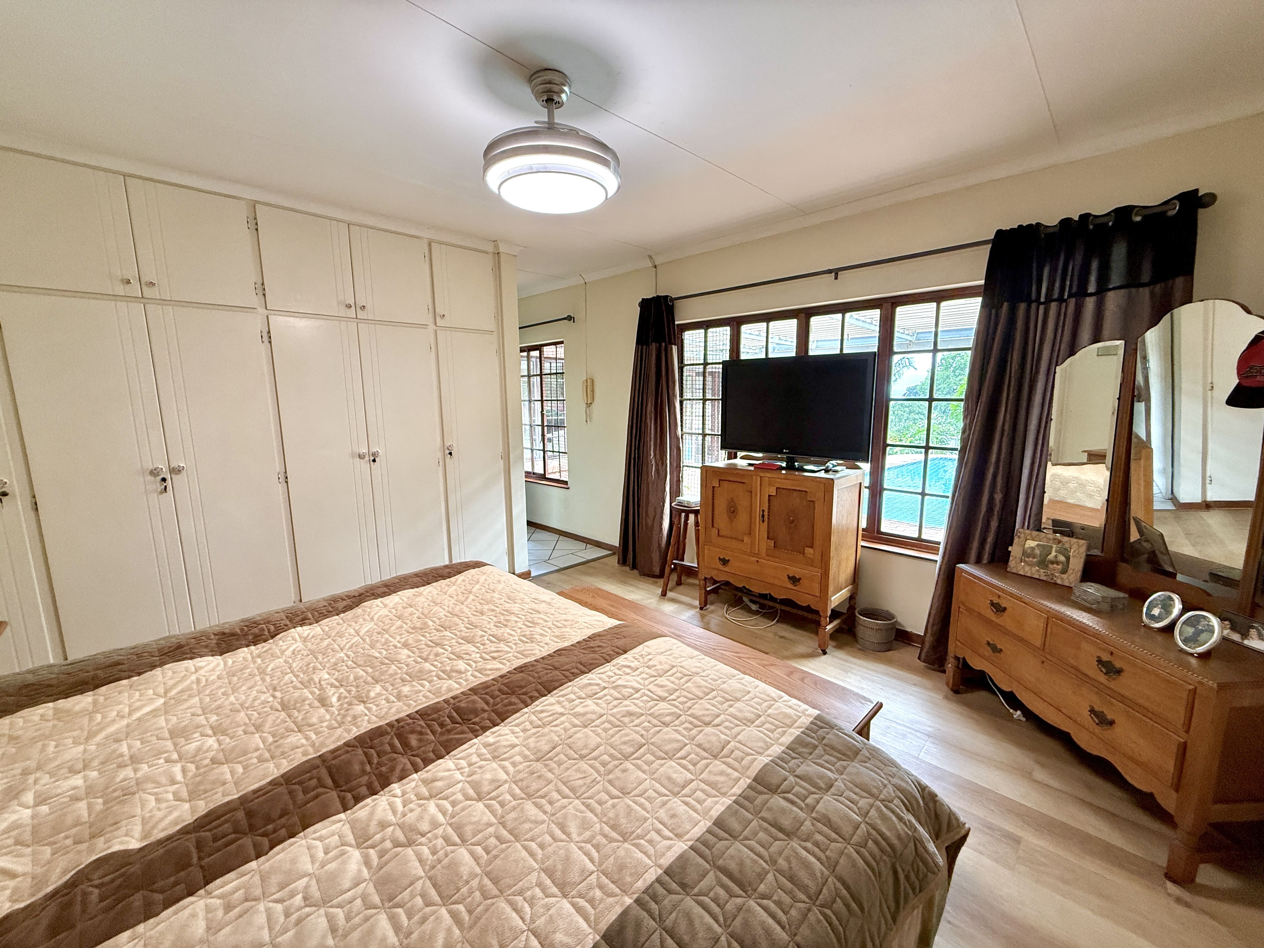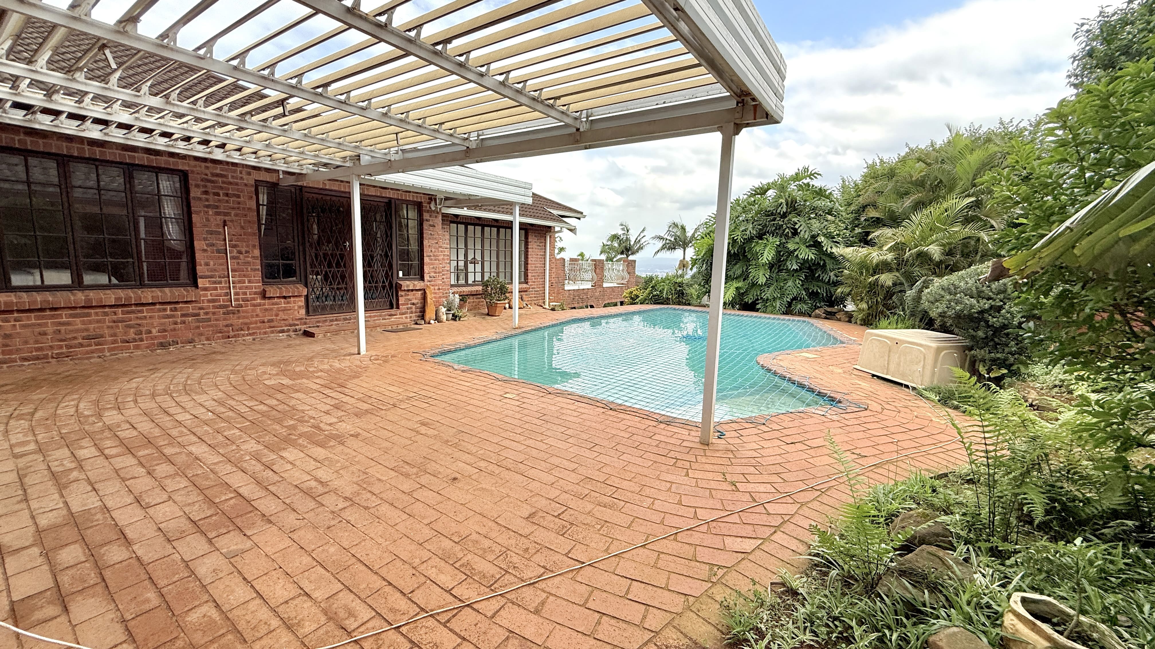 Set high atop Muswell Hill in a quiet, scenic neighbourhood, this well-established face-brick family home offers space, privacy, and panoramic views over Pietermaritzburg. Positioned within a large, beautifully maintained garden, the home features a spacious balcony, a covered patio, and an outdoor braai area with an adjustable louvered Chromadek roof for perfect light control, ideal for year-round entertaining. The patio flows seamlessly out to the swimming pool, creating an inviting outdoor living environment.