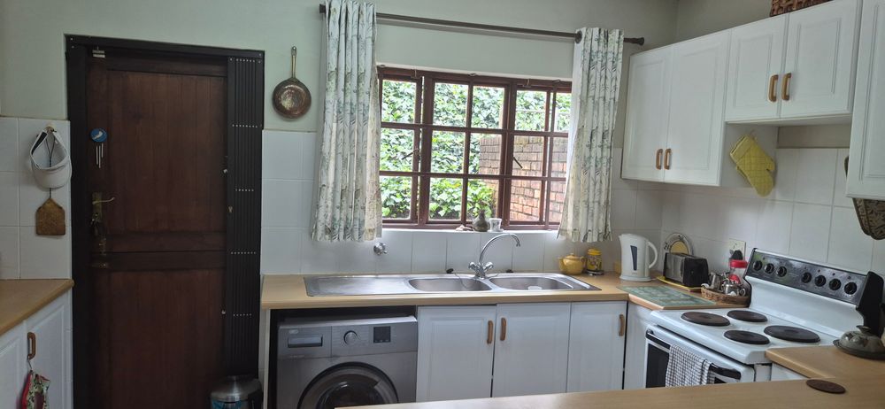 The kitchen opens out to a neat, enclosed garden — a safe and manageable outdoor space for children and small dogs, complete with a discreet area for the washing line. The complex is well maintained, attractively landscaped, and equipped with automated entrance gates for added convenience and is the entire perimeter is electric fenced for your peace of mind and security.