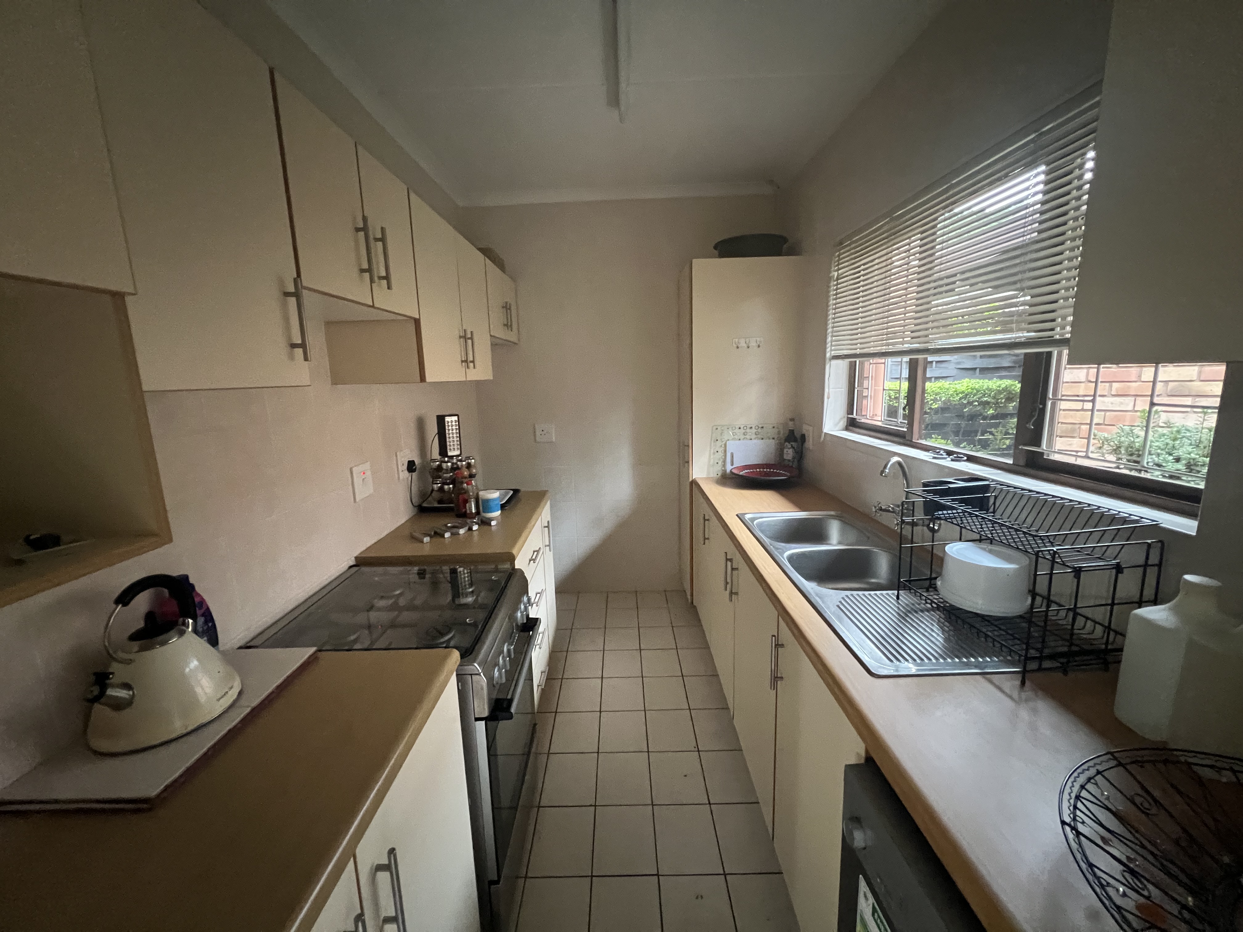 Step inside and be greeted by a beautifully designed interior featuring tiled and carpeted floors that not only enhance the aesthetic appeal but also offer easy maintenance. The airy living space is complemented by an efficient air conditioning system, ensuring a comfortable atmosphere year-round. The kitchen is a culinary delight, equipped with a modern oven and hob, perfect for whipping up delicious meals.The spacious bedrooms boast built-in cupboards, providing ample storage while maintaining a clean and uncluttered look.The well-appointed bathroom features both a shower and a bath, catering to all your relaxation needs. Natural light pours in through well-placed blinds, creating a warm and inviting ambiance.