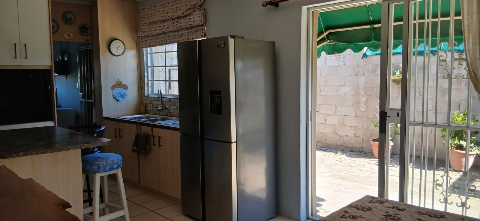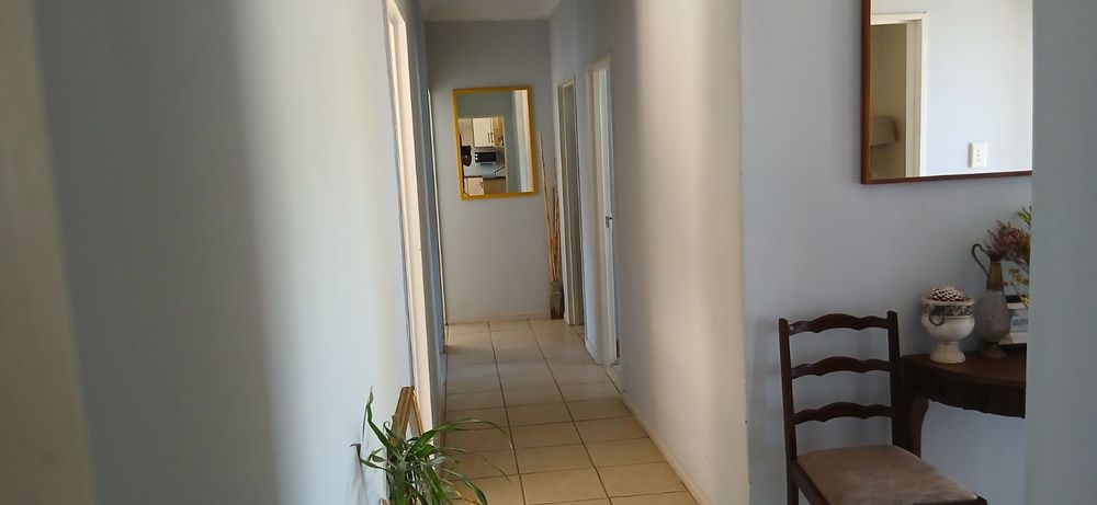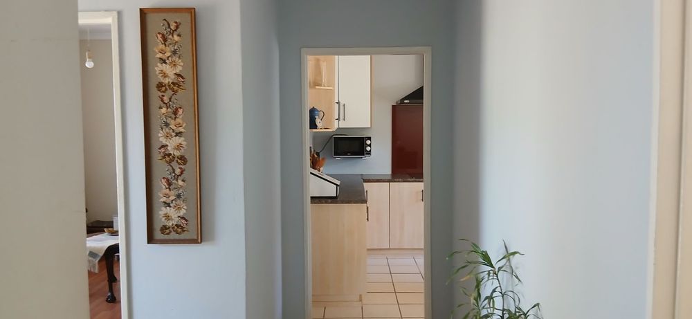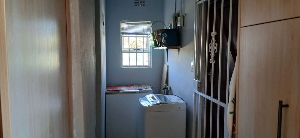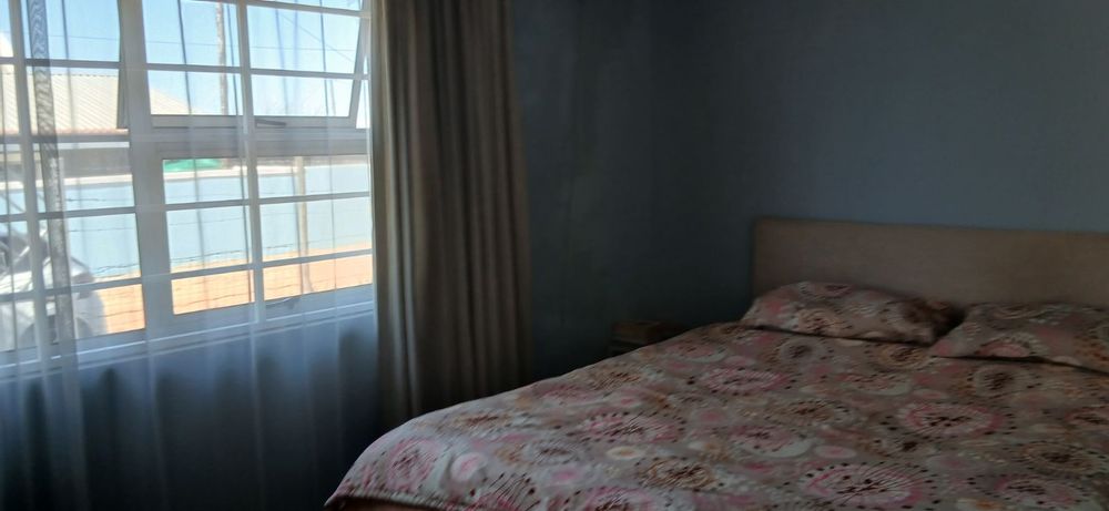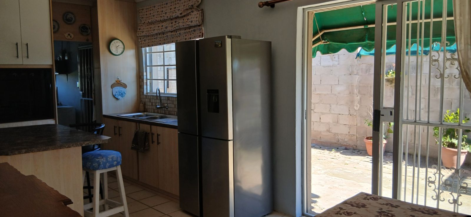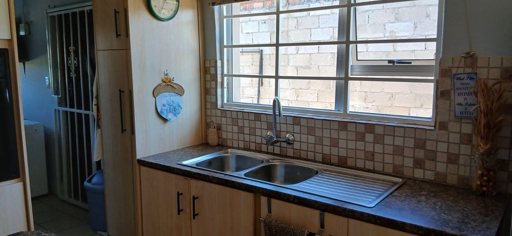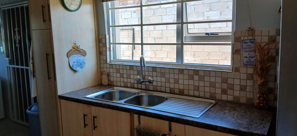 Freestanding 3 bedrooms, corner plot property, with 496m2 erf size. Fully enclosed with single garage and extra parking for additional 6 to 8 vehicles. Property is fully secured with safety gates and burglar bars. Main bedroom , carpeted, with tiled en-suite, shower, basin and toilet. 1 bedroom laminated flooring and 1 bedroom carpeted. Tiled seperate toilet, plus tiled family bathroom with bath, shower and basin. Tiled fully fitted kitchen, with open plan tiled diningroom. Tv room with laminated flooring. Tiled laundry area.