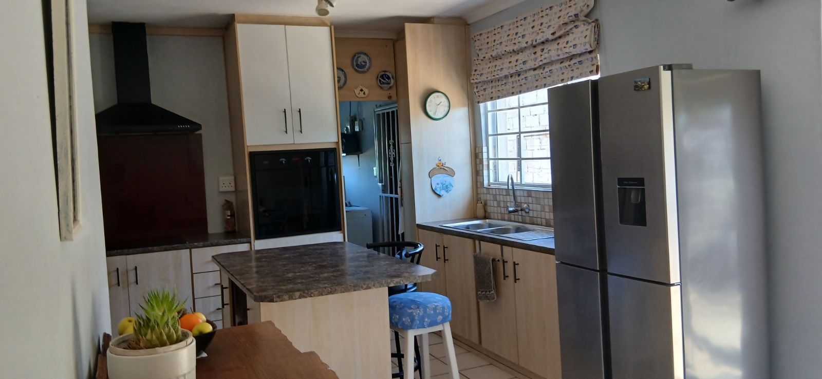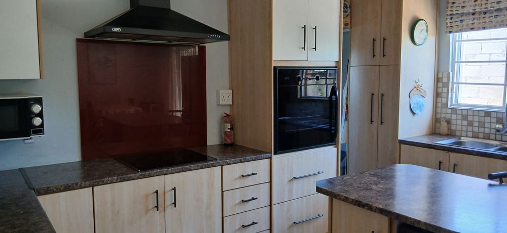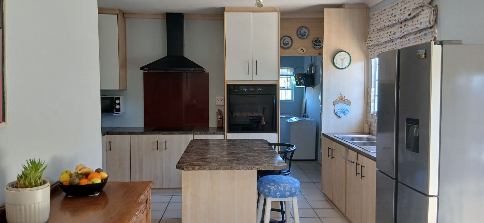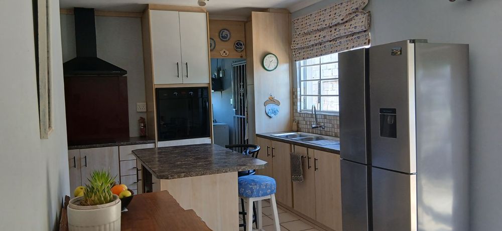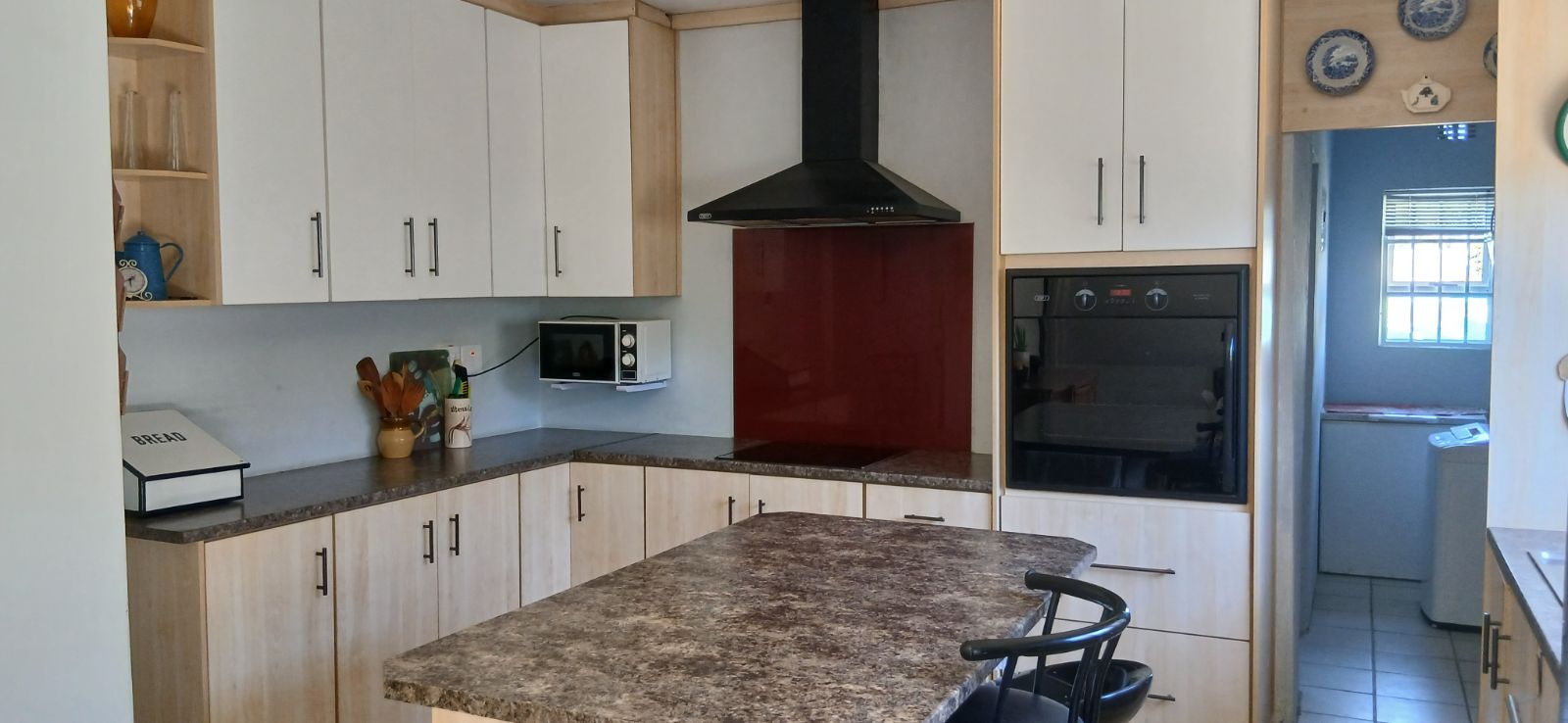 Freestanding 3 bedrooms, corner plot property, with 496m2 erf size. Fully enclosed with single garage and extra parking for additional 6 to 8 vehicles. Property is fully secured with safety gates and burglar bars. Main bedroom , carpeted, with tiled en-suite, shower, basin and toilet. 1 bedroom laminated flooring and 1 bedroom carpeted. Tiled seperate toilet, plus tiled family bathroom with bath, shower and basin. Tiled fully fitted kitchen, with open plan tiled diningroom. Tv room with laminated flooring. Tiled laundry area.