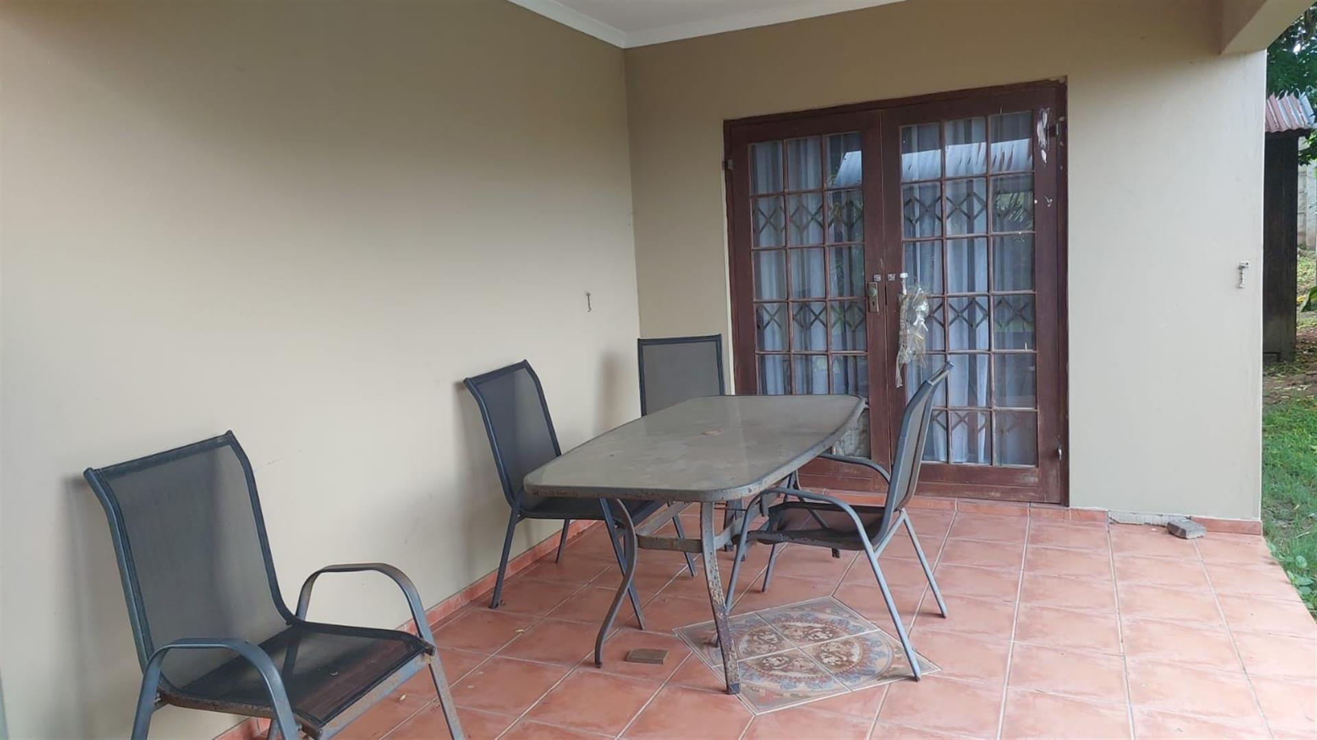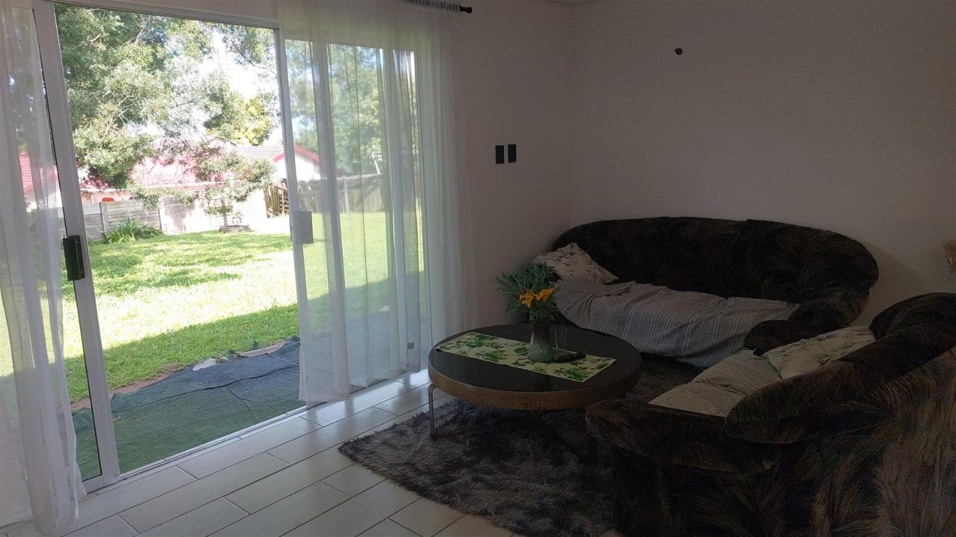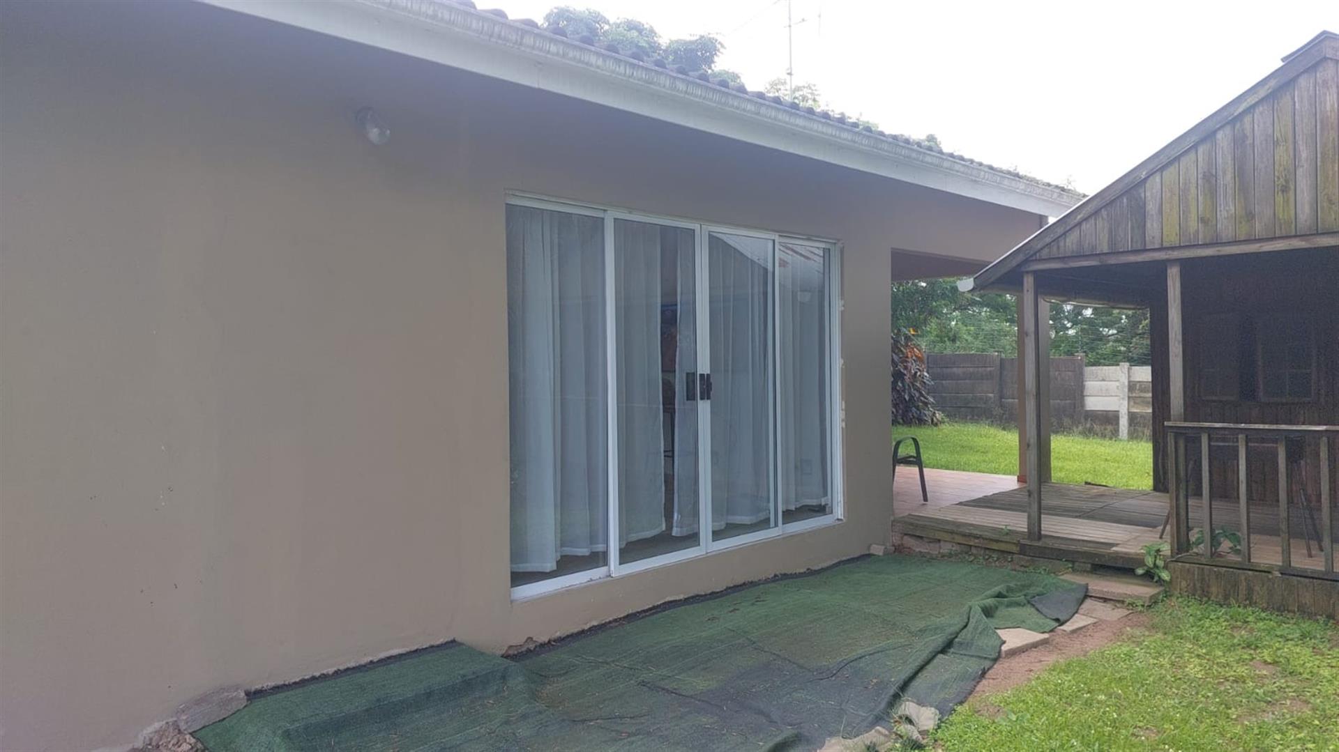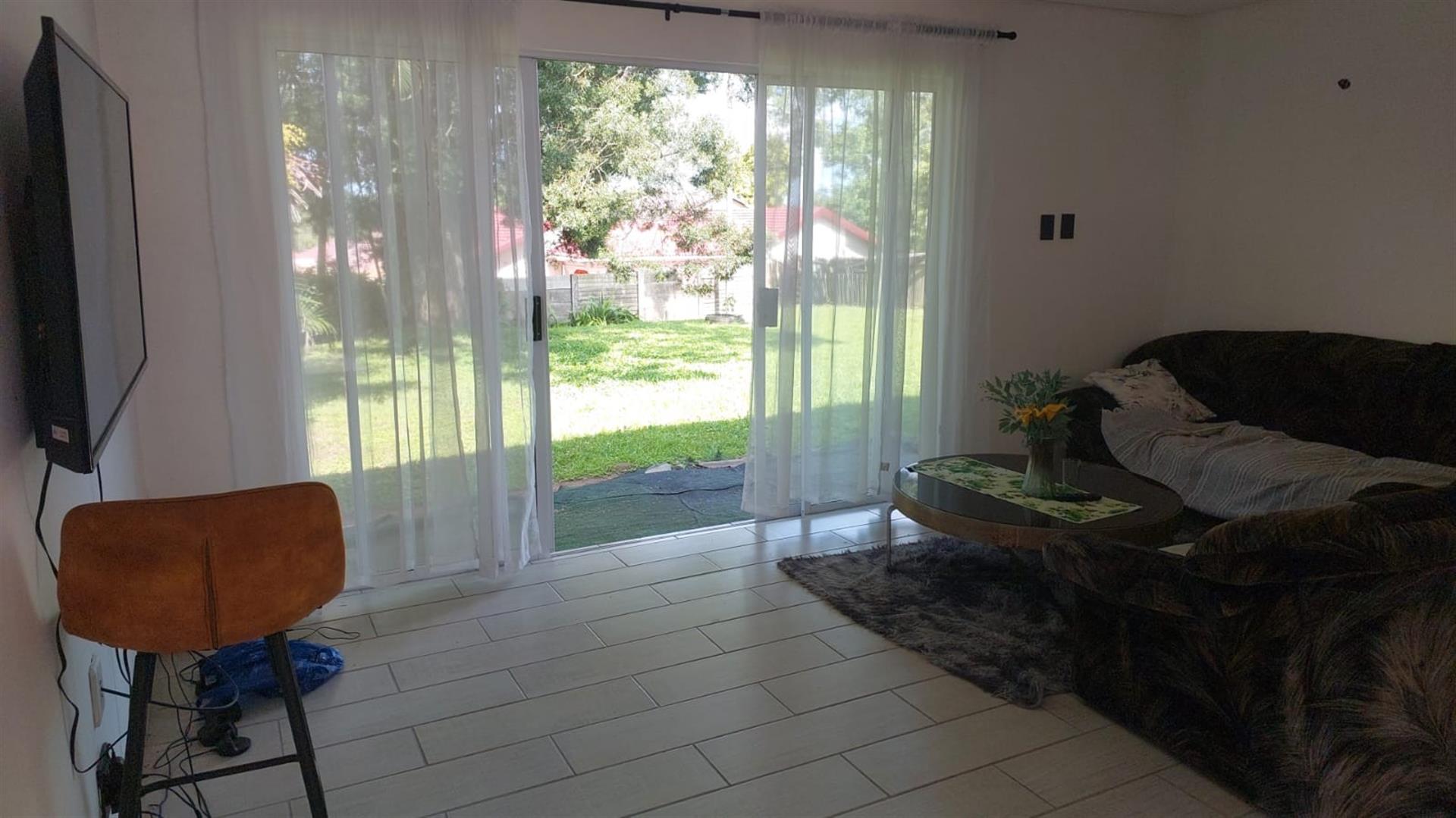 The home features three bedrooms with built-in cupboards, with one bedroom opening via a door to the outdoors, lounge also has a separate sliding door allowing easy access to the garden. A comfortable lounge area leads out to a lovely private patio at the back of the property, perfect for relaxing or entertaining.