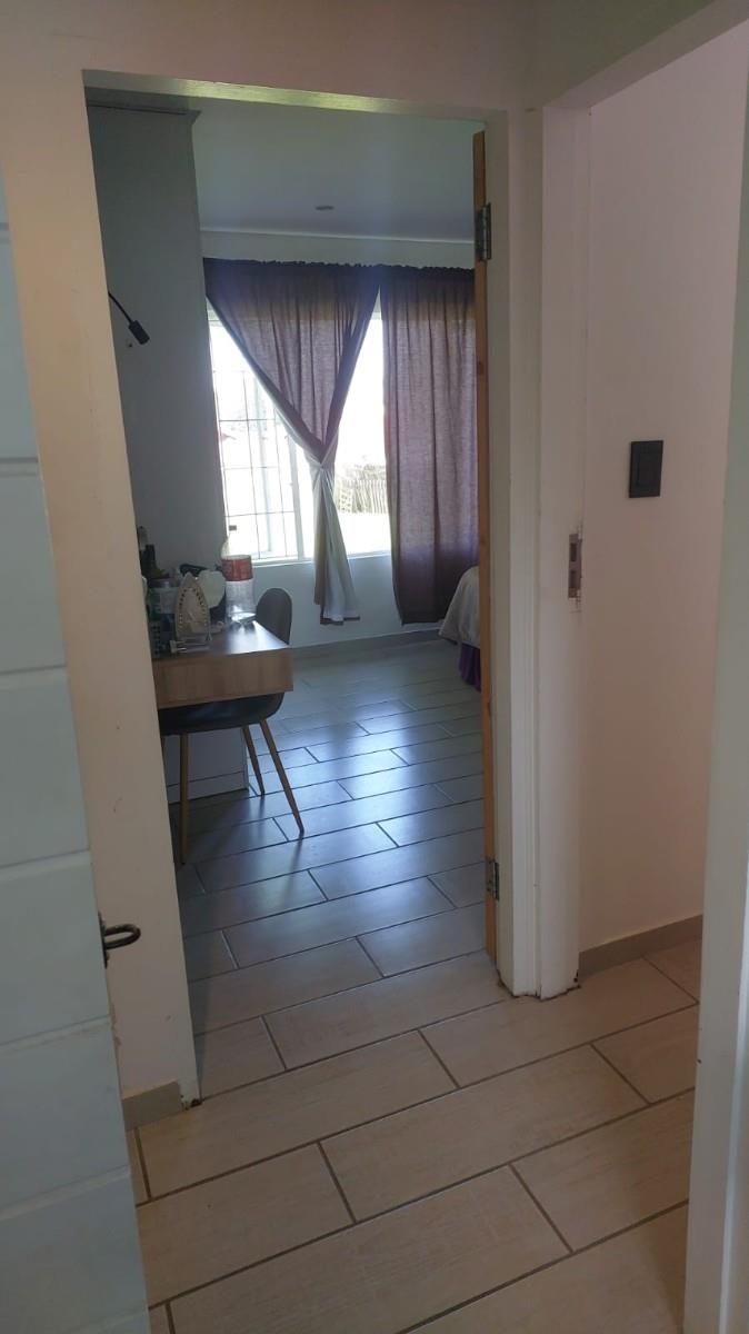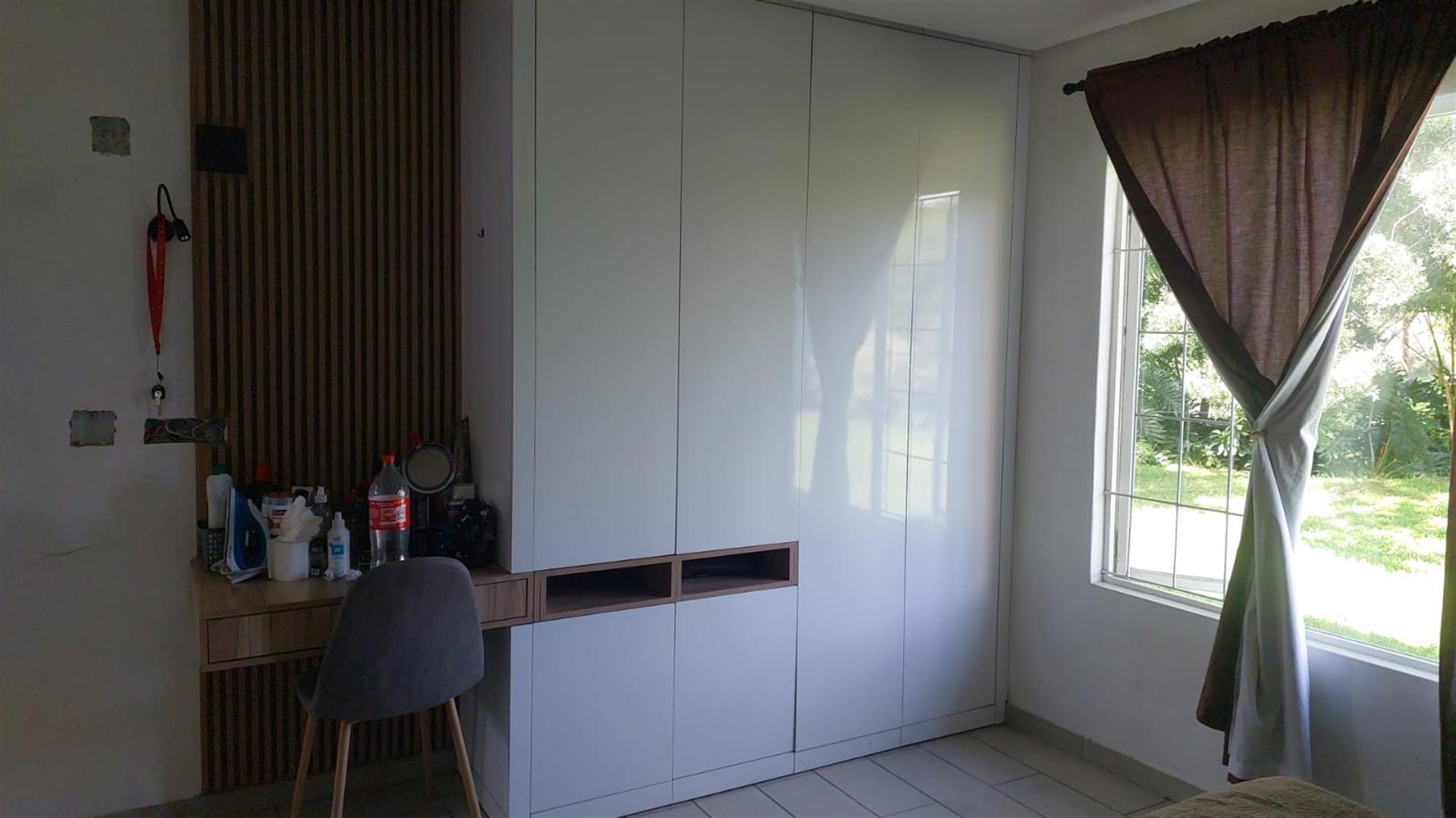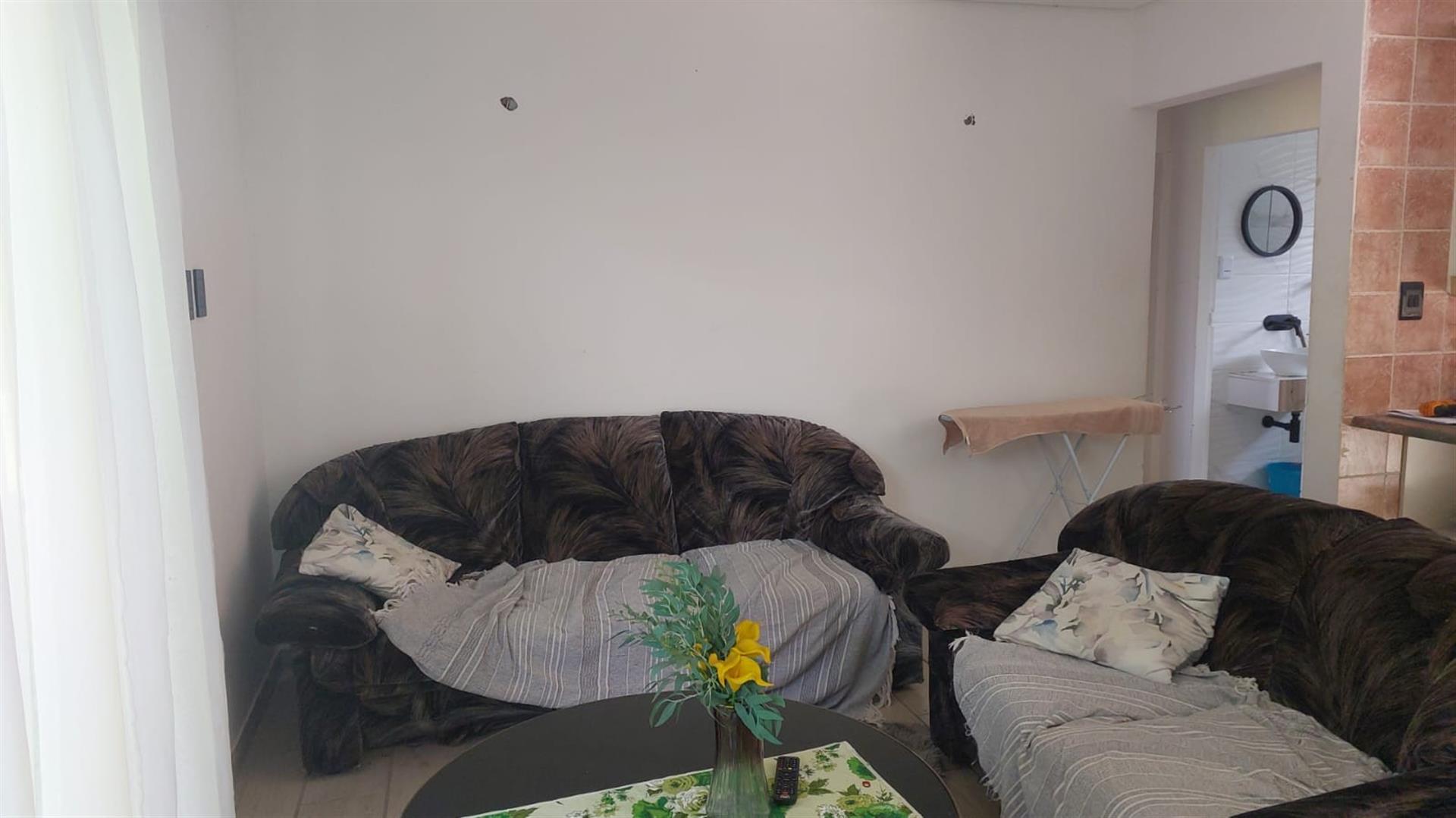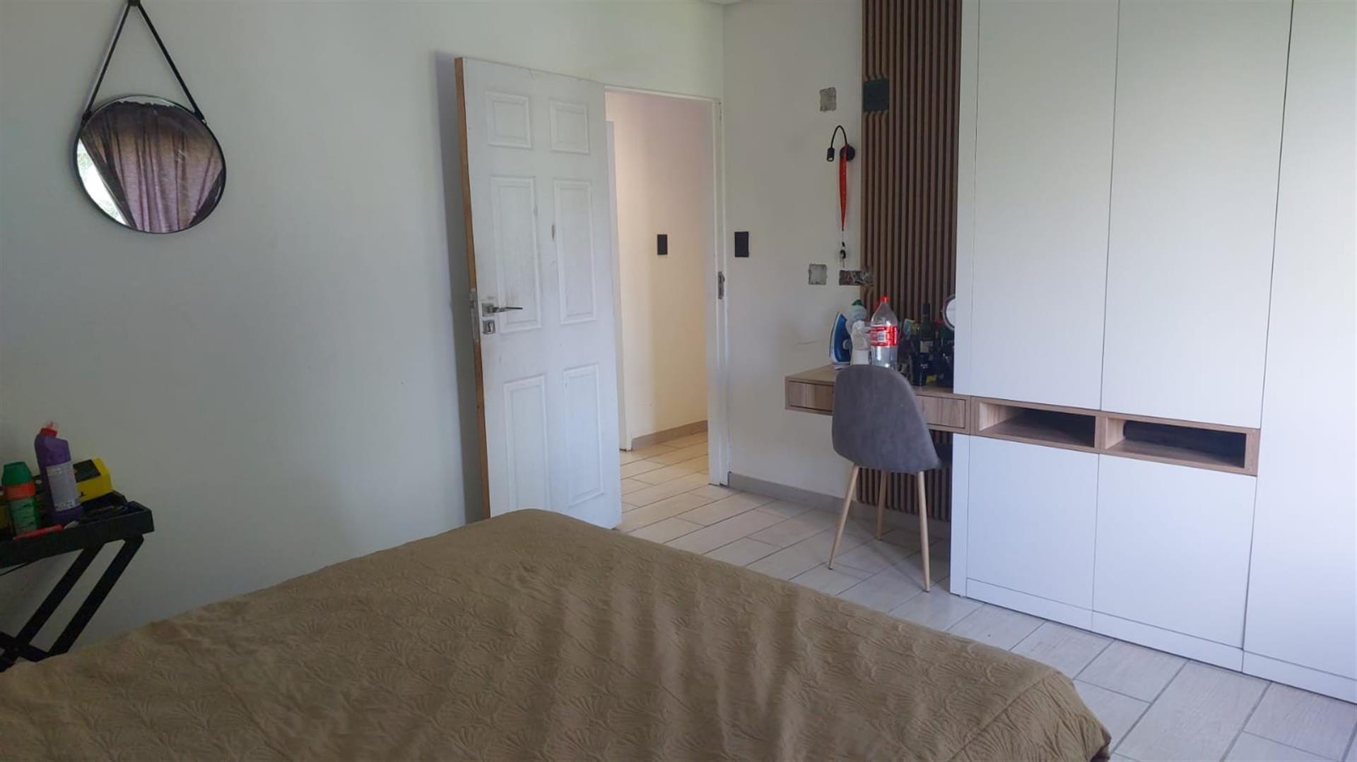 The home features three bedrooms with built-in cupboards, with one bedroom opening via a door to the outdoors, lounge also has a separate sliding door allowing easy access to the garden. A comfortable lounge area leads out to a lovely private patio at the back of the property, perfect for relaxing or entertaining.