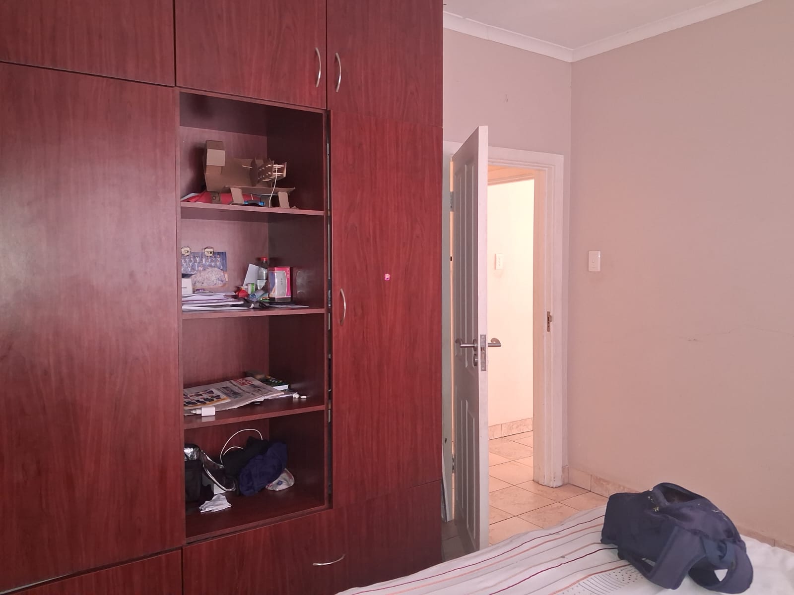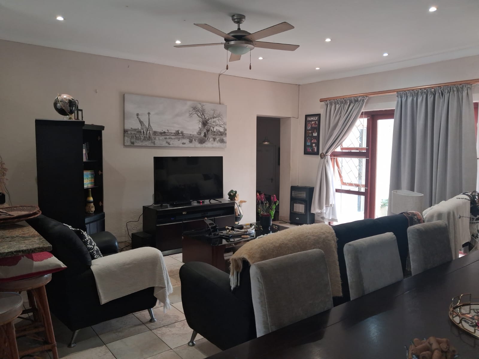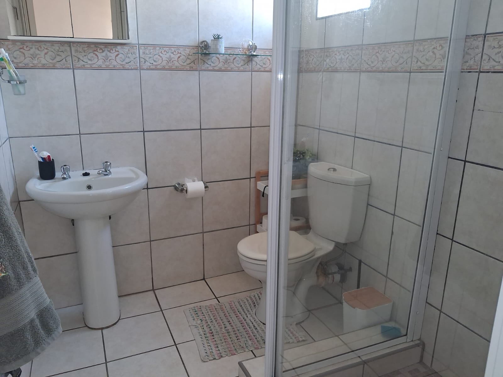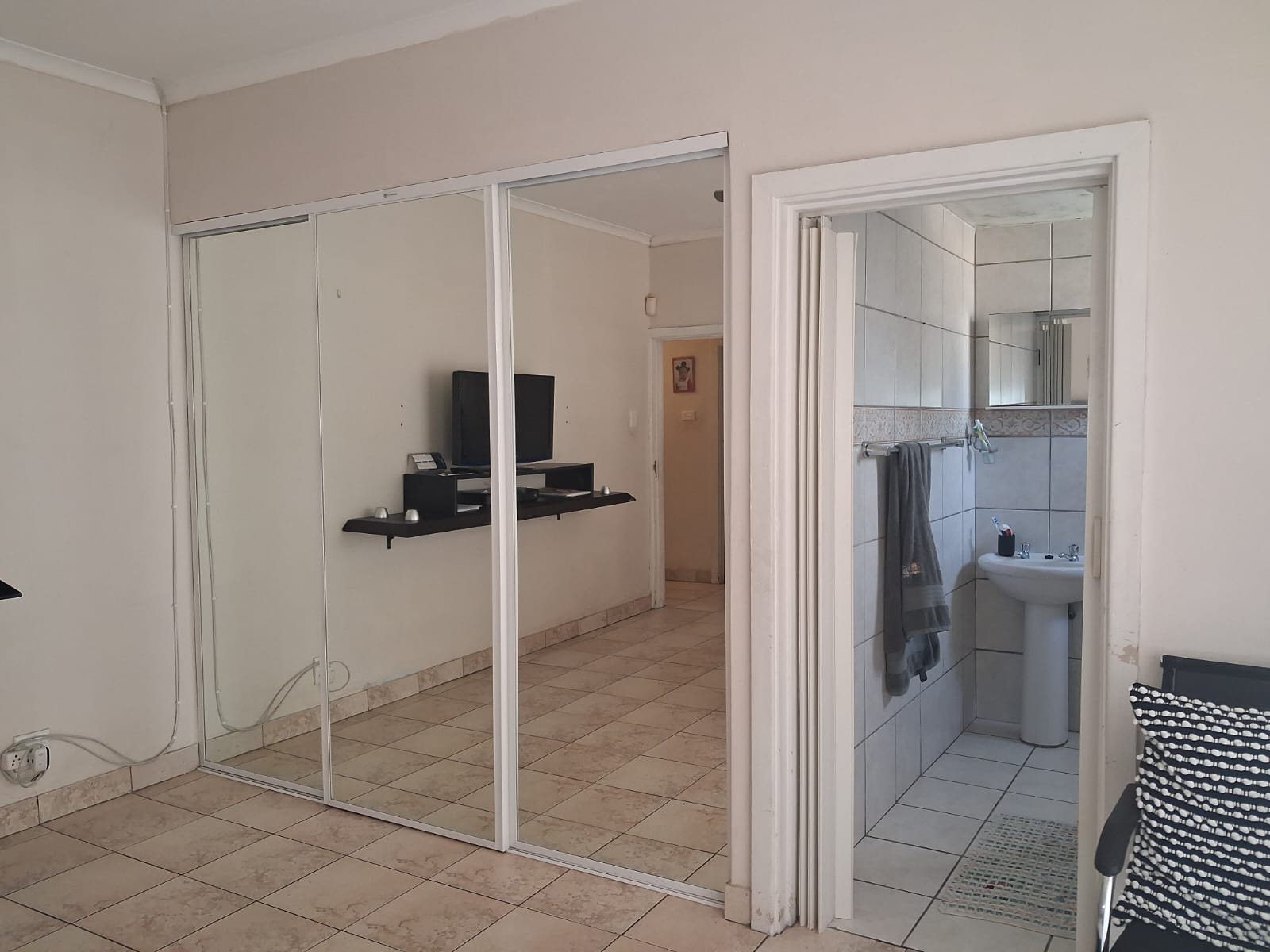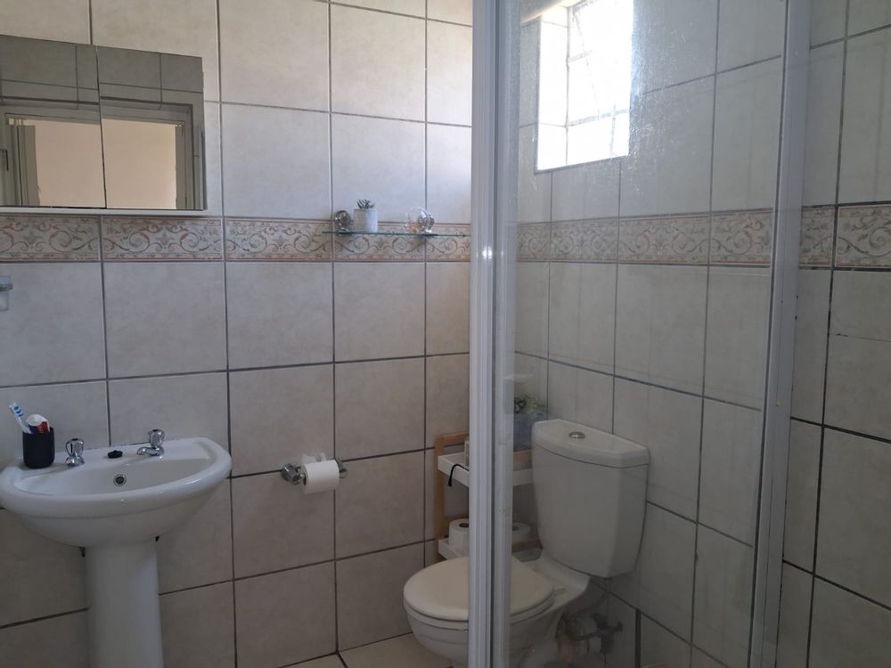 Accommodation includes three well-appointed bedrooms, all with built-in cupboards. The main bedroom boasts mirrored sliding-door cupboards and a private en-suite bathroom, while the home also offers a main bathroom with bath, shower, and basin, plus a separate toilet for added convenience.