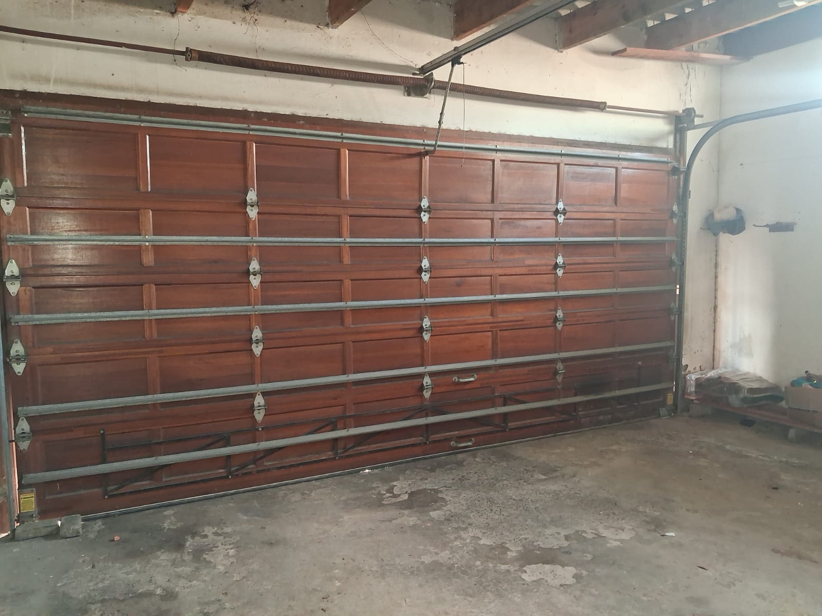 Double garage behind a roll-up door