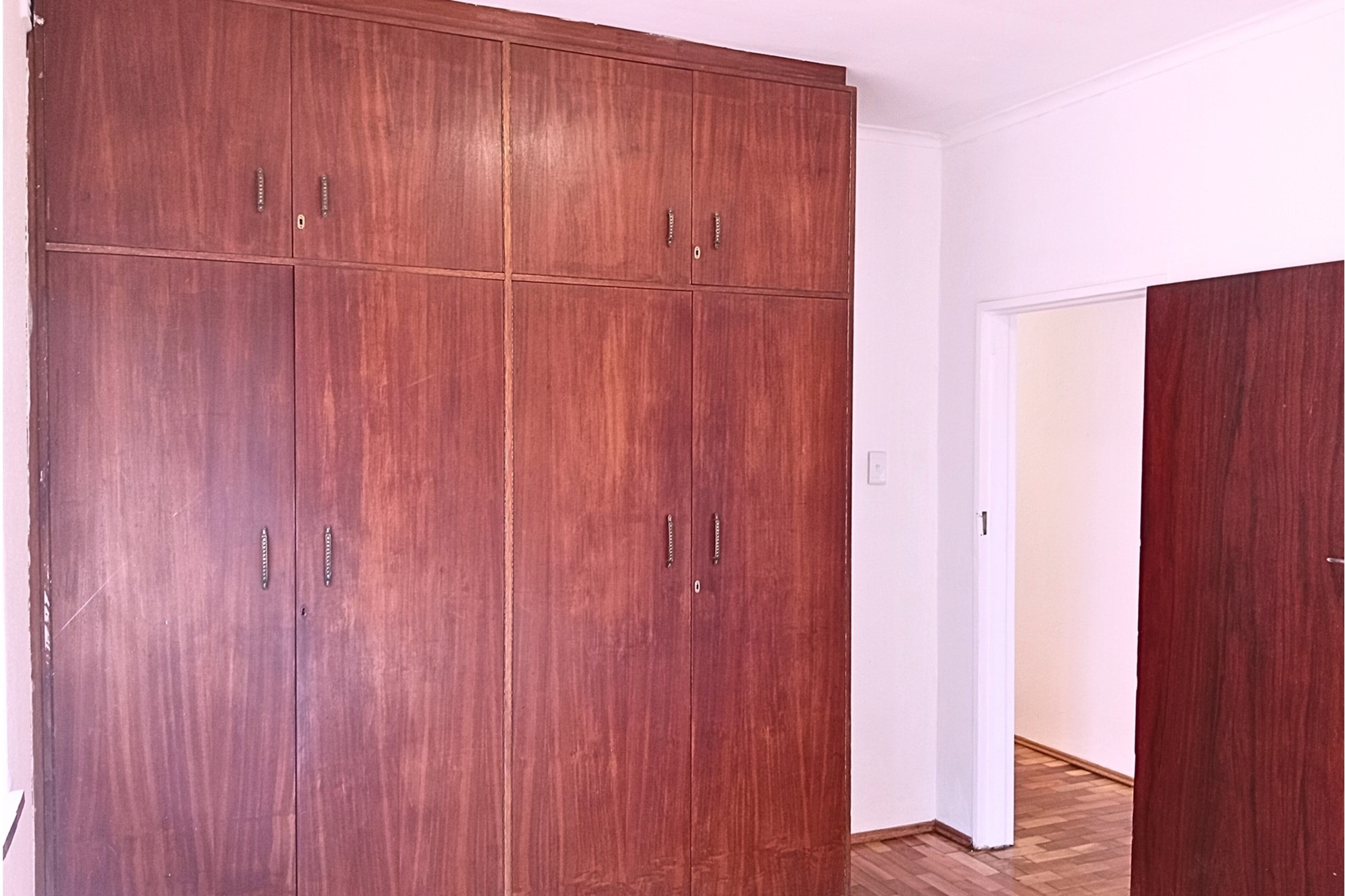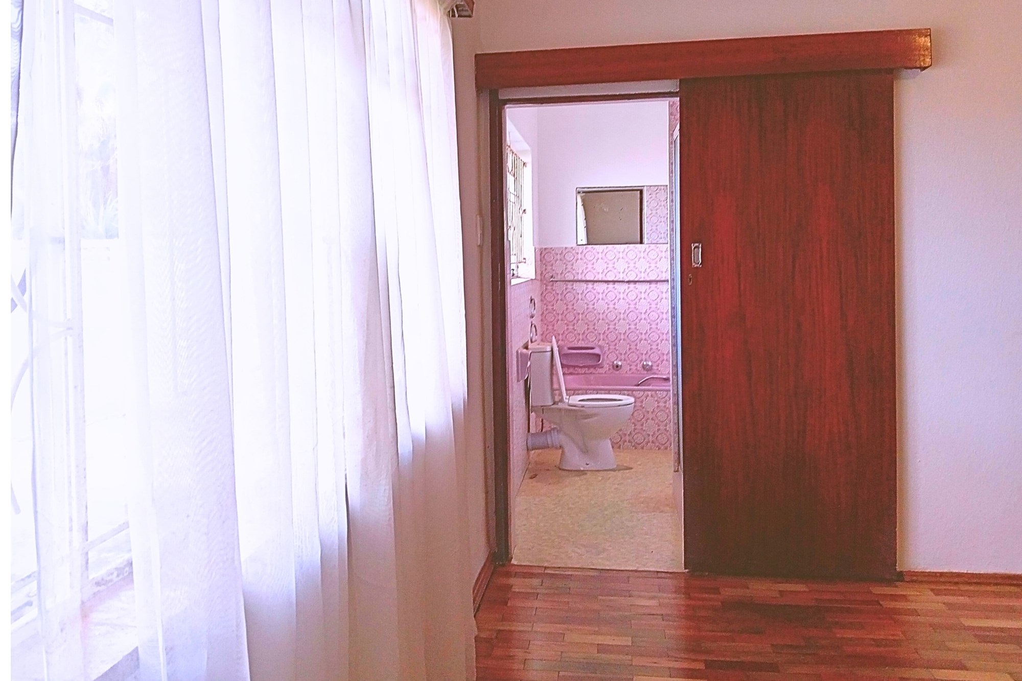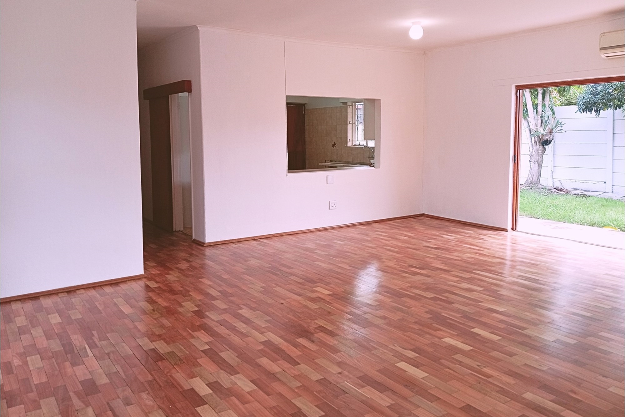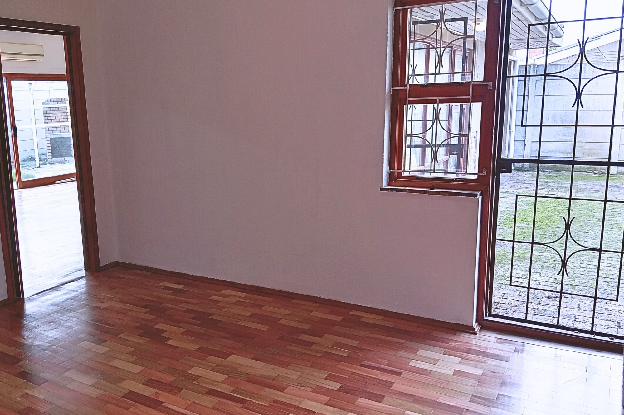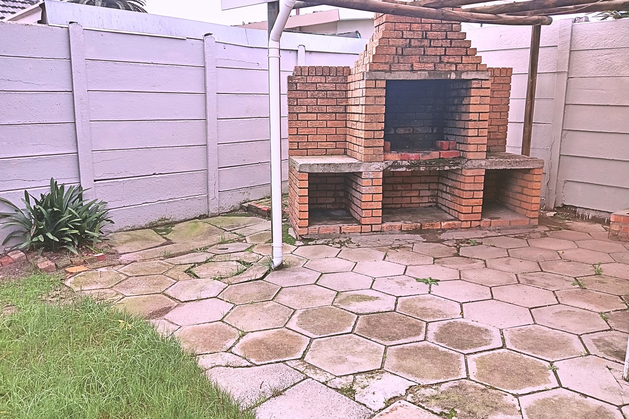 Two front doors lead to the home, each opening into a different living room. The main living room is extensively spaced, providing multiple options. Wooden-framed sliding door leads to the back garden with recently painted high walls. Private and enclosed with covered large standalone braai and entertainment area.