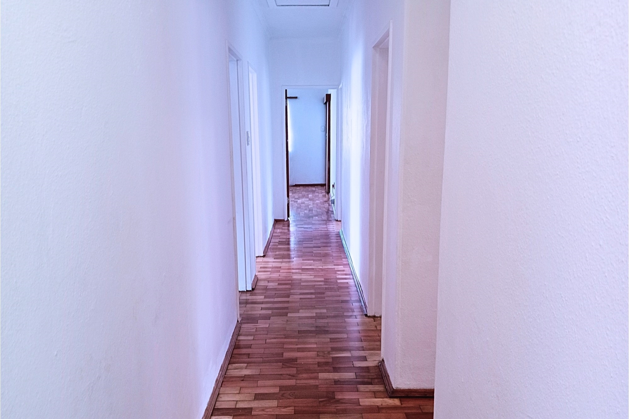 Opposite the kitchen, the second lounge with a separate front door is found. From here, a long passage leads past the first full bathroom with a separate toilet. Four bedrooms, three sharing a full bathroom and a main bedroom en-suite, are located.