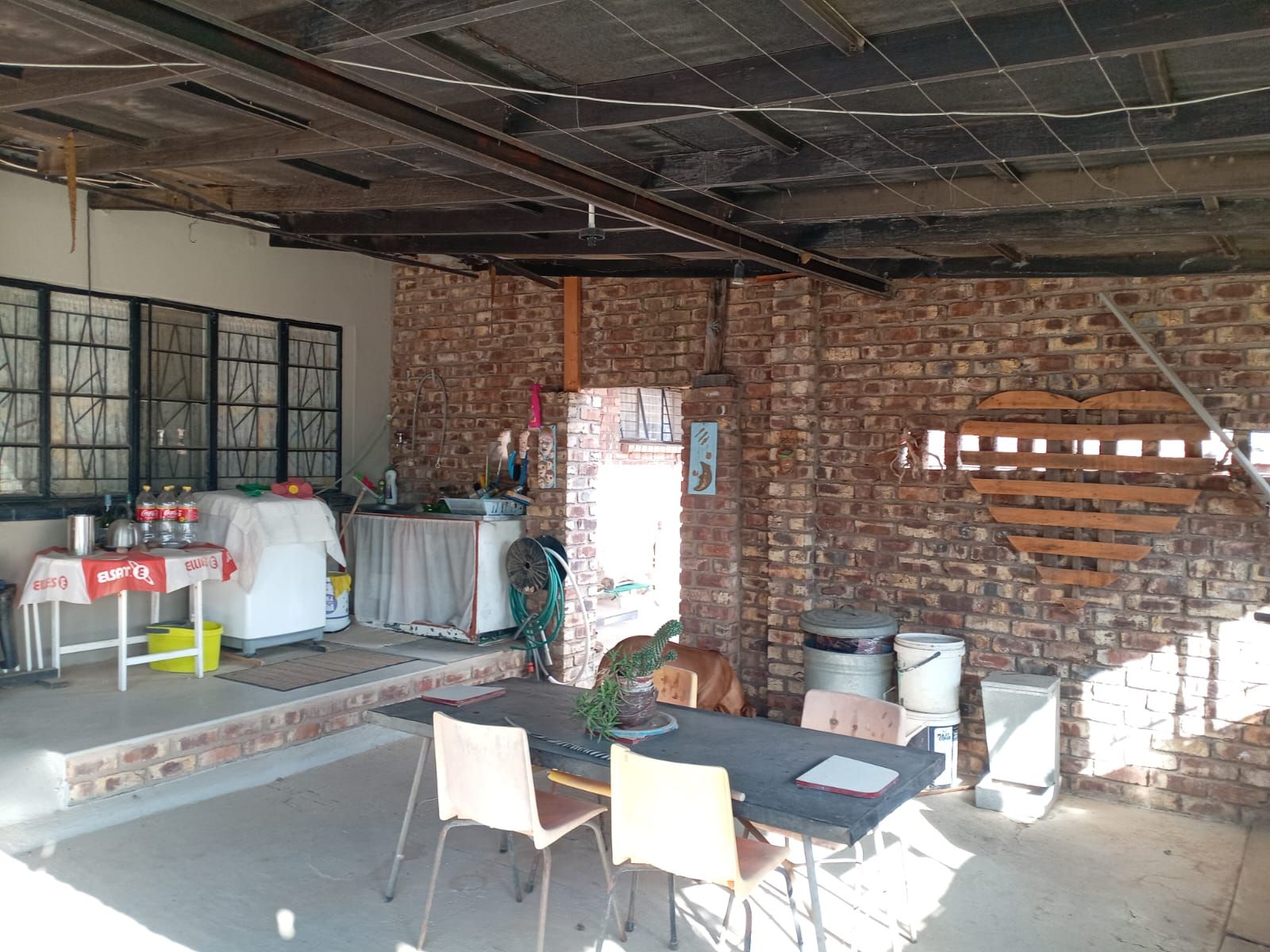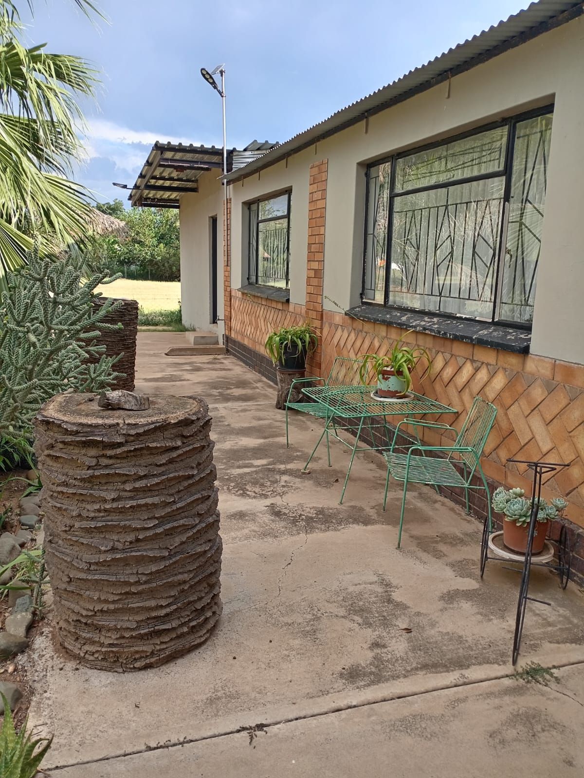 The property has garage space for 3 cars, solar panels, security, cameras, dstv system, septic tank, water pump cleaner (1000 litres) and a bat.
