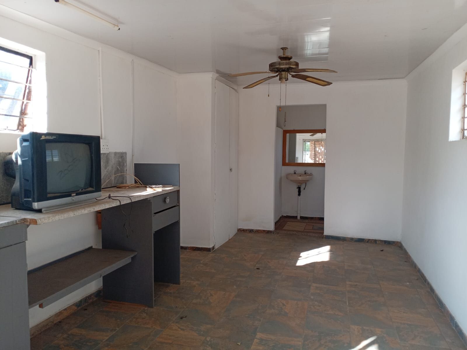 It has 3 bachelor flats, one with a bathroom set and the other one has kitchen cabinets with a bathroom set. Place has potential of 13 flats as a hall way to make business.