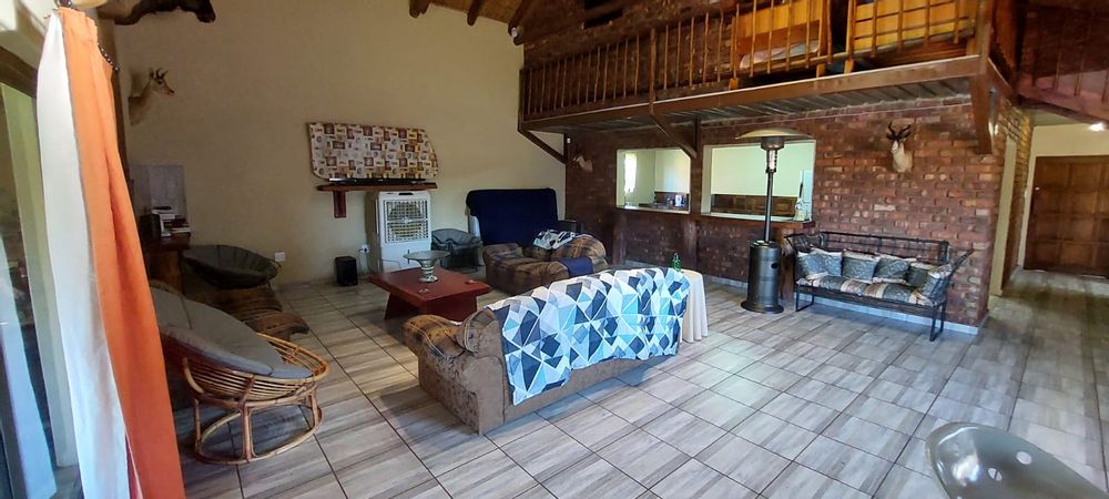 Huge living space with indoor and outdoor braai area. The outside under roof patio is very private with side panels.