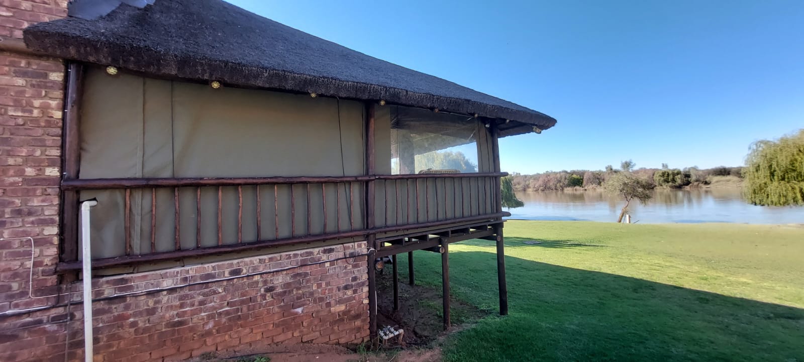 This is an ideal weekend break away house, or live here permanently. Very peaceful setting in a secure estate on the beds of the Vaal river outside Christiana on way to Warrenton. Enjoy beautiful views of the river while relaxing in the jacuzzi on the enclosed patio. This house is an entertainer's dream