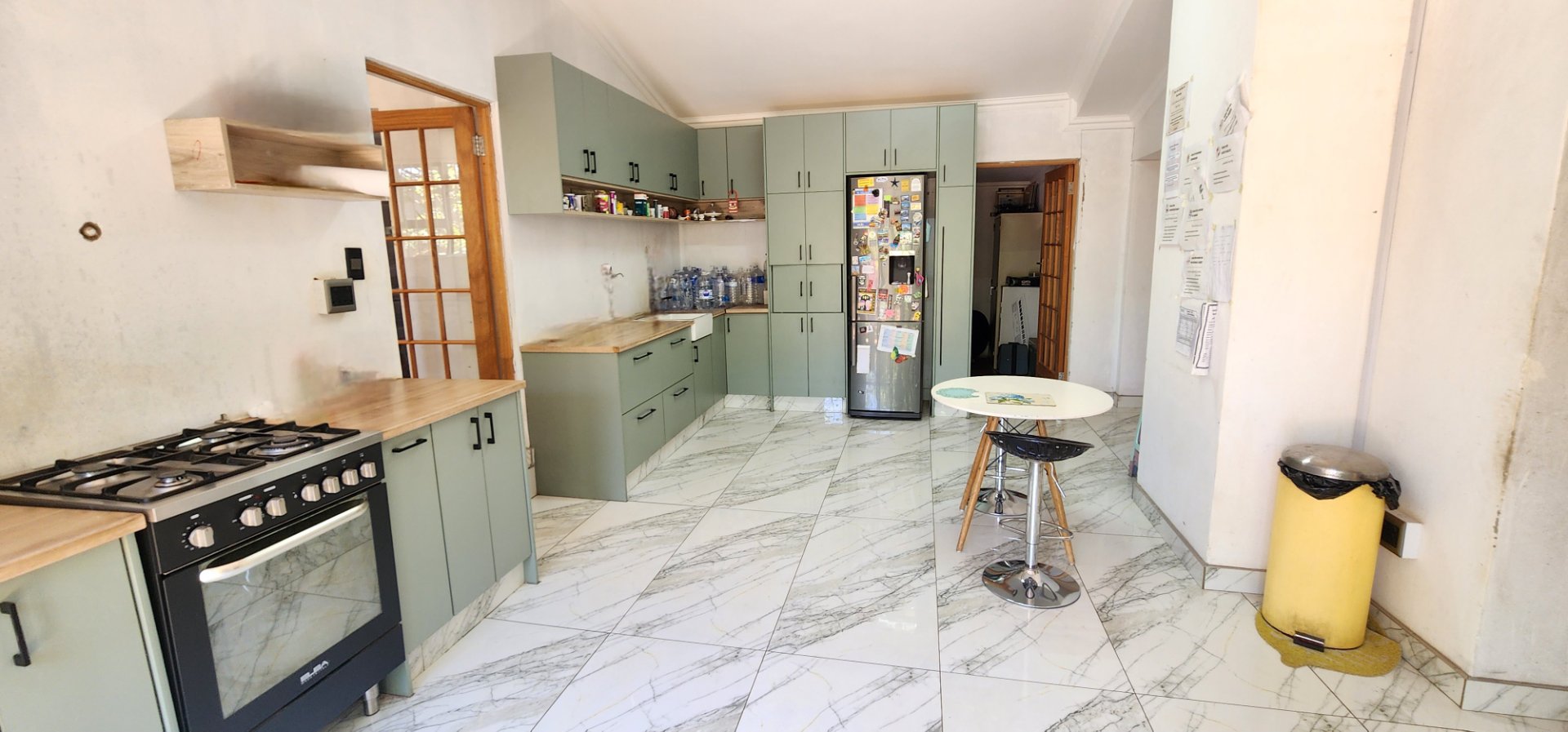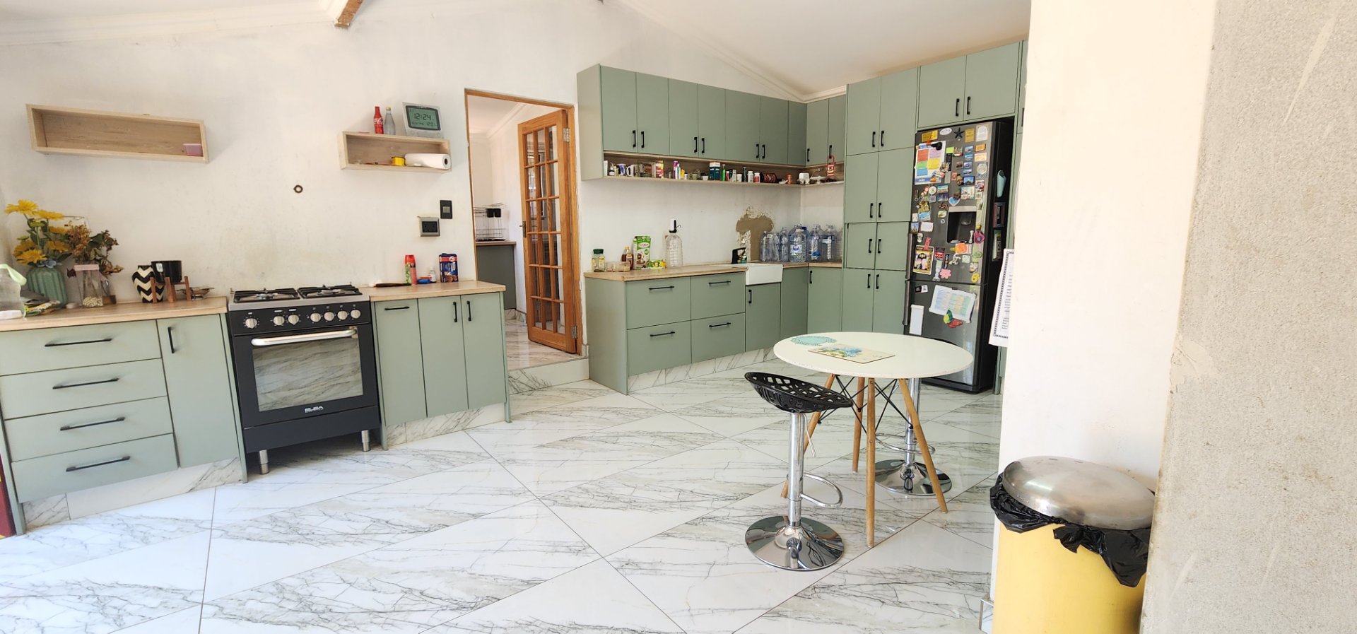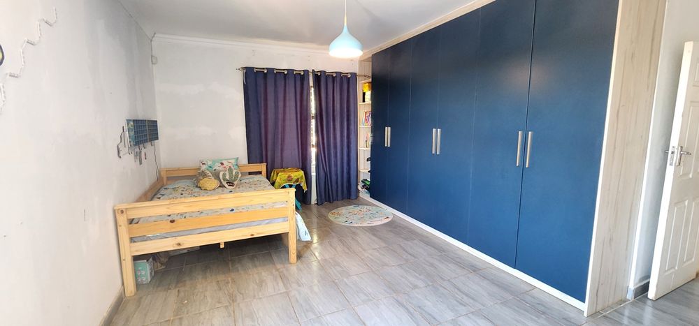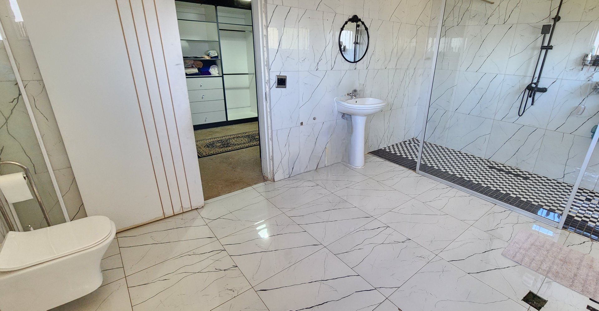 The living areas are bright and expansive, perfect for both relaxation and entertaining. The modern metallic-colored kitchen is a standout feature, boasting sleek finishes, ample cabinetry, a separate scullery, and a walk-in pantry just right for every woman's need & for all culinary storage needs.