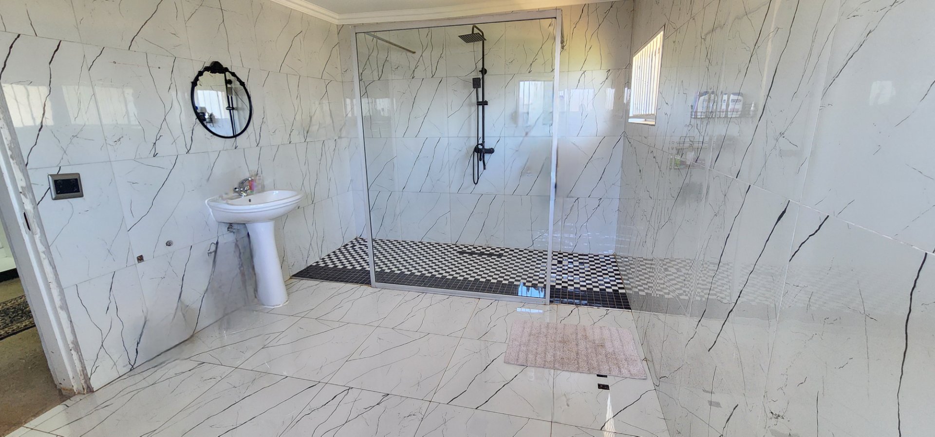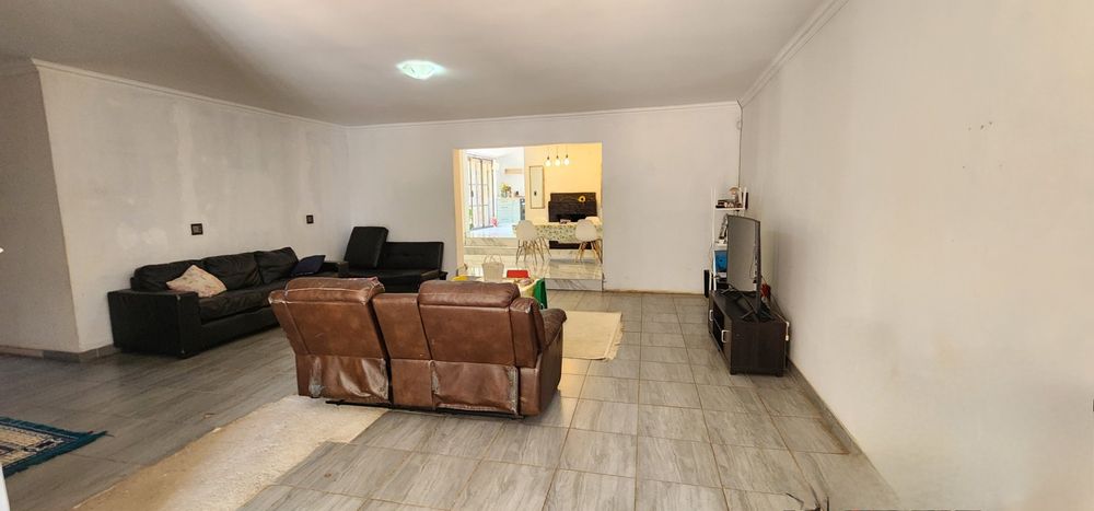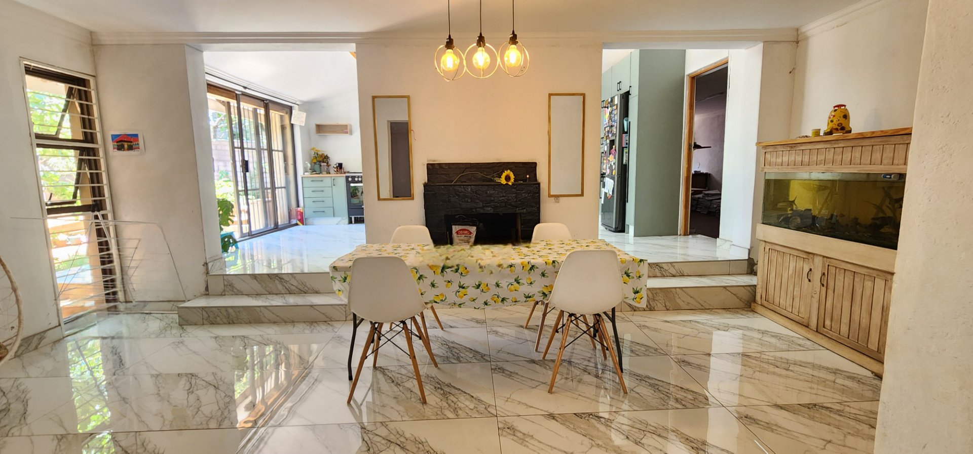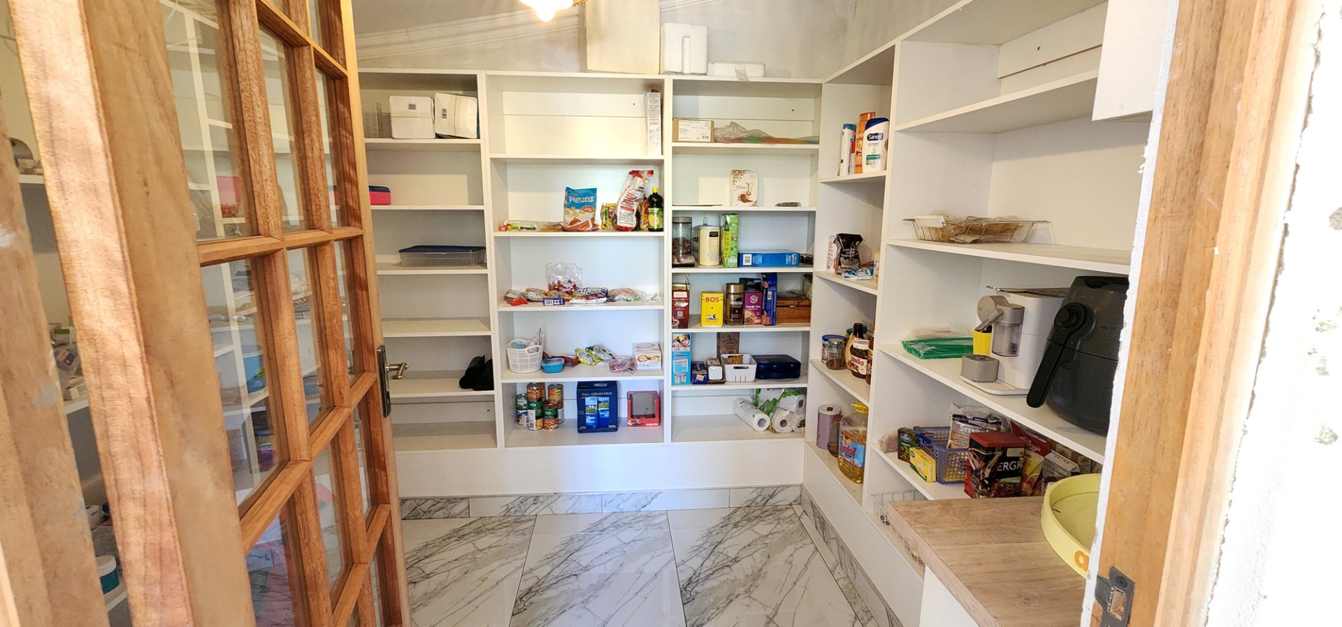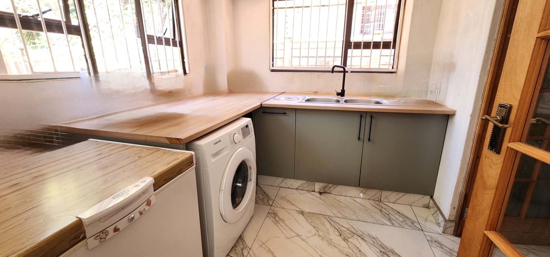 The living areas are bright and expansive, perfect for both relaxation and entertaining. The modern metallic-colored kitchen is a standout feature, boasting sleek finishes, ample cabinetry, a separate scullery, and a walk-in pantry just right for every woman's need & for all culinary storage needs.